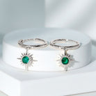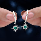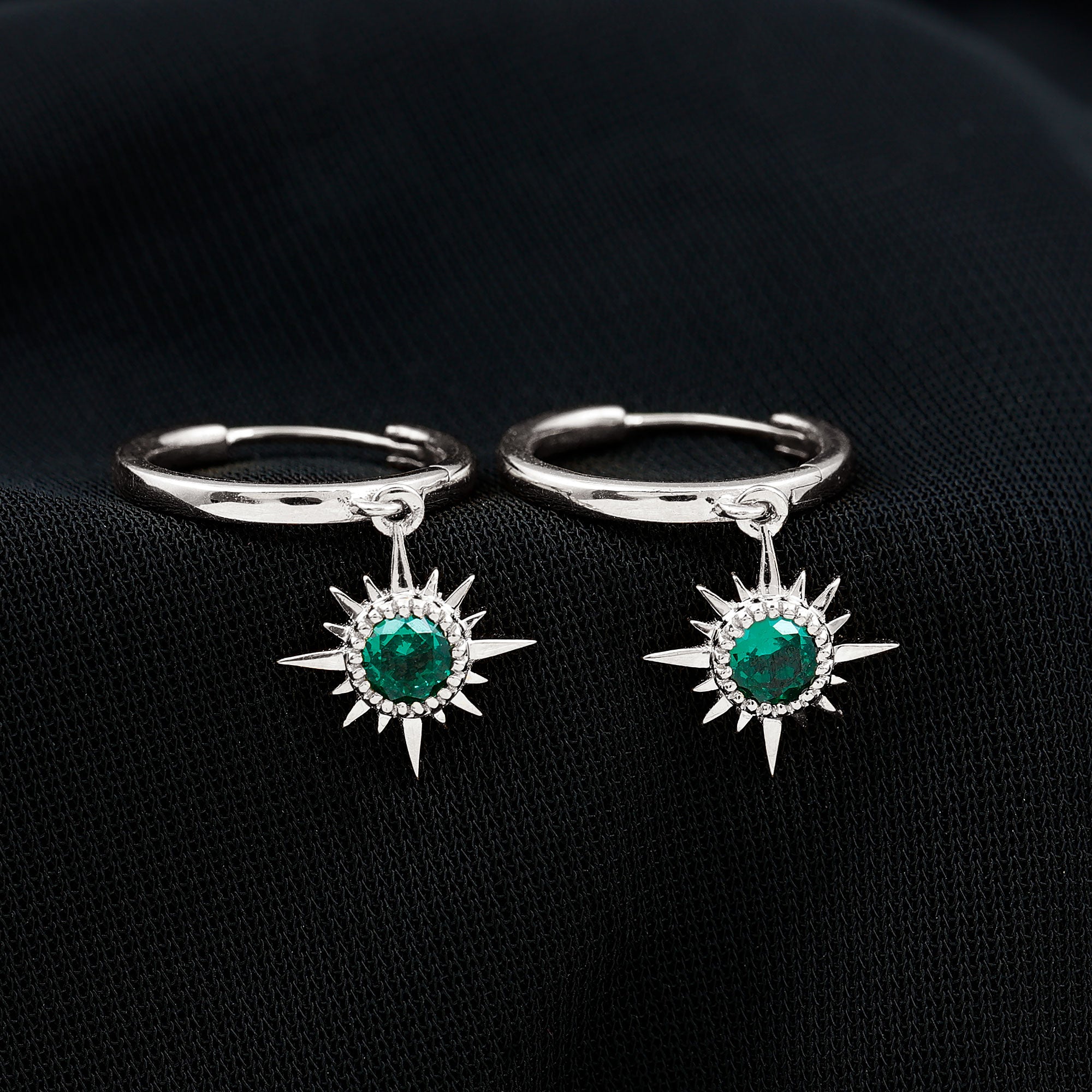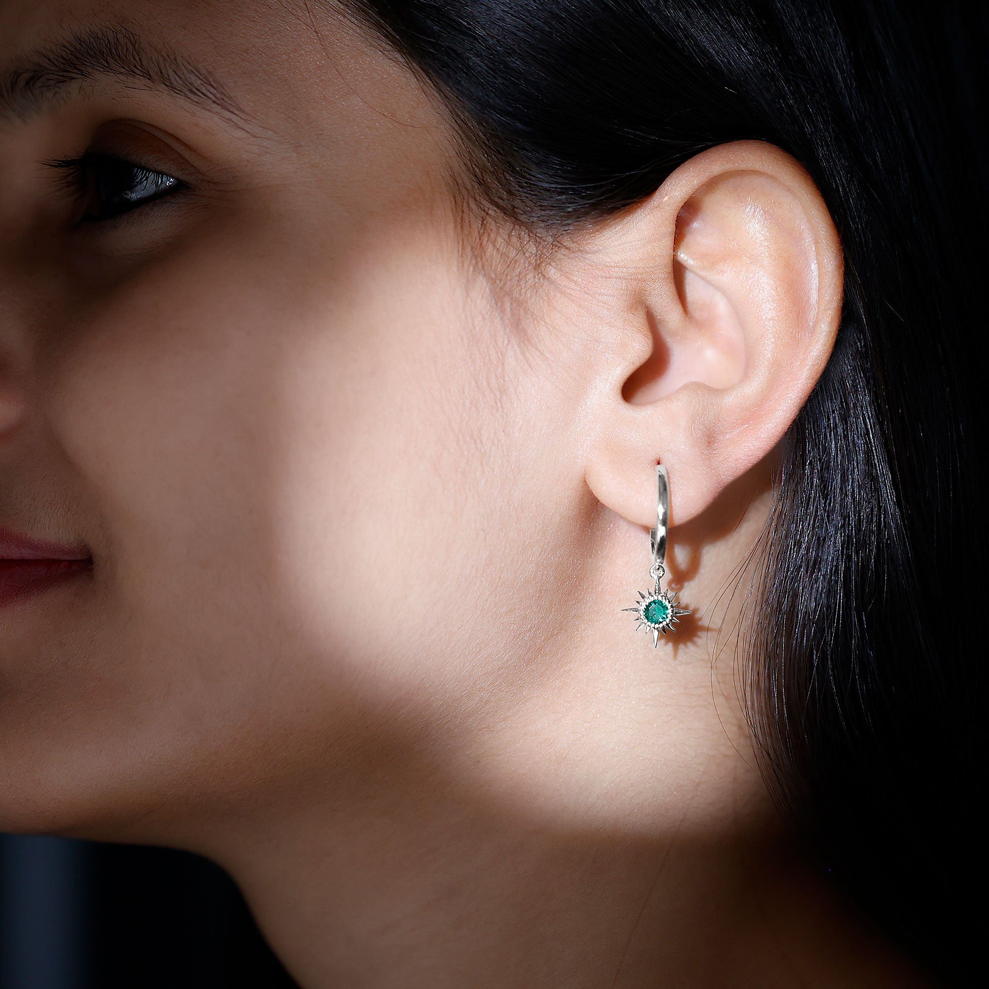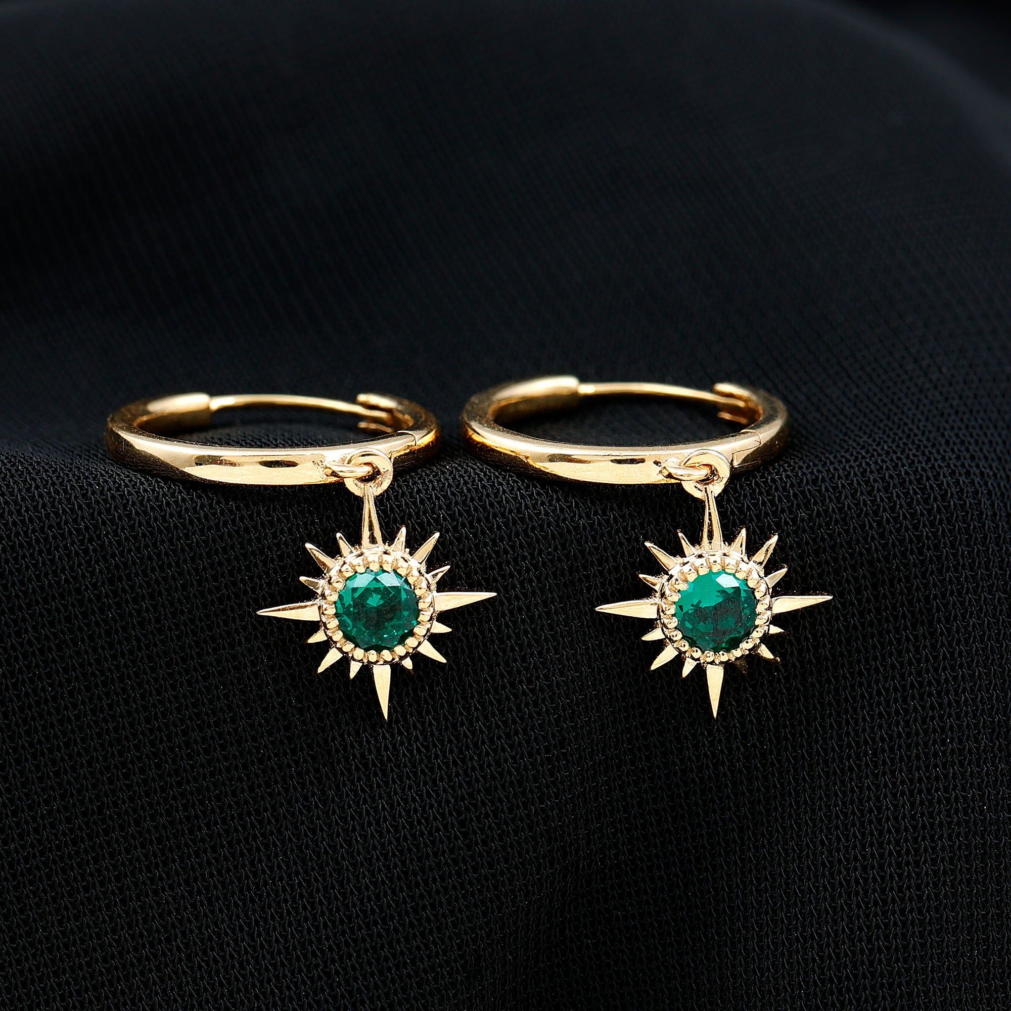 Round Cut Created Emerald Sunburst Hoop Drop Earrings