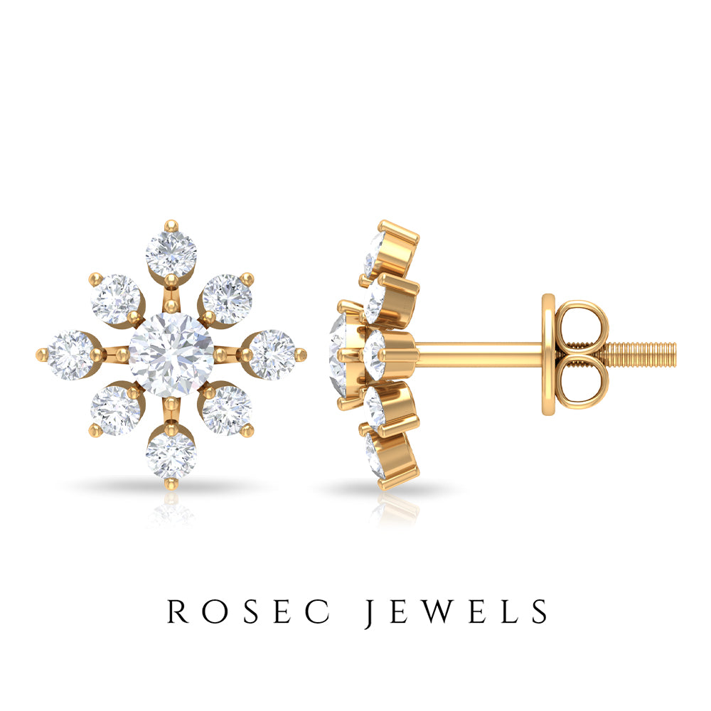 These exquisite Real Diamond Earrings showcase a beautifully intricate floral design that provides a distinctive look. With an elegant yet playful vibe, these Flower Stud Earrings are crafted from premium materials and embellished with round brilliant cut diamonds set in prongs, creating a stunning flower motif. Symbolizing grace and beauty, these Diamond Flower Earrings feature a striking and utterly captivating design, making them a must-have accessory for every woman. Drawing inspiration from nature, these Floral Studs are guaranteed to attract attention and add a touch of glamour to your outfits. For those who value understated elegance, these Everyday Stud Earrings offer a refined yet unique enhancement to your style. They create a lively and mesmerizing look, seamlessly blending contemporary style with timeless charm. The brilliance of the earrings not only adds an extra layer of shine to your appearance but also elevates your confidence to take on the day. These Floral Earrings are equipped with Screw on Backs to ensure they remain securely in place throughout the day. Your Diamond Earrings for Women will be delivered in a signature jewelry box for safe storage when not being worn, along with a certificate of authenticity.