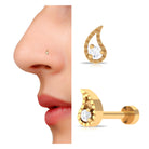 Round Cut Diamond Gold Leaf Nose Pin in Prong Setting