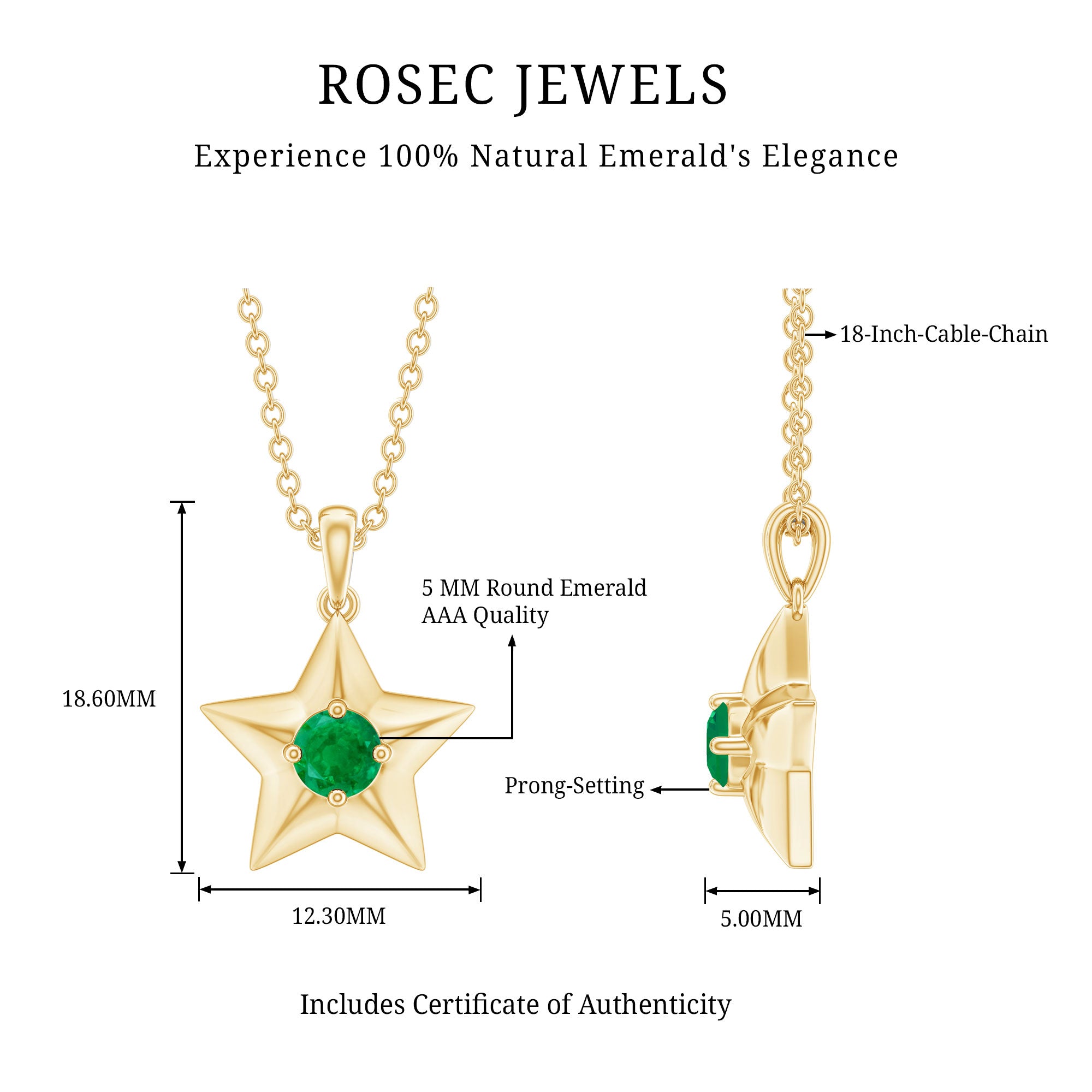 Give this Round Cut Emerald Pendant Necklace in Star Collection to your beloved on her Birthday. This May Birthstone Pendant is in Gold Embellishment and Prong Set.