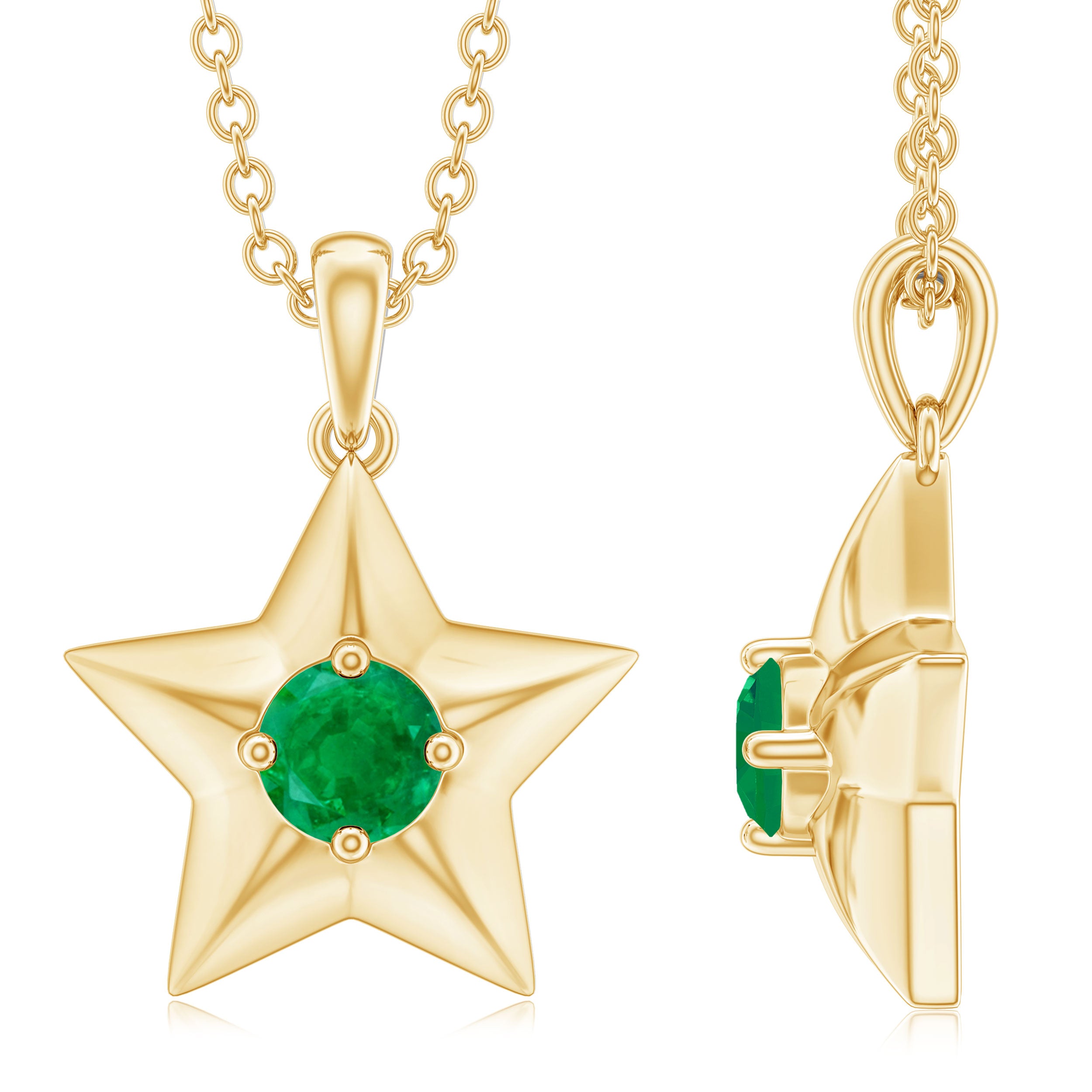 Round Cut Emerald and Gold Star Pendant Necklace