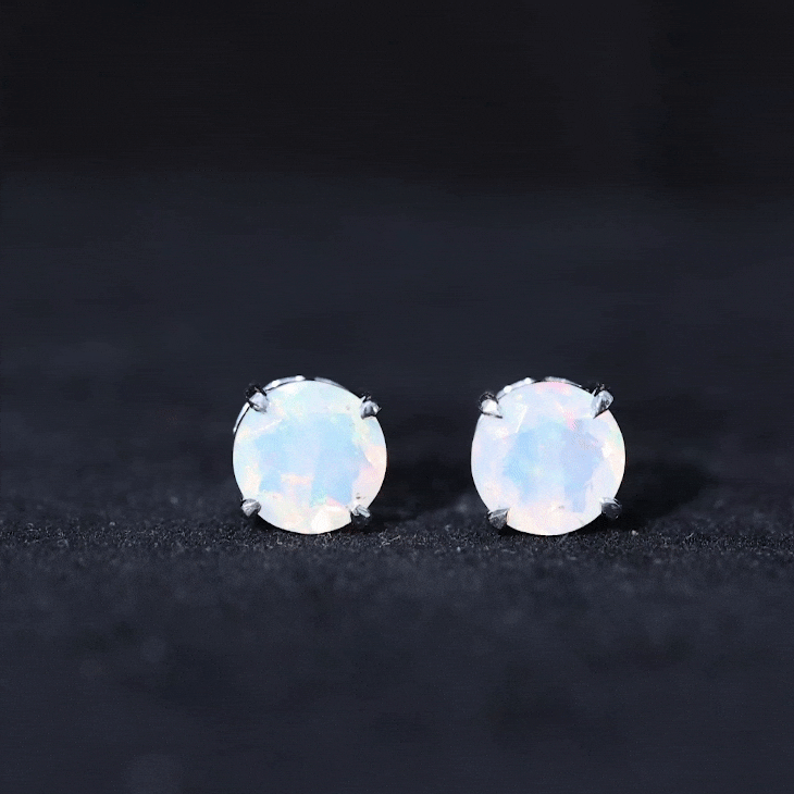 Round Cut Ethiopian Opal Solitaire Stud Earrings for Women