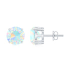 Round Cut Ethiopian Opal Solitaire Stud Earrings for Women