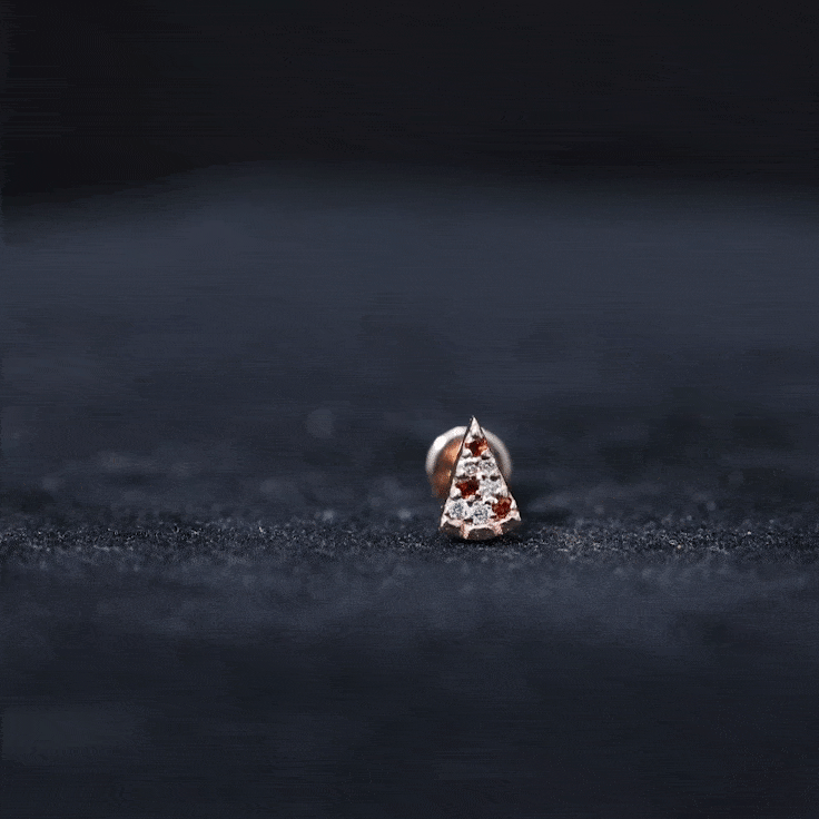 Our Pizza Slice Earring is a fun and unique piece of jewelry featuring Garnet and Diamonds in Prong Setting, all enclosed within a pizza slice design. You can style this Garnet Earring on your Helix, Cartilage, Conch, Tragus, or Upper Lobe Piercing. It is crafted for you and will be delivered in a premium quality jewelry box for safe storage in the future. Available in various metal options, you can select the finish that best matches your personal style. The combination of AAA quality garnet, HI-SI quality diamonds, and fun design makes this Cute Earring a standout accessory that complements both casual and formal outfits. Classic and elegant, it is a piece that adds timeless beauty and a hint of romance to any jewelry collection and ideal for your pizza lover friend.
