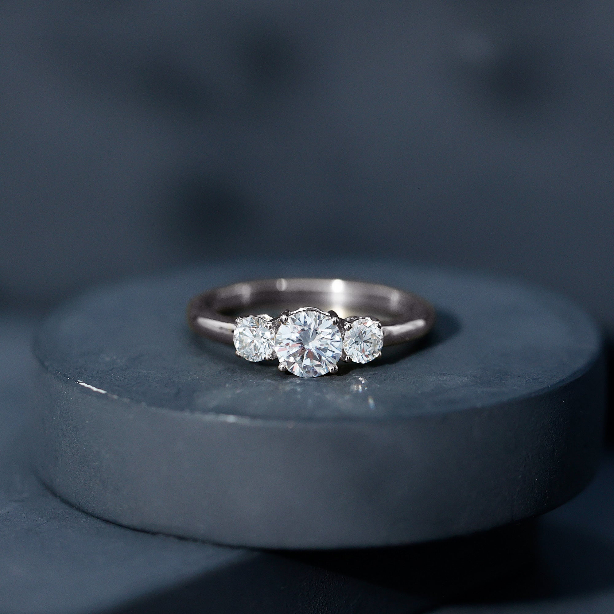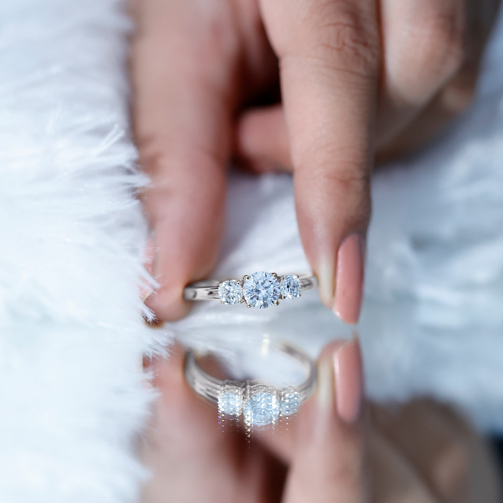 Round Cut Lab Grown Diamond 3 Stone Ring For Women