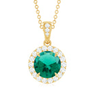 Round Cut Lab Grown Emerald Necklace With Moissanite Halo