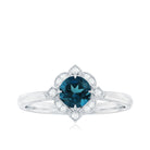 Round Cut London Blue Topaz and Diamond Flower Engagement Ring