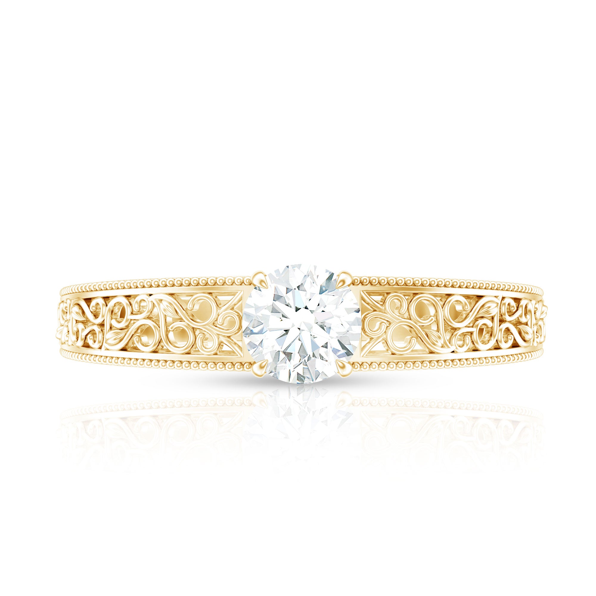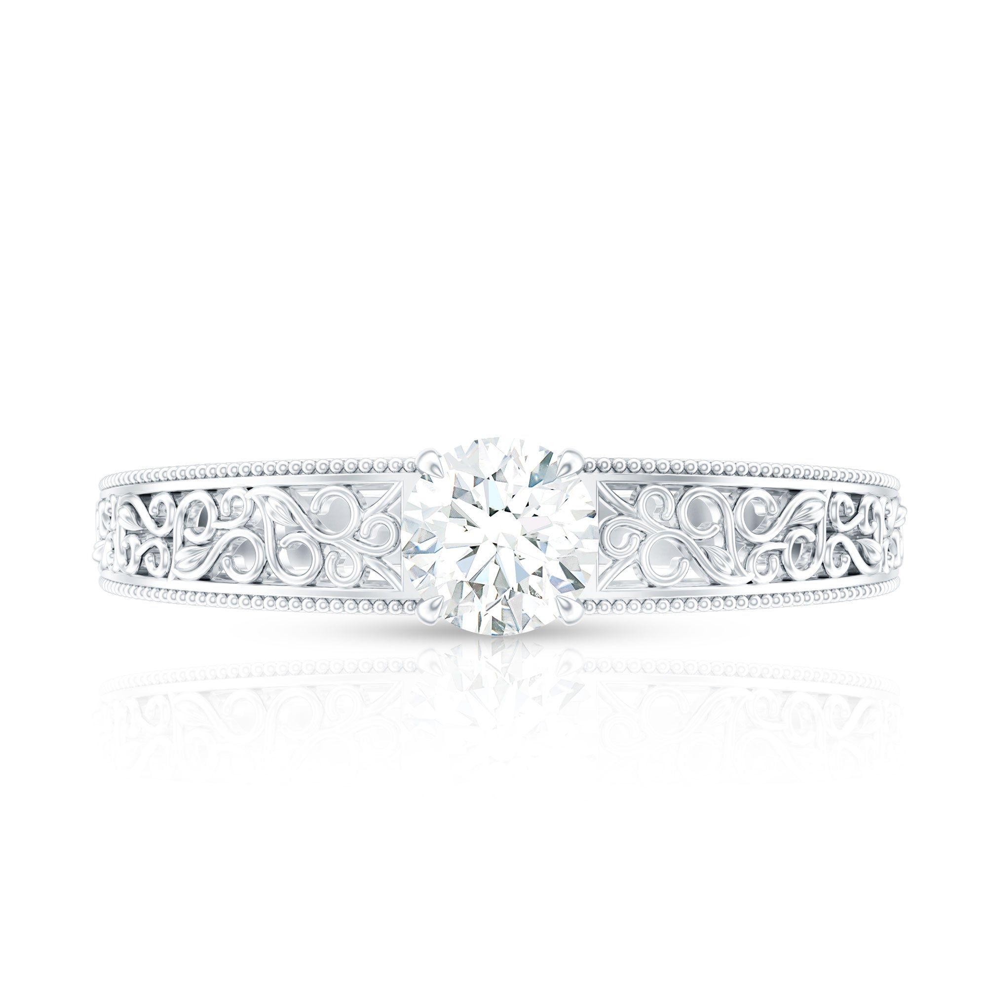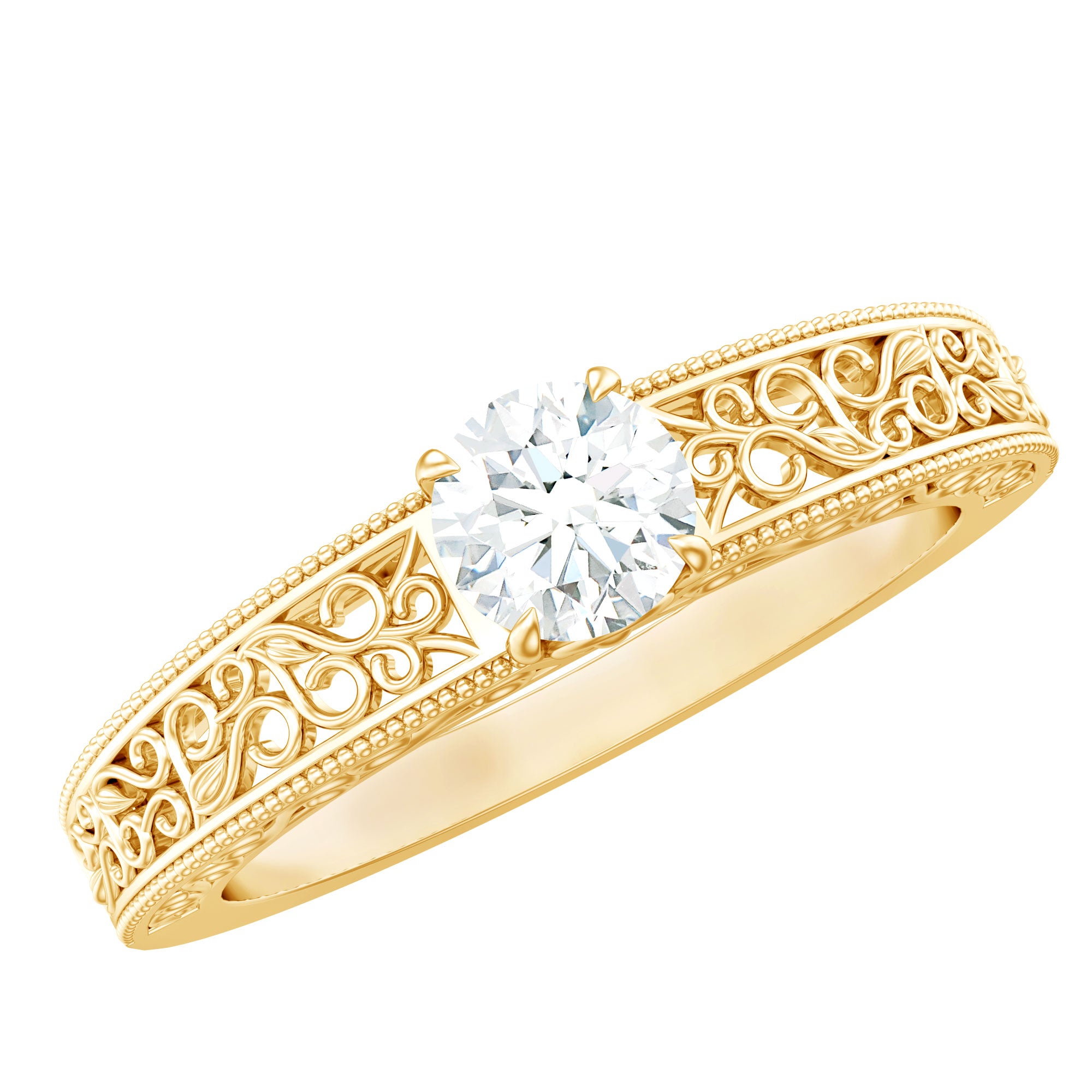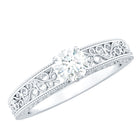 Round Cut Moissanite Solitaire Engagement Ring with Filigree Band