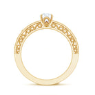 Designed with a touch of history, this Moissanite Solitaire Ring has the kind of beauty that never fades. At the heart of the design sits a stunning 5 MM Round Cut Moissanite, held securely in claw setting. Known for its brilliance and clarity, this D-VS1 graded gemstone radiates timeless elegance, making it a perfect choice for engagement, anniversary, or a meaningful gift. What truly sets this ring apart is the vintage-inspired filigree band. Delicately carved with swirling vines and leaf motifs, the intricate detailing creates an antique feel while remaining light and graceful on the finger. Beaded accents along the edges further enhance the design, adding texture and a refined finish that complements the center stone without overpowering it. This Antique Moissanite Ring is designed for women who appreciate a blend of traditional charm and modern simplicity. Whether you are celebrating a proposal or marking a special occasion, its graceful style offers both beauty and significance. Available in multiple metal colors, forms, and ring sizes, this Vintage Moissanite Engagement Ring can be customized to suit her personal style. Each piece is carefully handcrafted and comes with a gemstone authentication certificate, assuring quality and authenticity. It also arrives in an elegant jewelry box, ready to be gifted or cherished as a personal keepsake.