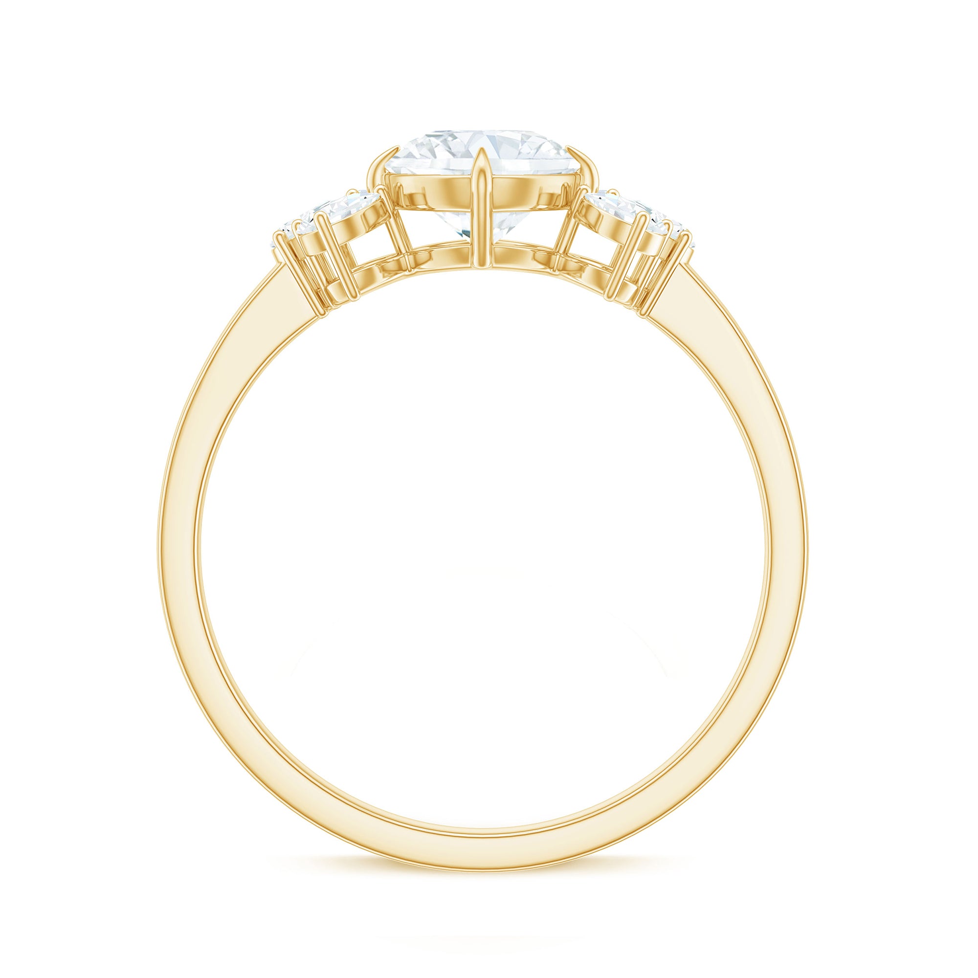 Make an entrance with this brightly polished Moissanite Engagement Ring. At the center of this romantic piece glows a brilliant 6MM round cut moissanite, cradled in secure claw setting. On each side of the center stone, dainty trios of pear shape moissanite stones shimmer like drops of light, symbolizing the past, present, and future of your promise. Their sparkle adds a graceful balance to the design, while the soft curves of the band bring a sense of flow and harmony. Every stone in this Cluster Engagement Ring is offering the brilliance and fire of fine jewelry with a more thoughtful, sustainable choice. The D-VS1 quality moissanites offer outstanding clarity and a dazzling brilliance, rendering this piece an extraordinary selection in terms of both sentiment and visual appeal. Whether you are solidifying a commitment, expressing love, or offering a meaningful present, this Certified Engagement Ring tells a story of connection and consideration. Carefully designed with an emphasis on precision and a modern flair, this Moissanite Ring for Women is presented in an elegant jewelry box, making it perfect for personal enjoyment or as a gift. With its floral charm and timeless design, it is a ring meant not just for adornment but also for everlasting appreciation.