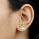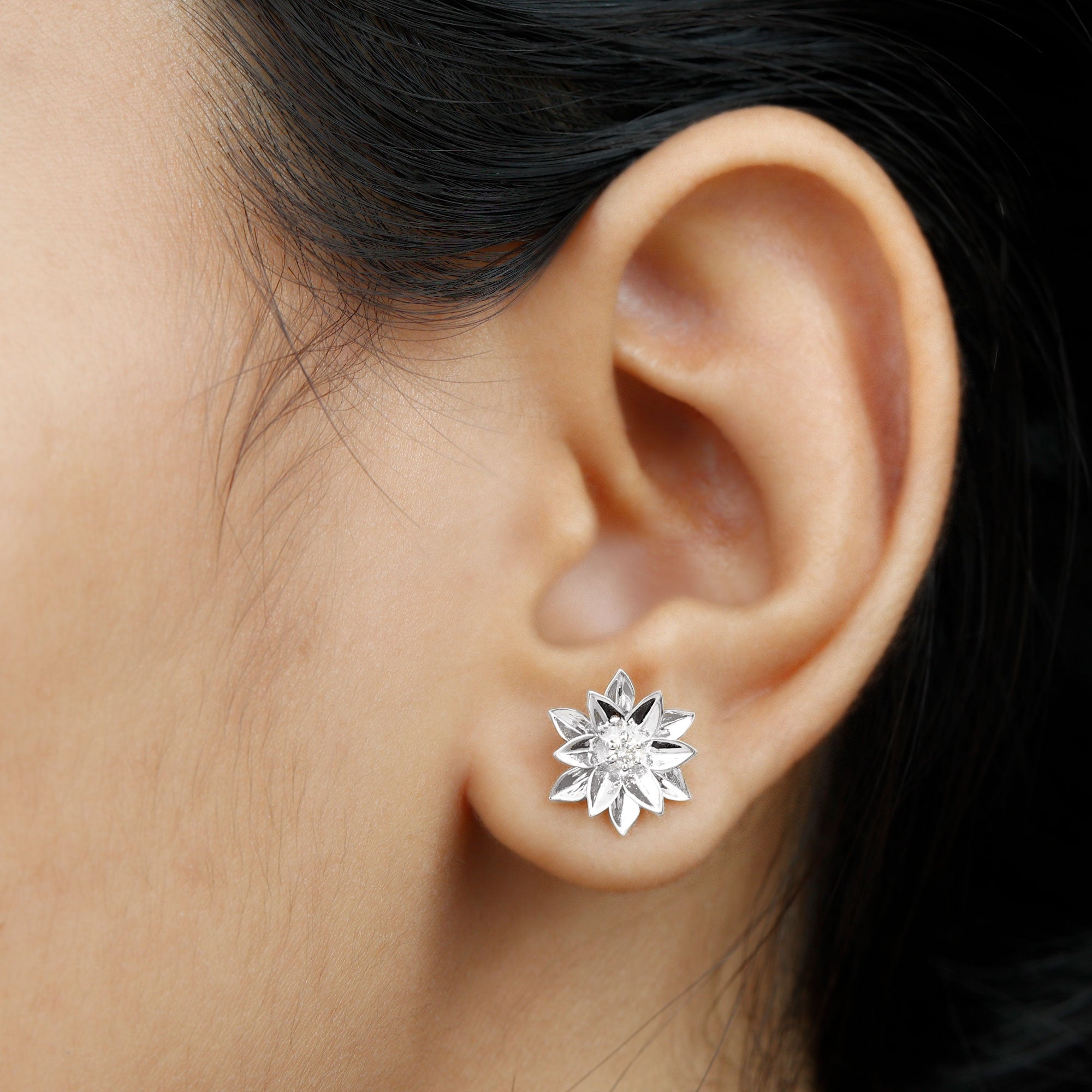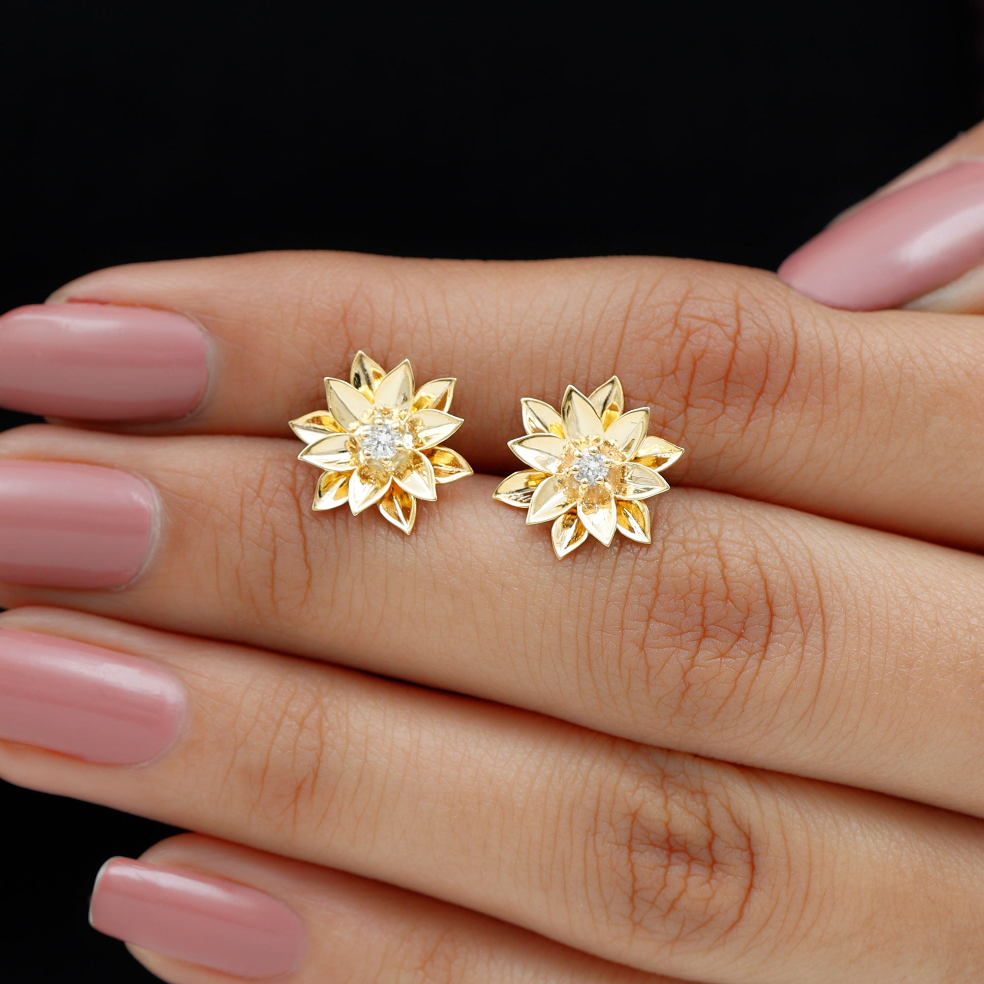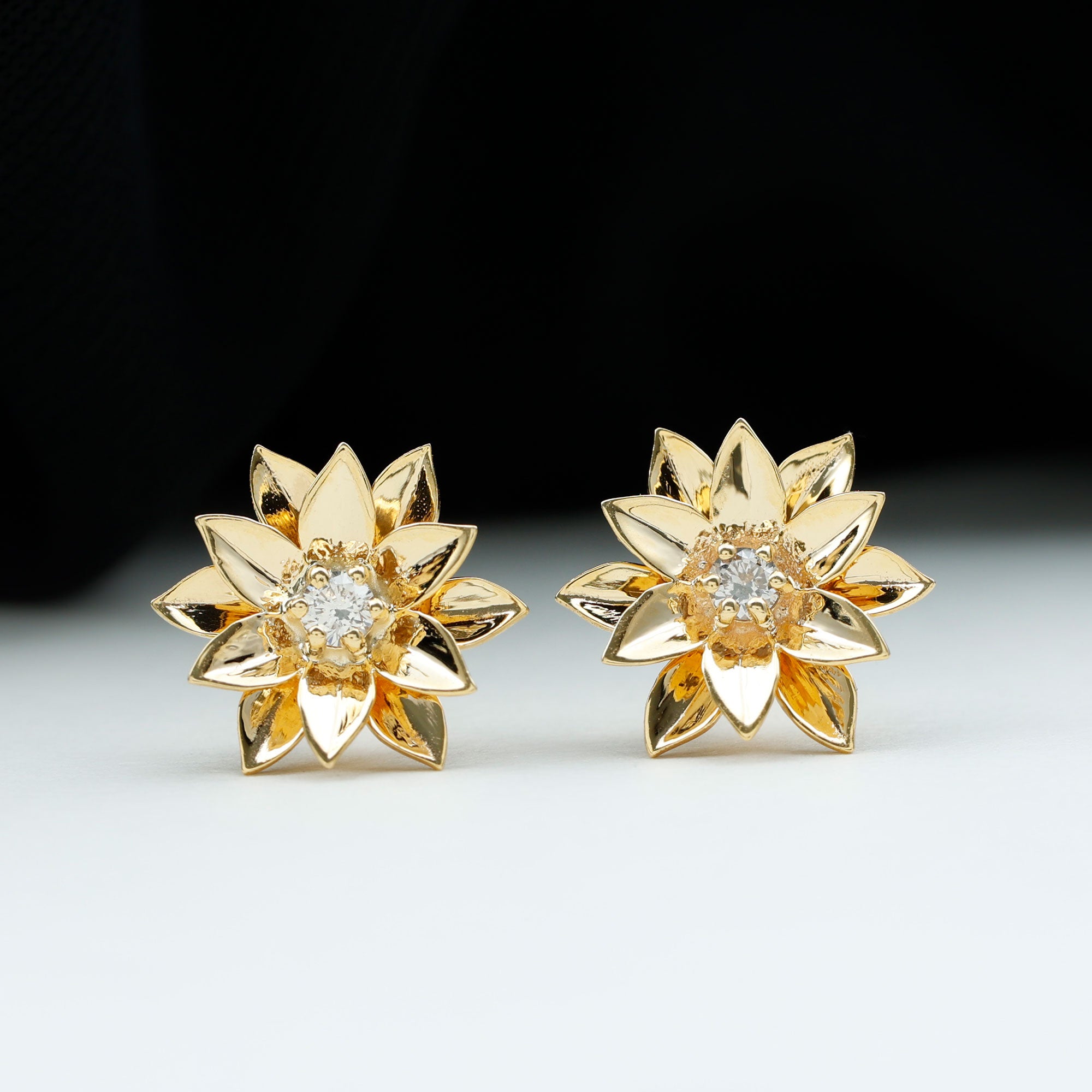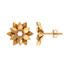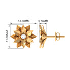 Round Cut Natural Diamond Gold Flower Stud Earrings