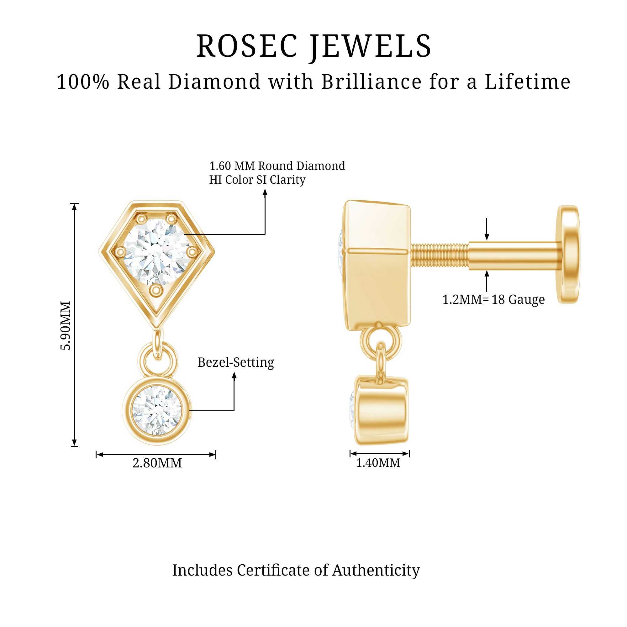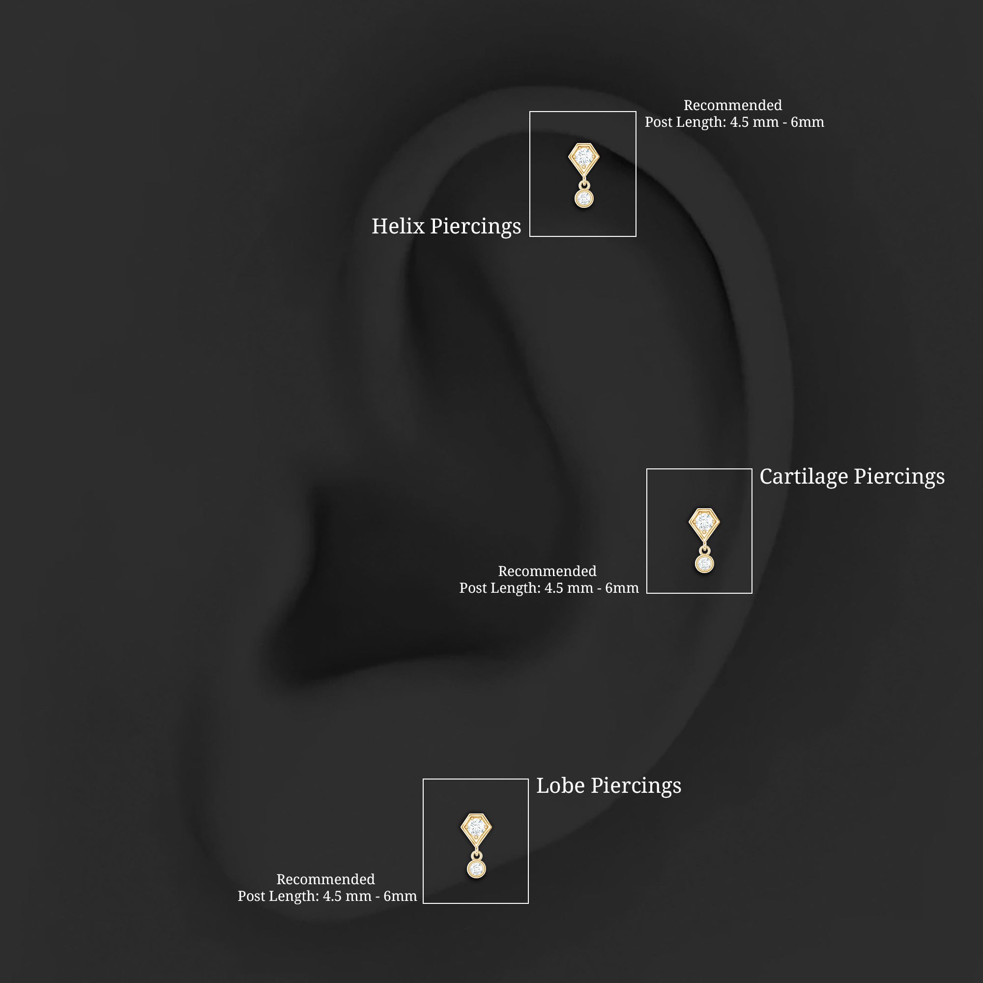 This elegant Diamond Simple Helix Drop Earring is crafted in Gold and adorned with sparkling Round Cut Diamond on a unique design with a small Round Cut Diamond hanging as a drop. We offer handcrafted 100% real and certified diamonds with stunning designs at affordable prices. Our jewelry arrives ready to gift in our Signature Box. The Tiny Diamond Earring can be styled on your Helix, Rook, Tragus, Cartilage, or Upper Lobe Piercing and comes with a Flat Back Closure for a comfortable fit. Present this Cartilage Earring as a precious Birthday, Anniversary, New Years, or Christmas Gift for her, and she will never want to take it off.
