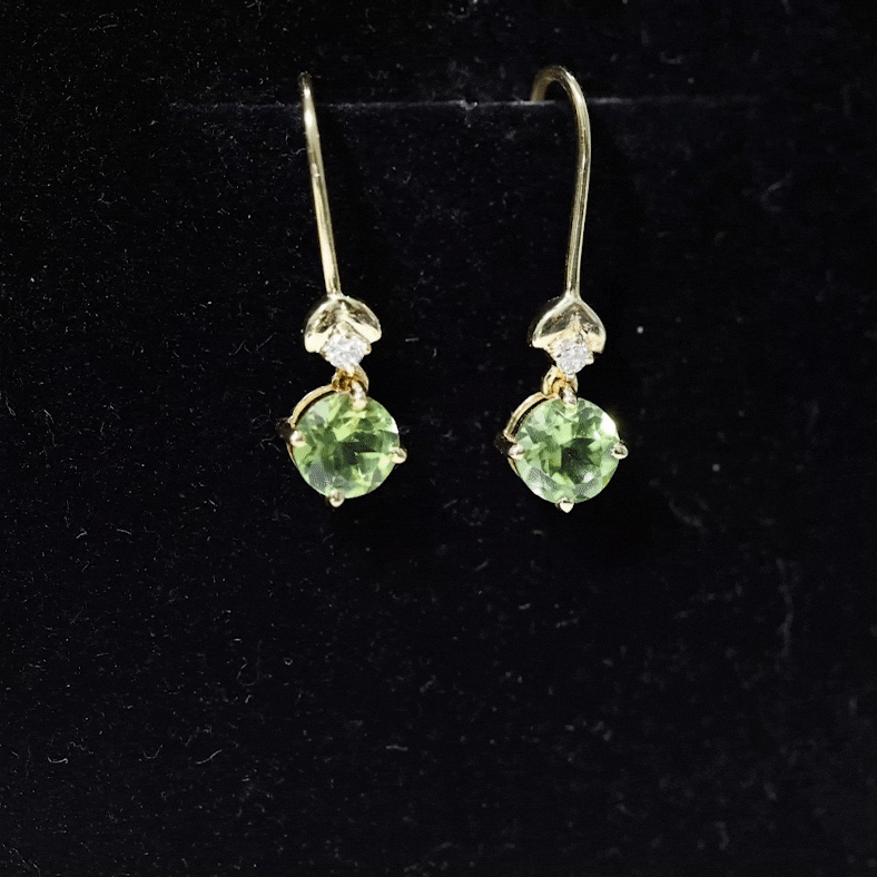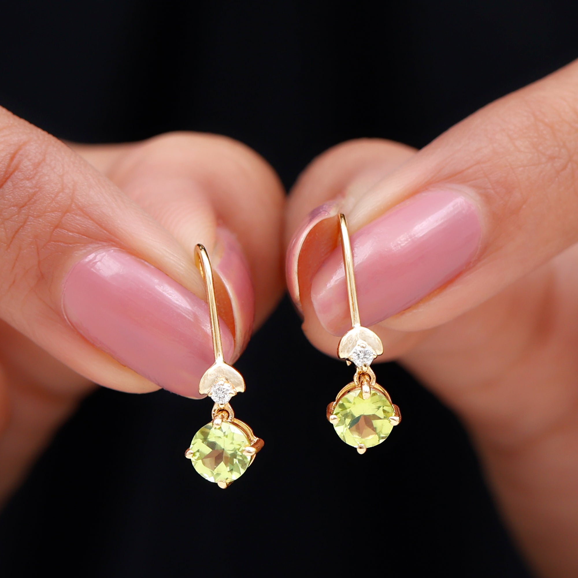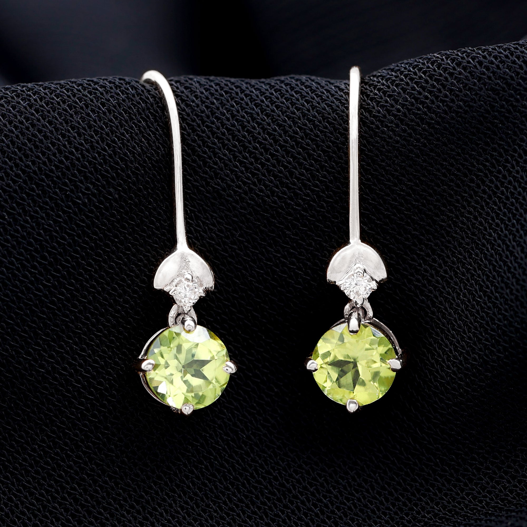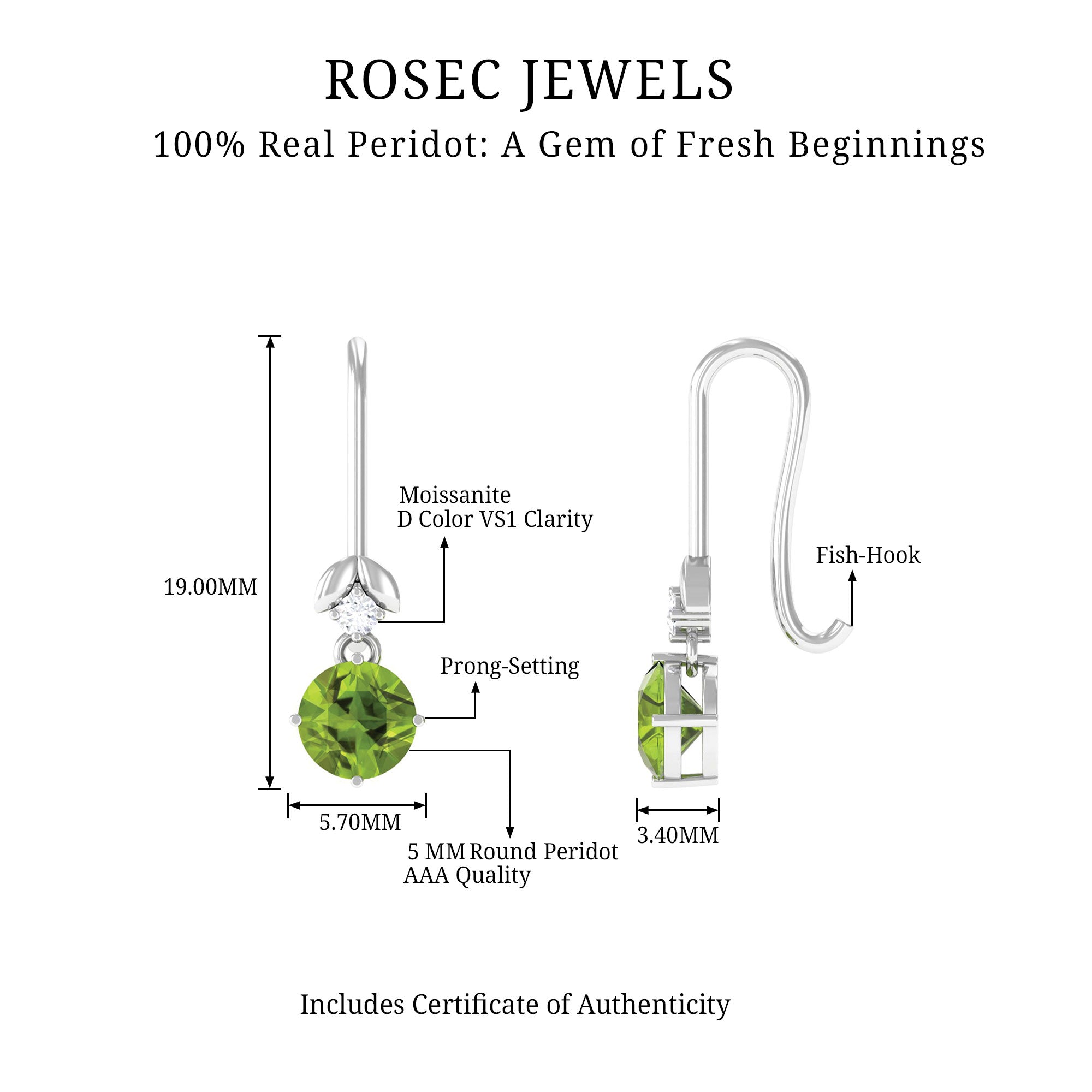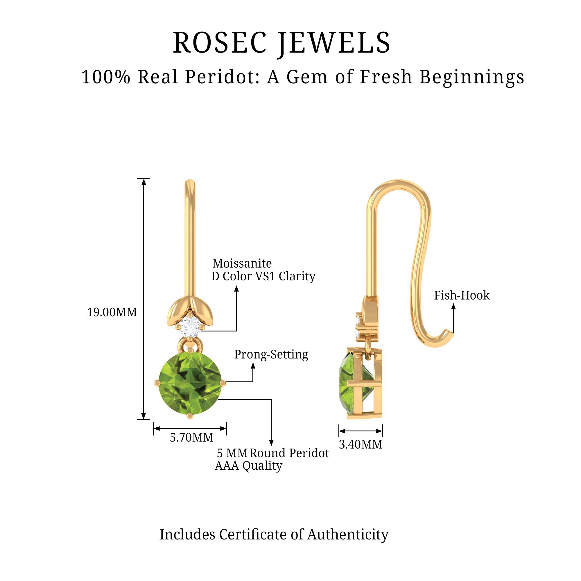 Round Peridot and Moissanite Drop Earrings with Fish Hook