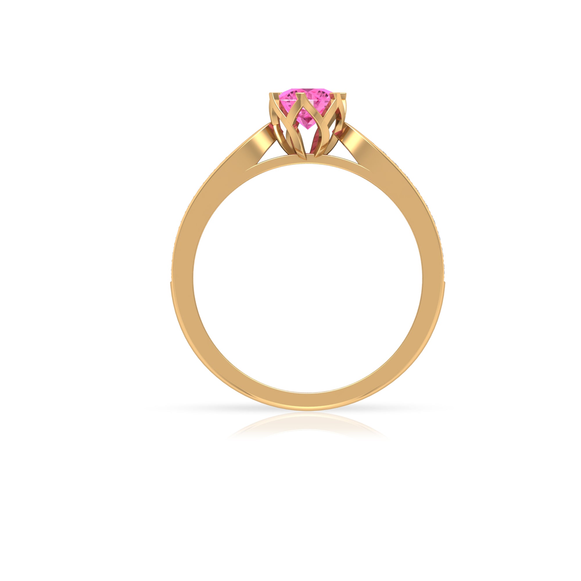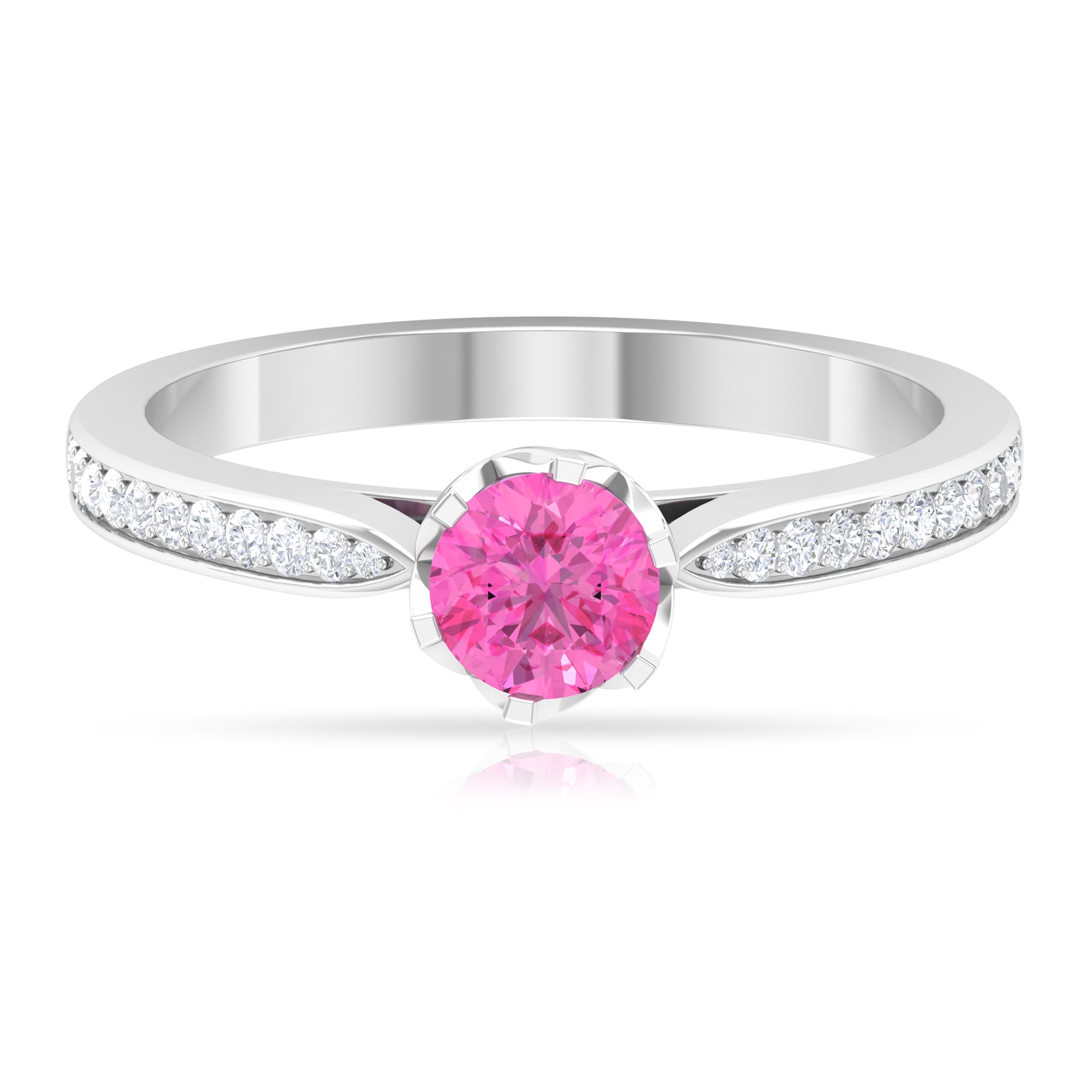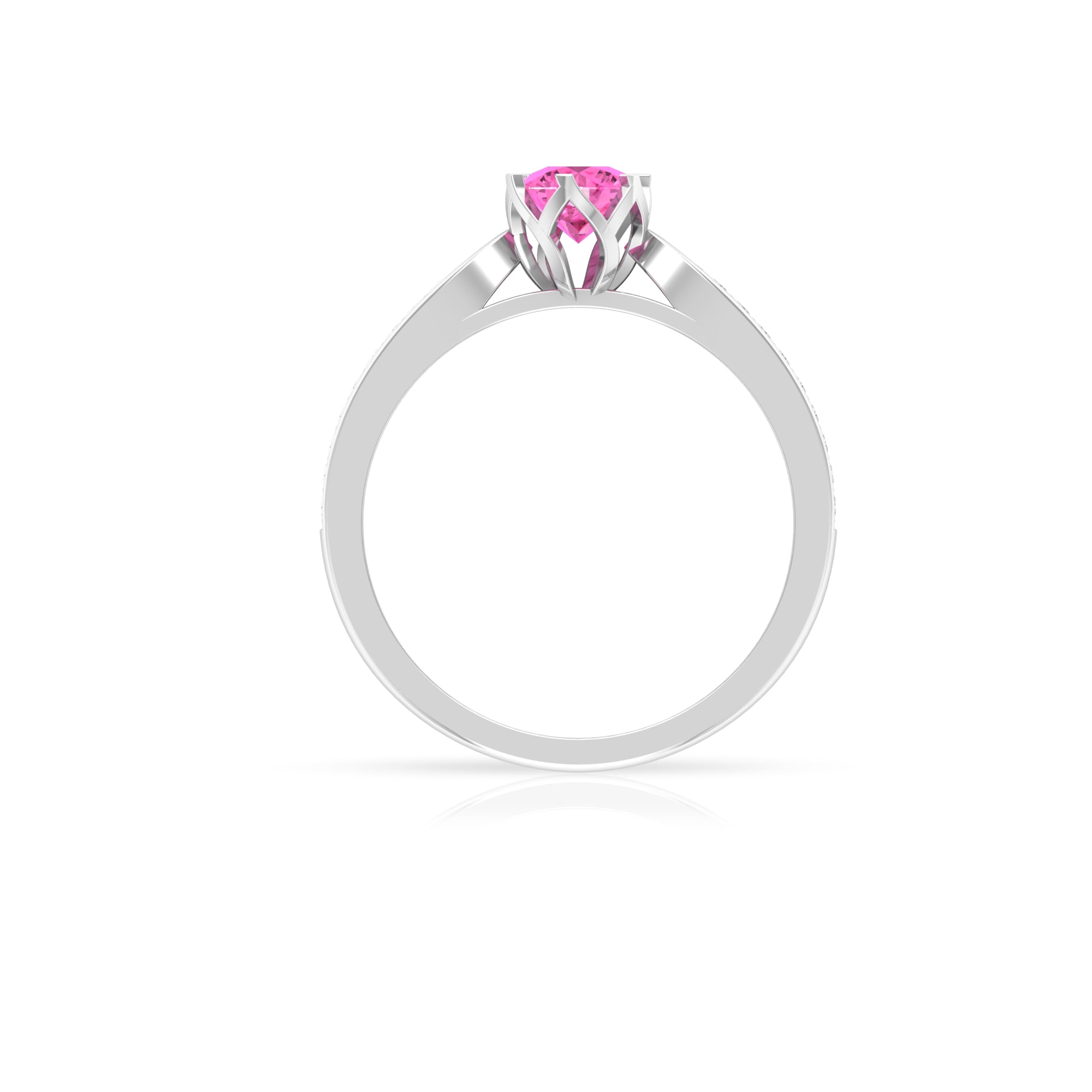Round Cut Pink Sapphire Solitaire Engagement Ring with Diamond