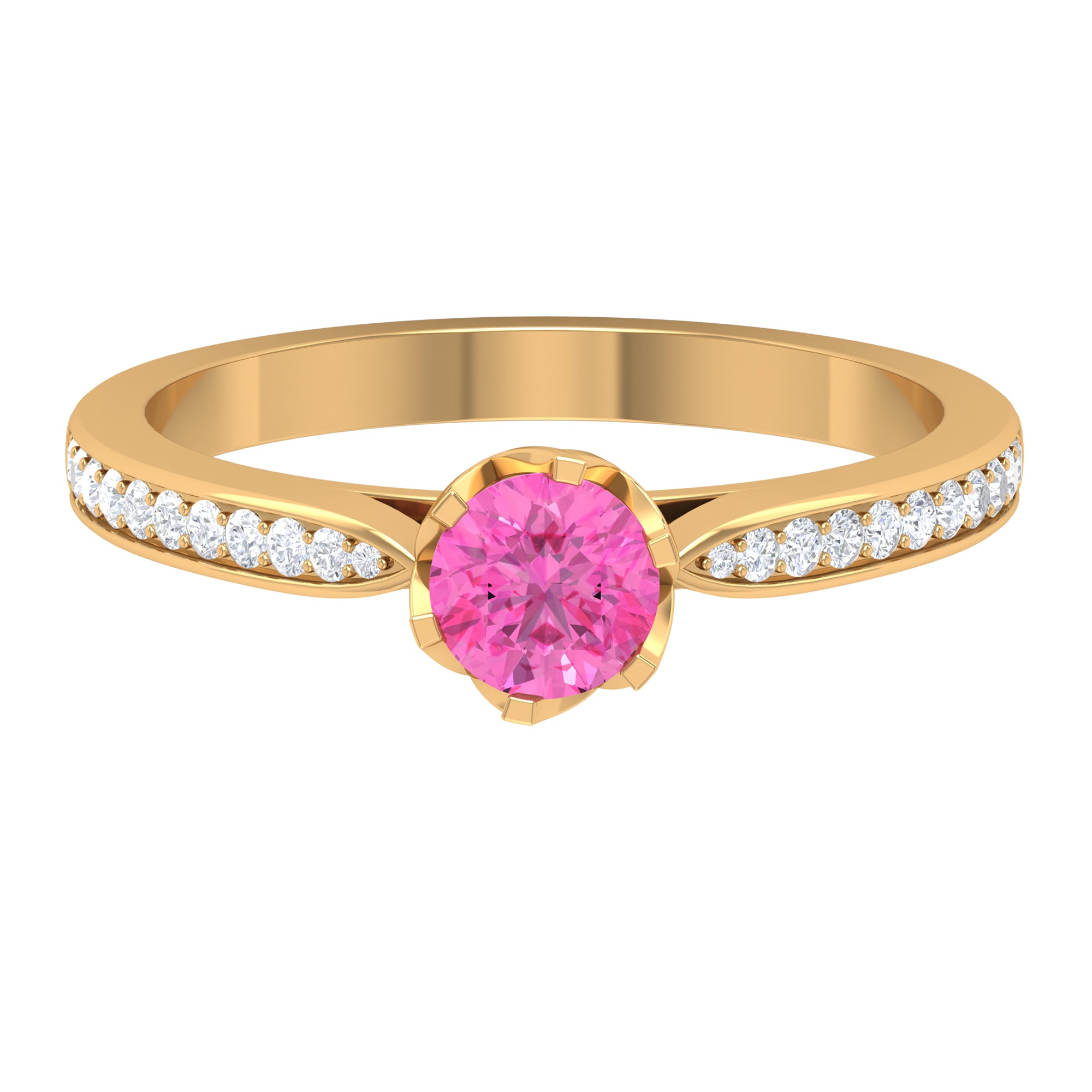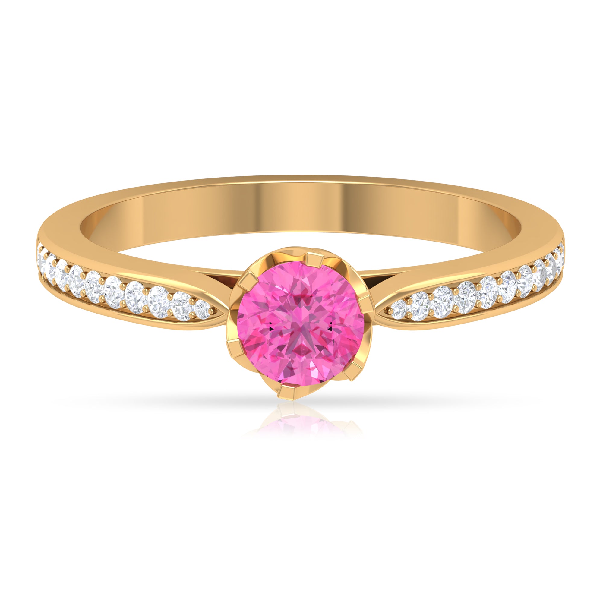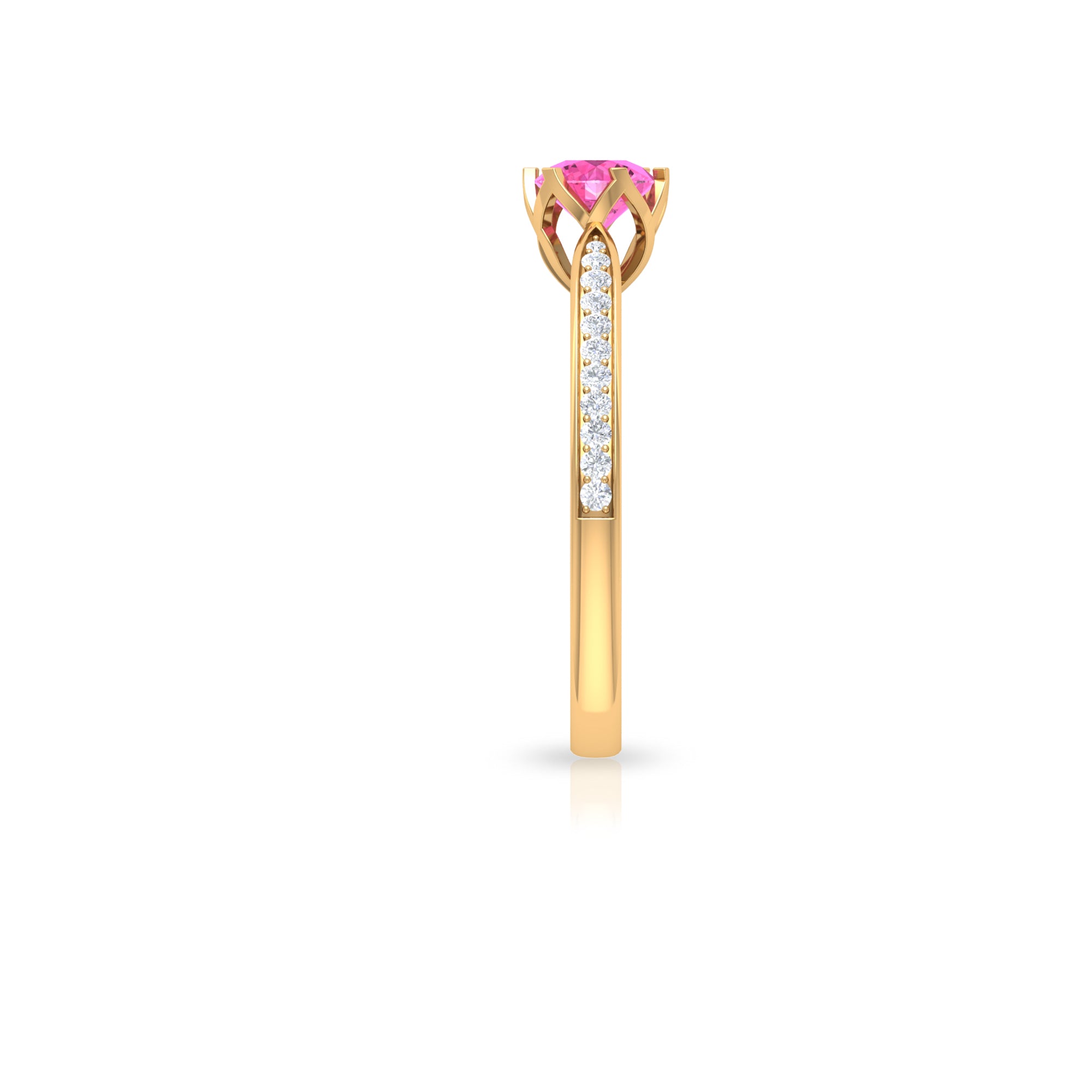 Round Cut Pink Sapphire Solitaire Engagement Ring with Diamond