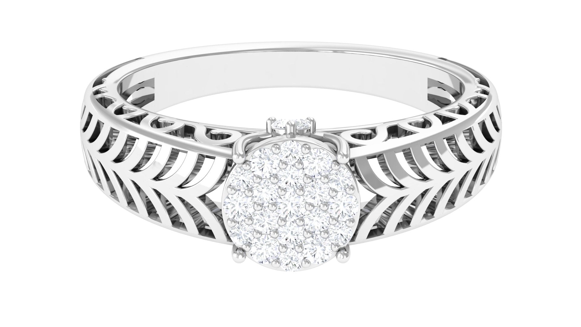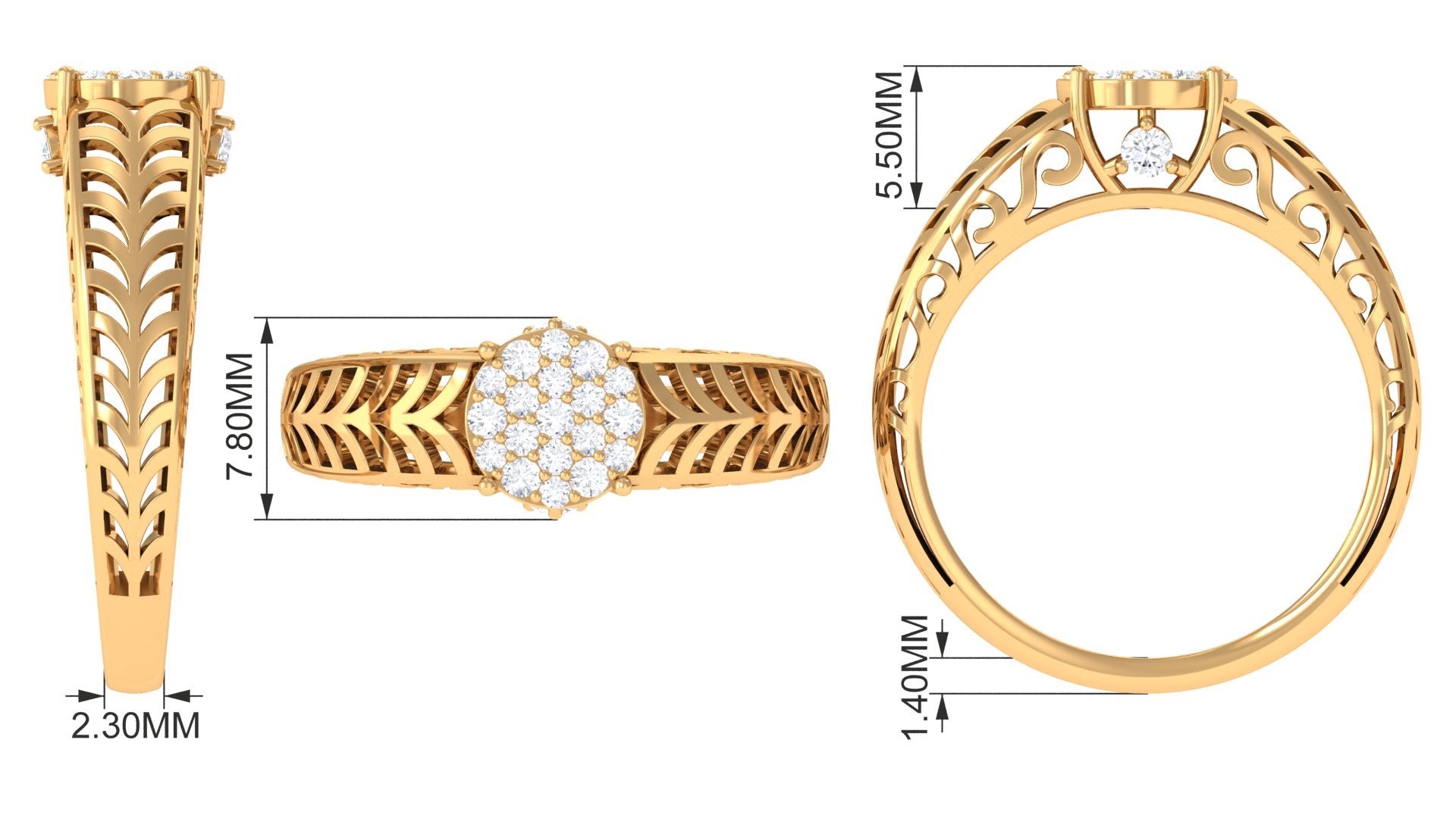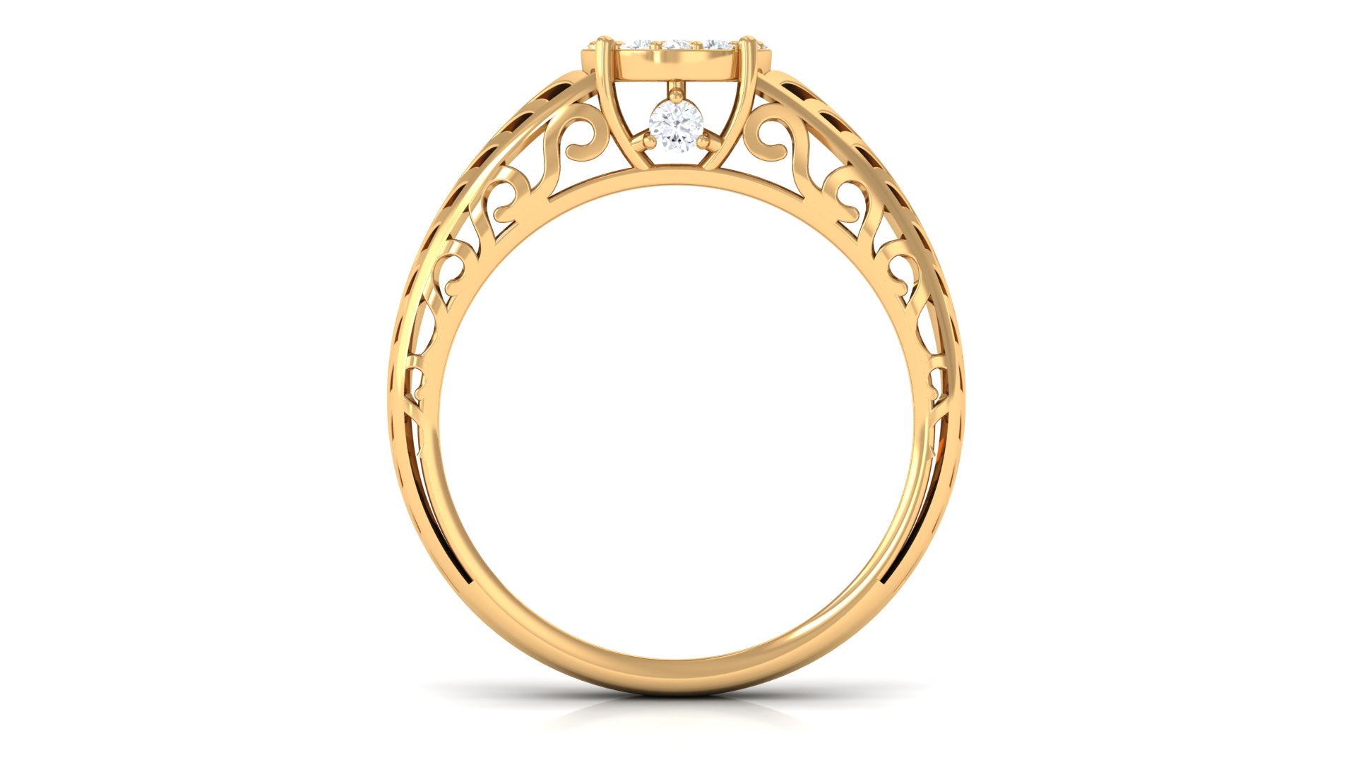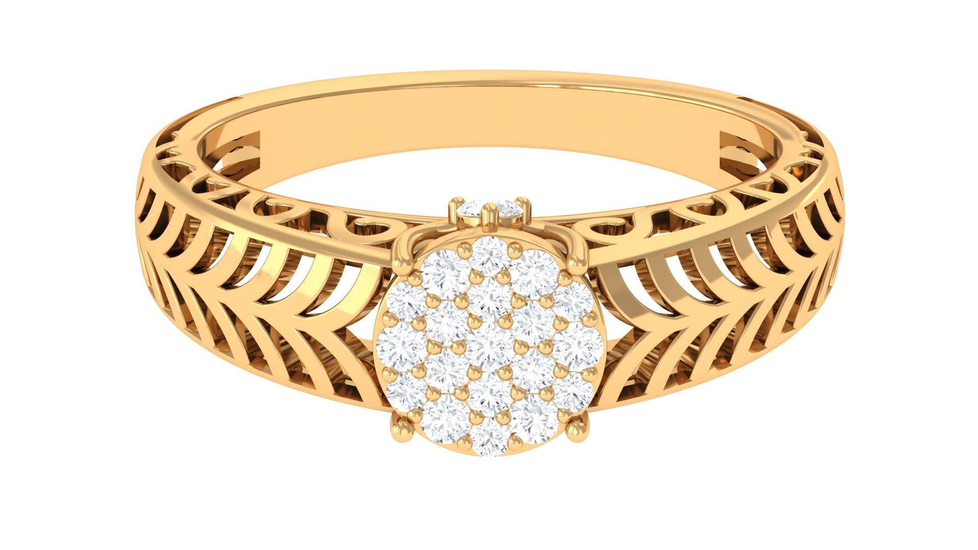With a sleek and classic design, the Diamond Engagement Ring is a stunning piece of jewelry embellished with a cluster of Round Brilliant Cut Diamonds set in a pave setting. Crafted with Gold, this ring features an intricate filigree design that adds to its attractiveness and eye-catching appeal. Perfect for any wedding collection, this filigree ring is an excellent addition to upgrade your jewelry collection. It also makes an ideal gift for any occasion.