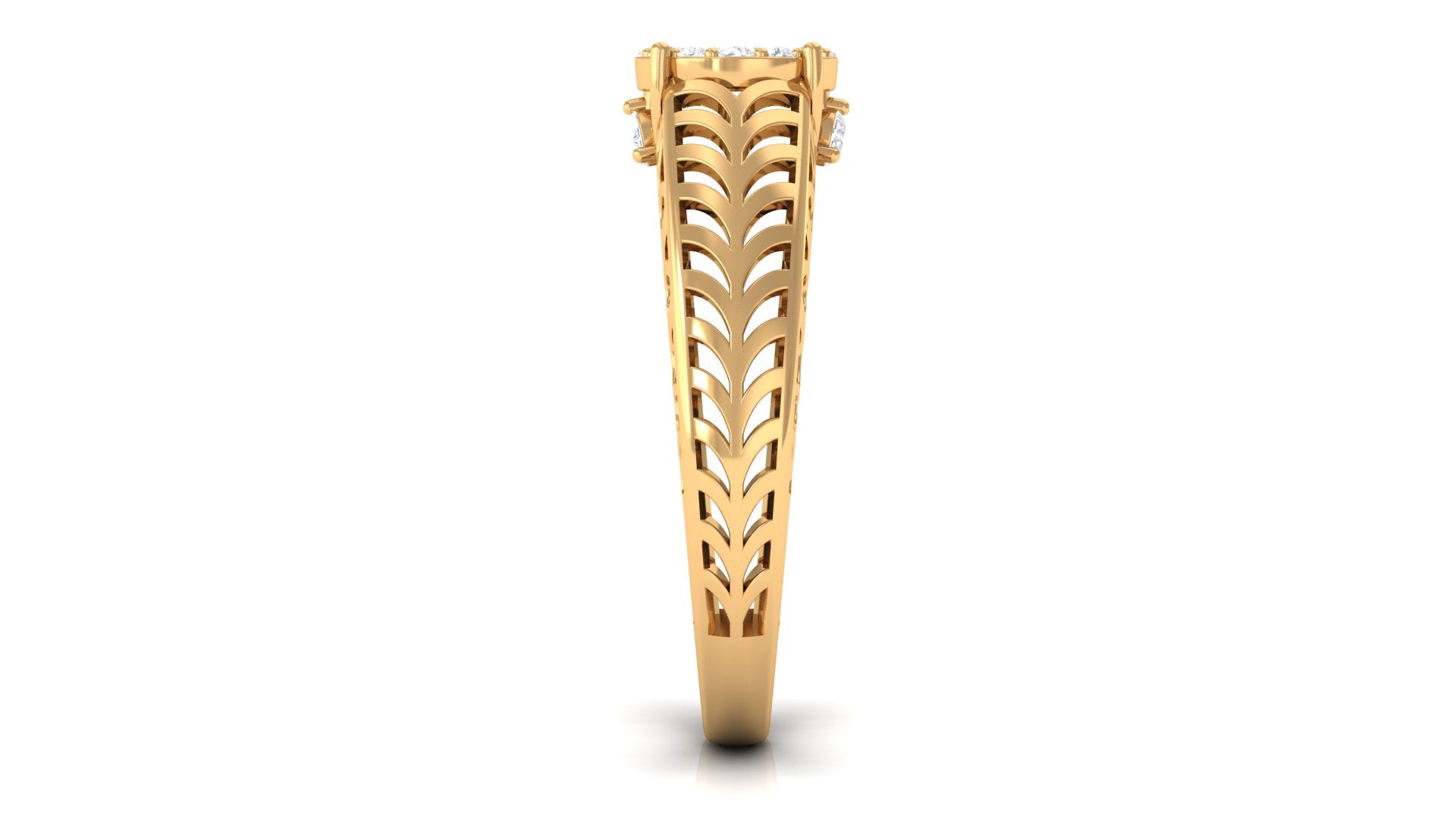 Round Cut Real Diamond Engagement Ring with Gold Filigree Shank