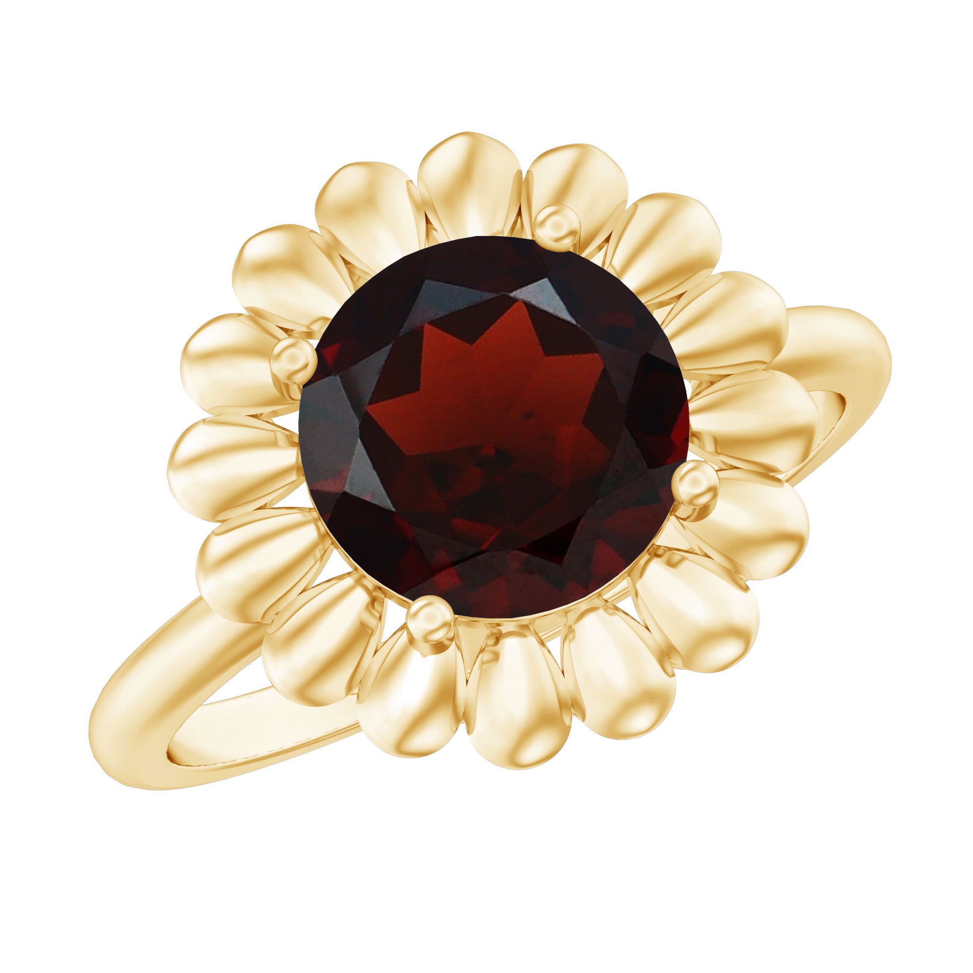 Adorn your finger with the beauty of a round-cut solitaire Garnet flower ring. This exquisite piece radiates elegance and charm in a floral-inspired design.