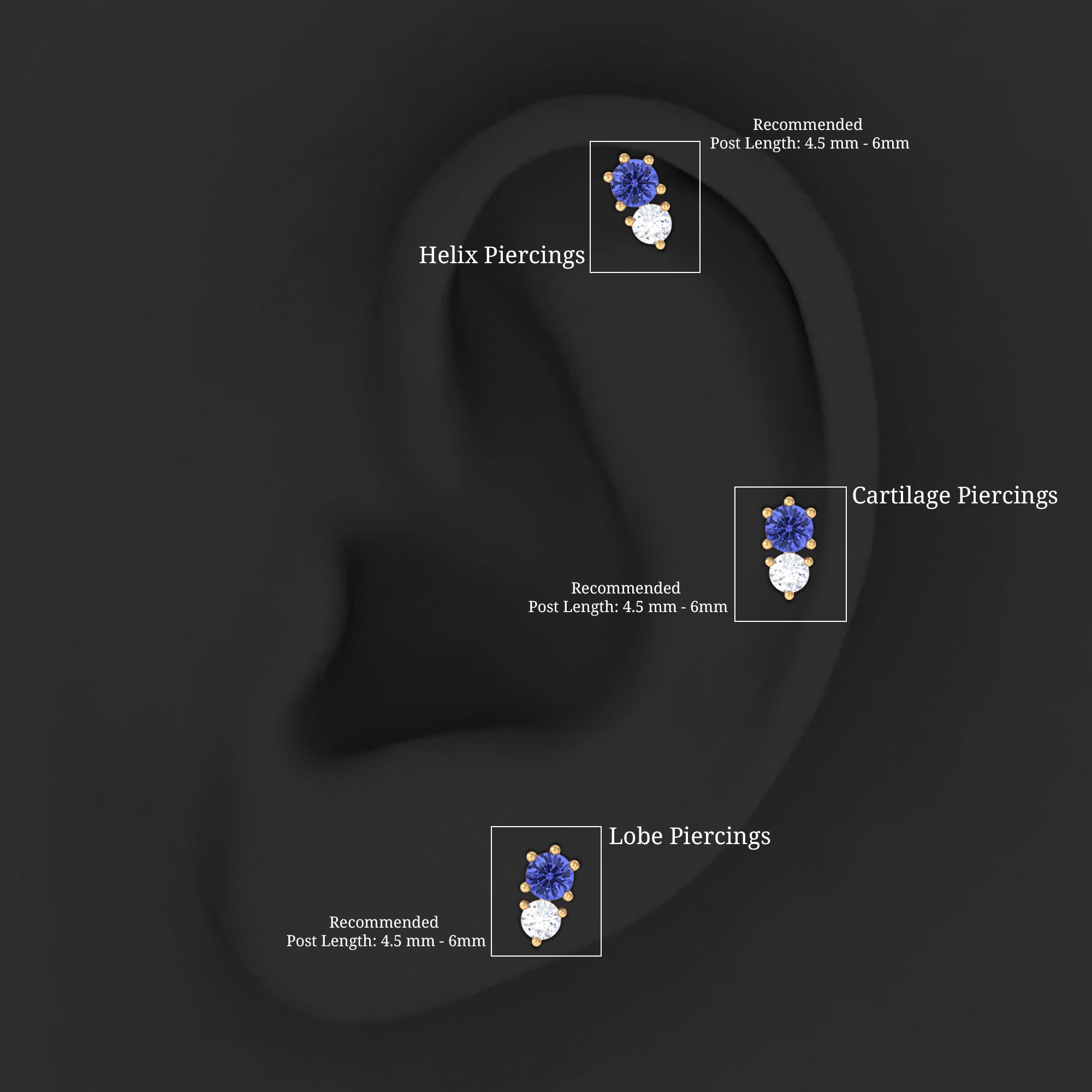 This exquisite Tanzanite Stud Earring is a must-have to elevate your ear piercing. The Helix Piercing Earring features Round Cut Tanzanite and Diamond in Prong Setting, beautifully crafted to create a stunning jewelry piece. This 2 Stone Ear Stud versatile and can be worn on your Conch, Tragus, Cartilage, Helix, or Upper Lobe Piercings to make you look your best, whether youre going for a casual brunch or a fancy date night. Surprise your beloved by gifting this precious Tanzanite Conch Earring on her birthday and make it a day to remember.