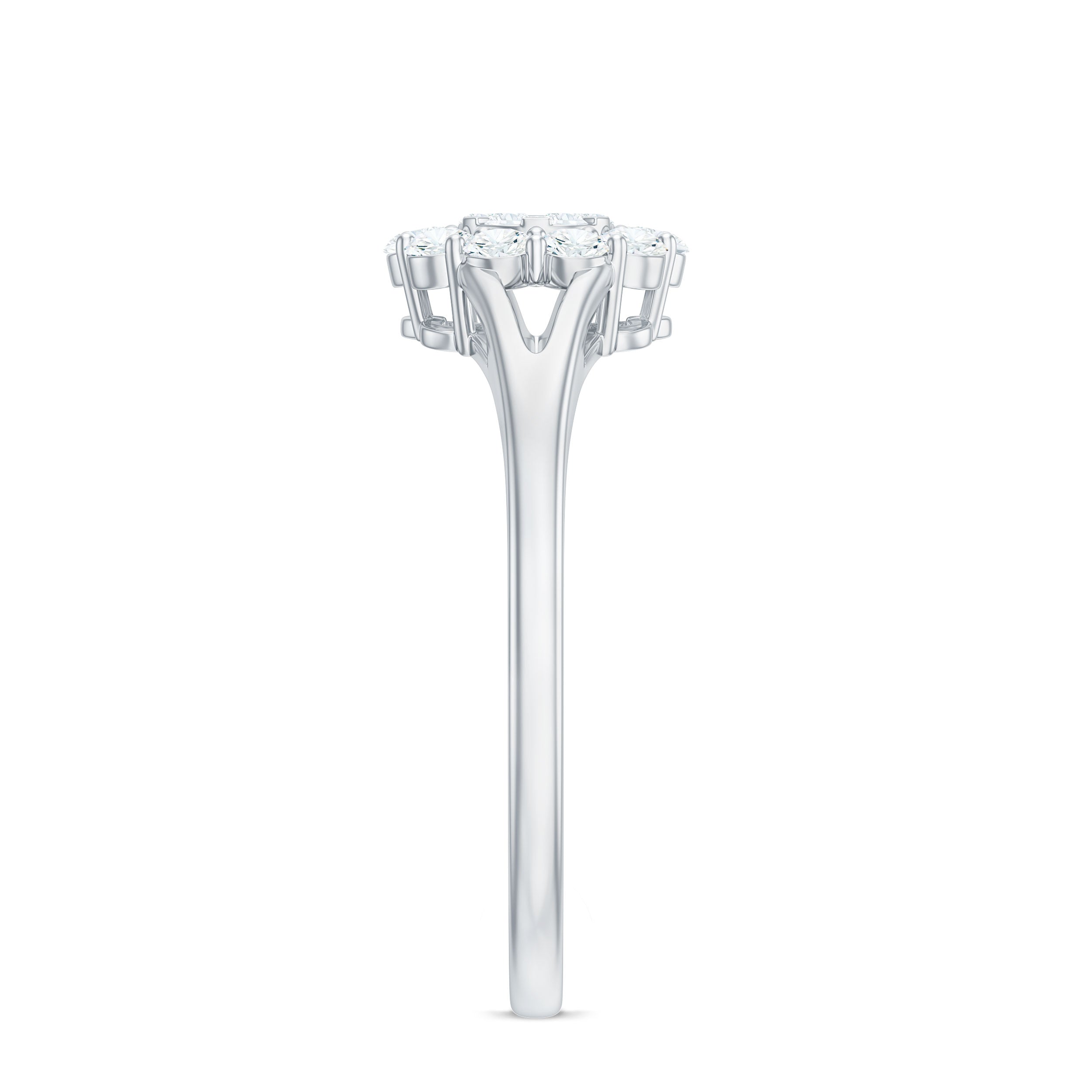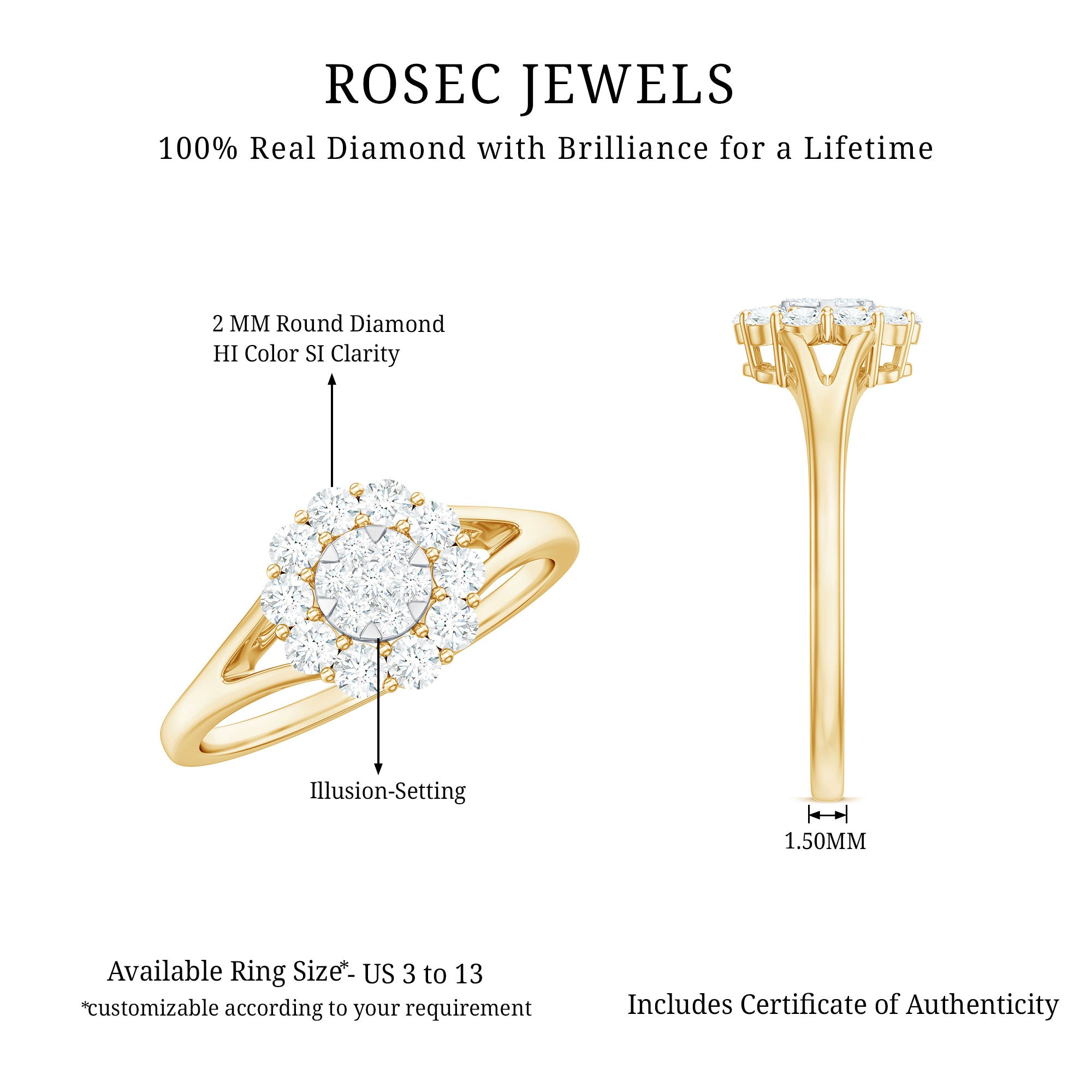 As the sparkling Diamond Promise Ring turns heads, it makes your moment even more unforgettable. As a heartfelt commitment, this Floral Promise Ring catches the glimpse and breaks out with sparkle and vibrant beauty. As a symbol of enduring love and refined simplicity, this Commitment Ring is adorned with Round brilliant cut Diamond in an Illusion Setting, making a beautiful cluster. To adorn this Ring is the Round Shape Diamond that makes a stunning Halo, along with a Split Shank. This Promise Engagement Ring is a deeper connection to relationships and self-expression, also promising trends that will bloom. It promises to celebrate nature, mimicking the flower-type pattern, making it a gorgeous piece of jewelry. Its rare design is sure to astound your sweetheart. The dazzling brightness includes a lot of sparkle and gleam that catches everyones attention. Flower Engagement Ring stands apart from others, giving a distinctive look and garnering a lot of attention. Stylish and feminine, this Floral Diamond Ring has extremely floral details exuding passion.