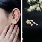 Step up your fashion game and flaunt your zodiac sign with our gorgeous Diamond Gemini Earring. It features Round Diamonds set in prong setting, creating a constellation design that is bound to grab attention. This Diamond Constellation Earring is perfect for your Helix, Cartilage, or Upper Lobe Piercings, and the Flat Back Closure ensures it stays securely in place. Whether it is for a birthday, anniversary, or just because, this Celestial Earring is a fantastic way to show her how much she means to you. Adorn her ear with this Star Sign Earring and surprise your Gemini lady in the sweetest way. Show off the earring at evening parties, work events, date nights, or any special occasion. The endless sparkle and brilliant shine of this zodiac jewelry is sure to catch your eye and make it a treasured accessory. Add a personal touch to your style with this stylish earring. Ideal for those born between May 21 and June 21, this minimalist jewelry piece carries a lot of significance. Now, you can effortlessly display your sign without saying a word - just wear it proudly on your ear. It comes with an Authenticity Certificate and a luxurious velvet pouch.