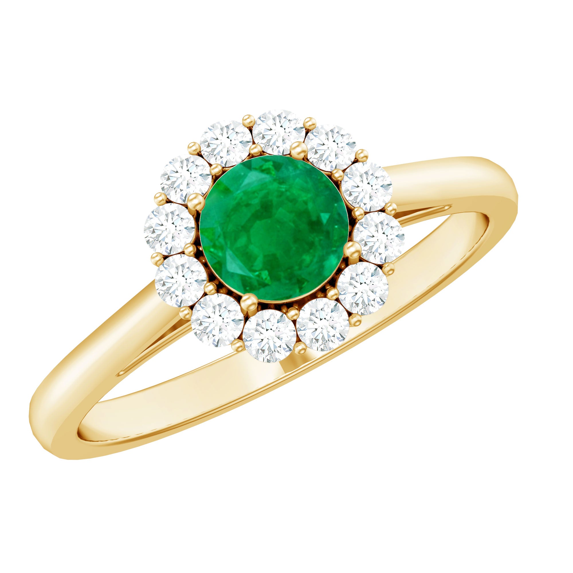 This Emerald Engagement Ring captures the essence of timeless beauty and meaningful elegance. At its center lies a 5 MM round cut emerald, held securely in prong setting. Surrounding the emerald is a delicate halo of sparkling diamonds, designed to catch the light from every angle and add a brilliant glow to the Round Engagement Ring. The combination of the AAA quality real emerald and the dazzling HI-SI quality diamonds creates a stunning contrast that makes the Halo Engagement Ring truly stand out. Each diamond adds a touch of sparkle, enhancing the overall beauty and giving the piece a luxurious yet graceful look. The halo style not only highlights the emerald as the star of the ring but also provides added security and durability, making it suitable for daily wear or special occasions. Crafted with care and precision, this Emerald and Diamond Ring balances elegance with comfort, ensuring it feels as good as it looks. Its thoughtful design reflects both style and sentiment, perfect for someone who wants a meaningful symbol of love and commitment. Presented in a beautiful jewelry box, this Round Emerald Ring is ready to become a treasured keepsake. It holds the promise of lasting memories, deep emotions, and endless sparkle, making it a wonderful choice for marking life’s most special moments.