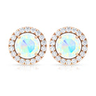 Round Ethiopian Opal and Diamond Halo Stud Earrings
