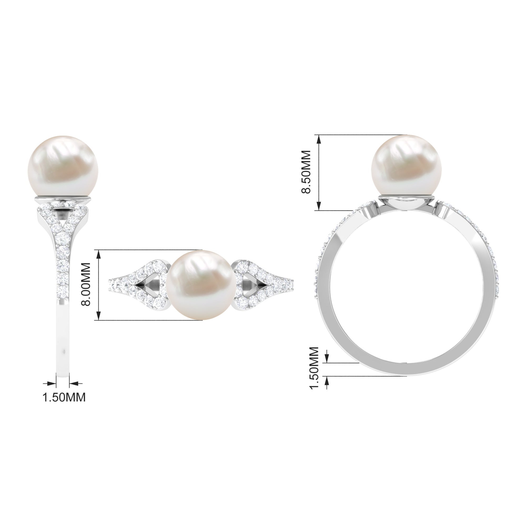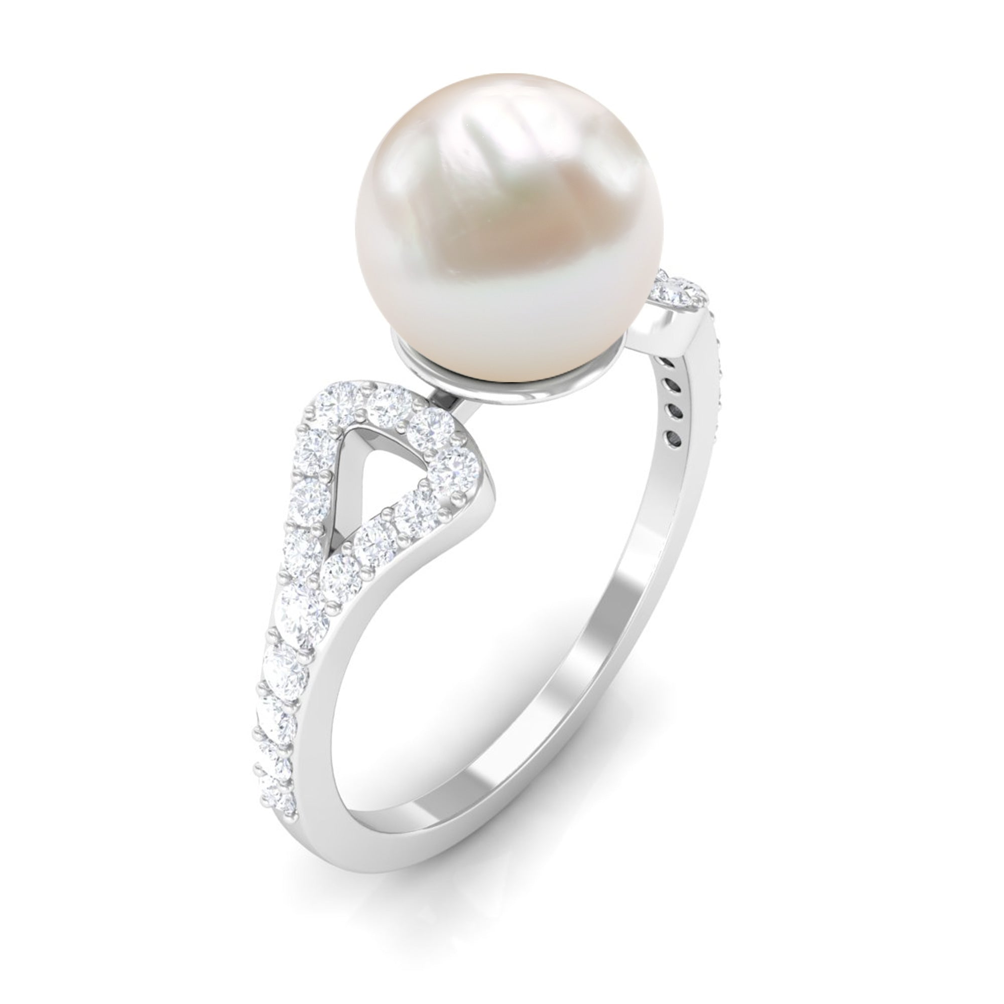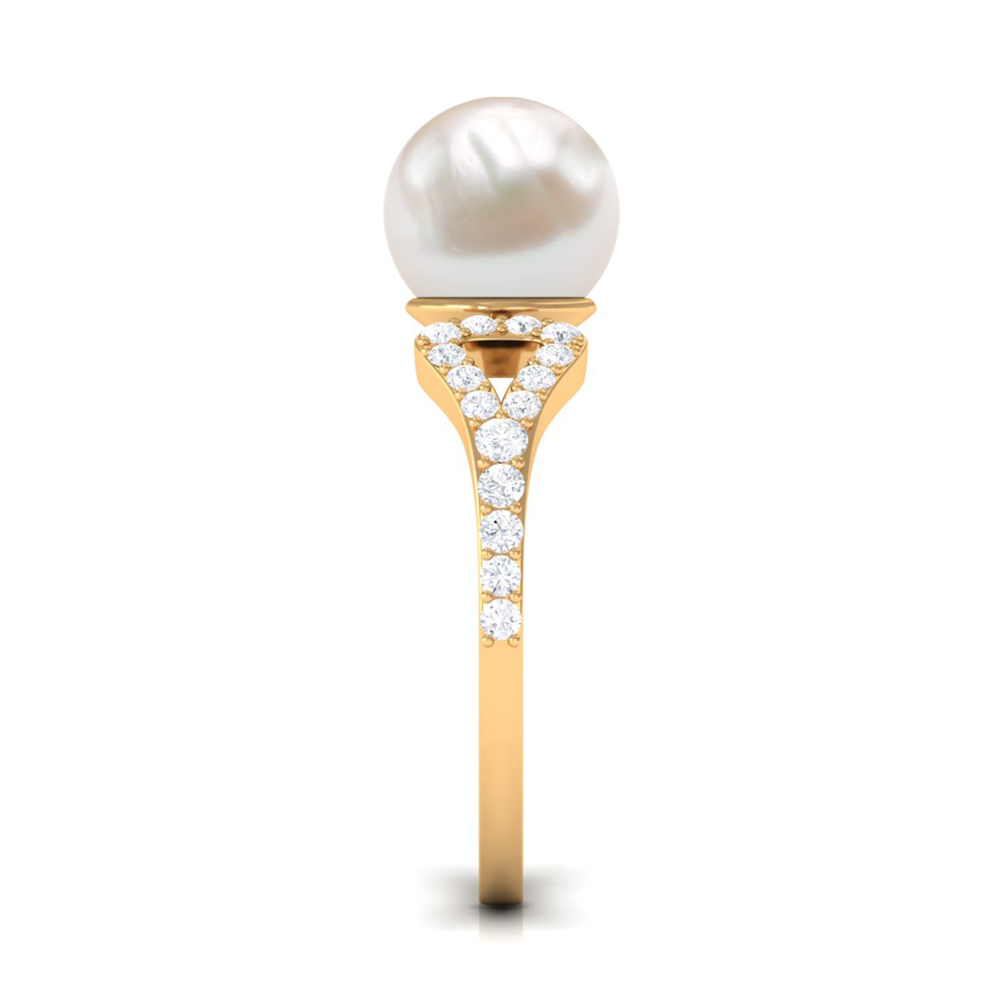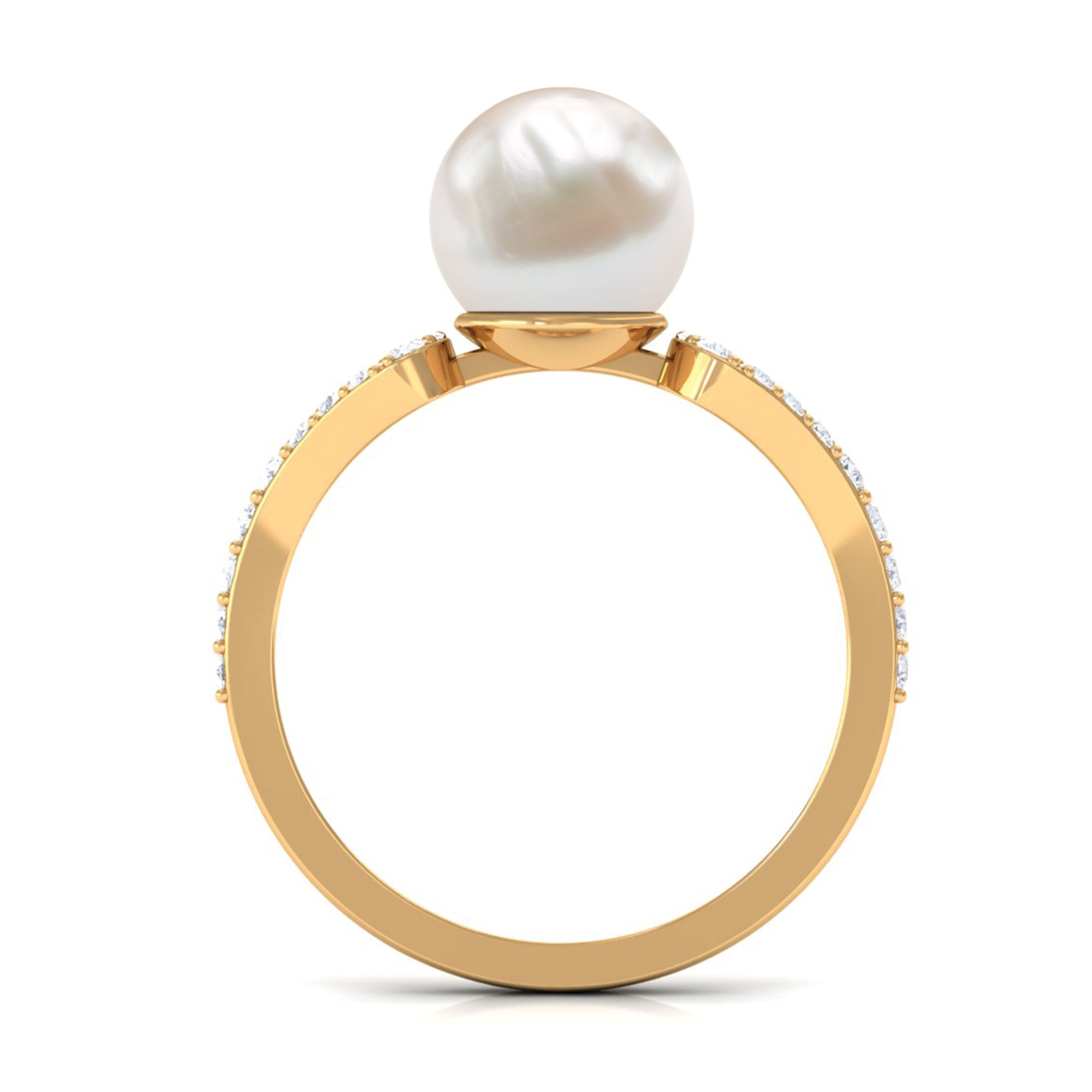 Round Freshwater Pearl Solitaire Engagement Ring with Diamond