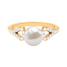 A classic piece with timeless appeal this Pearl Solitaire Engagement Ring is adorned with the brilliant Round Shape Freshwater Pearl with Round Diamond stones set as Side Stones on the designer shank. This Freshwater Pearl Ring is crafted in Gold. This charming Freshwater Pearl and Diamond Ring makes a trendy and elegant choice for your big day.