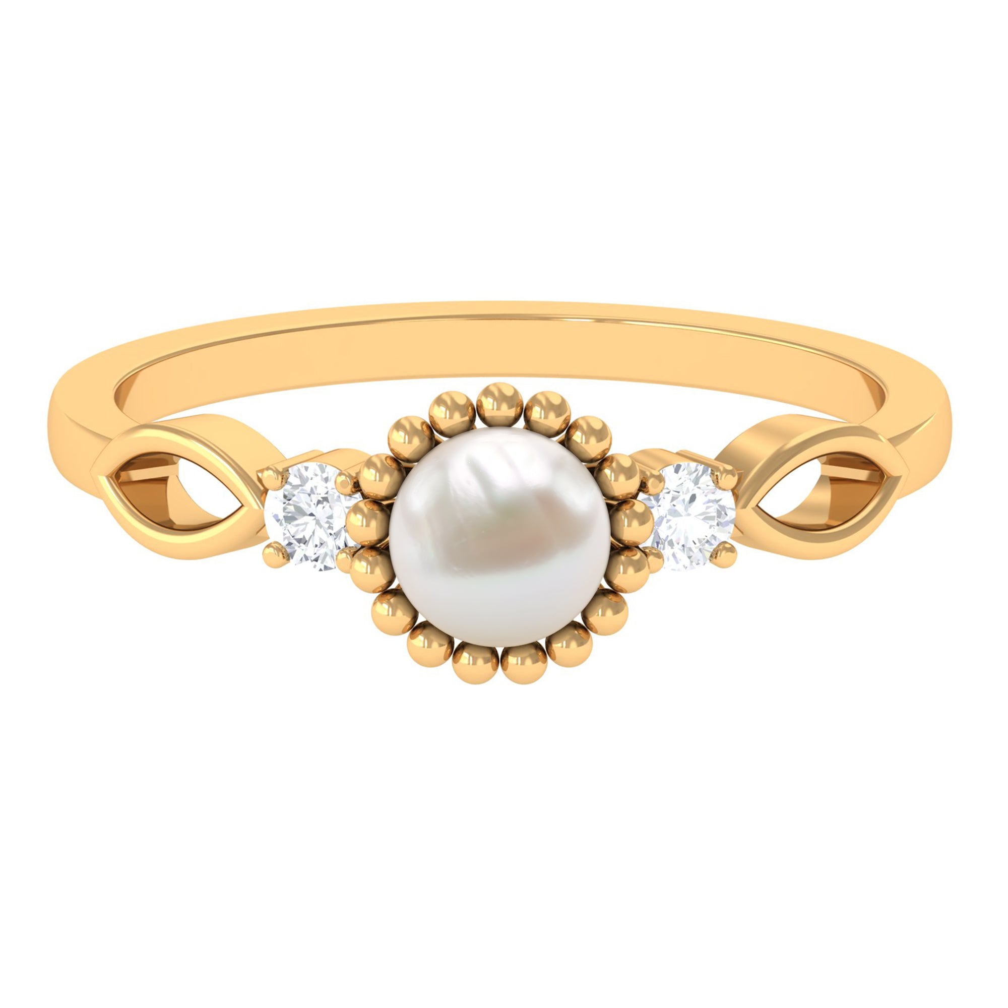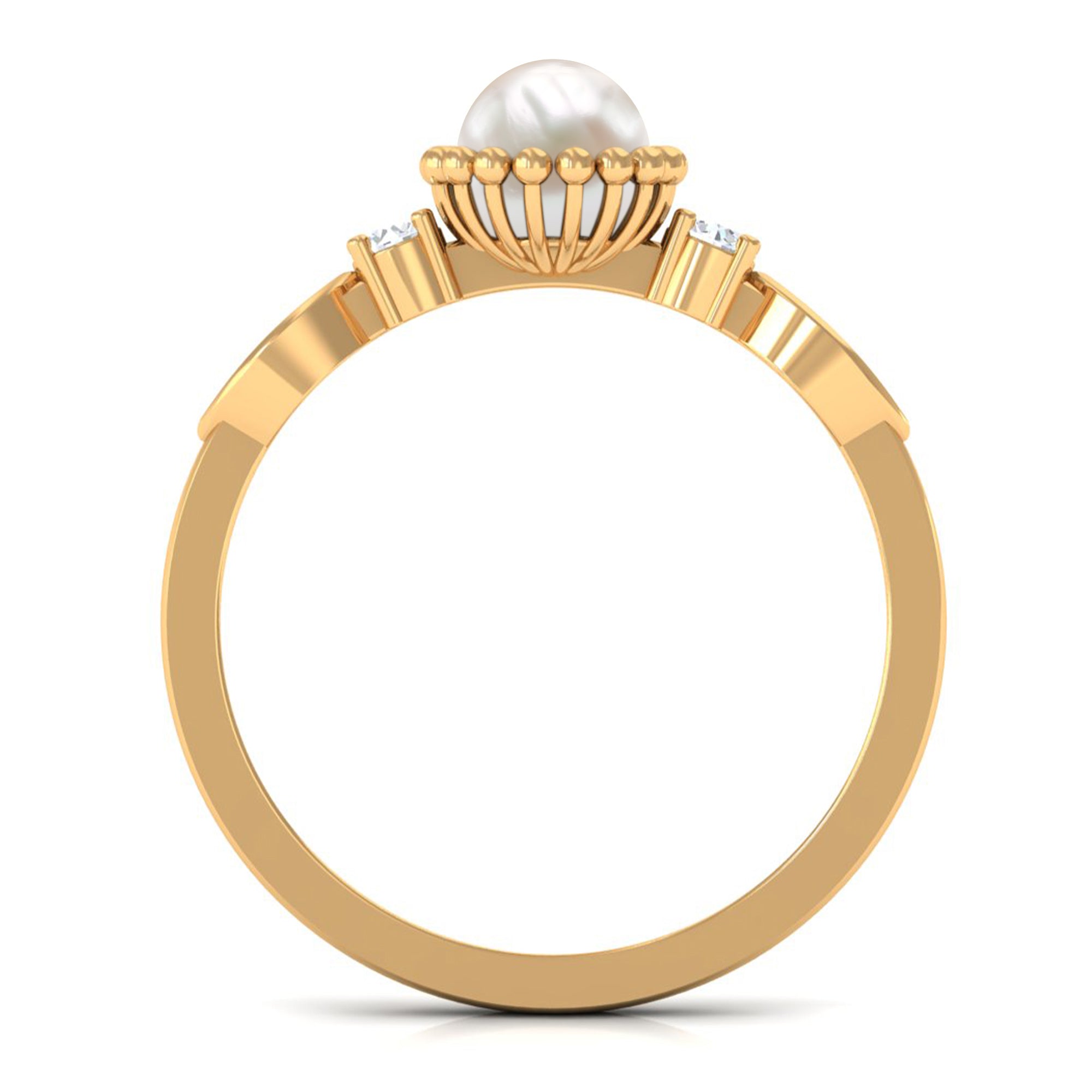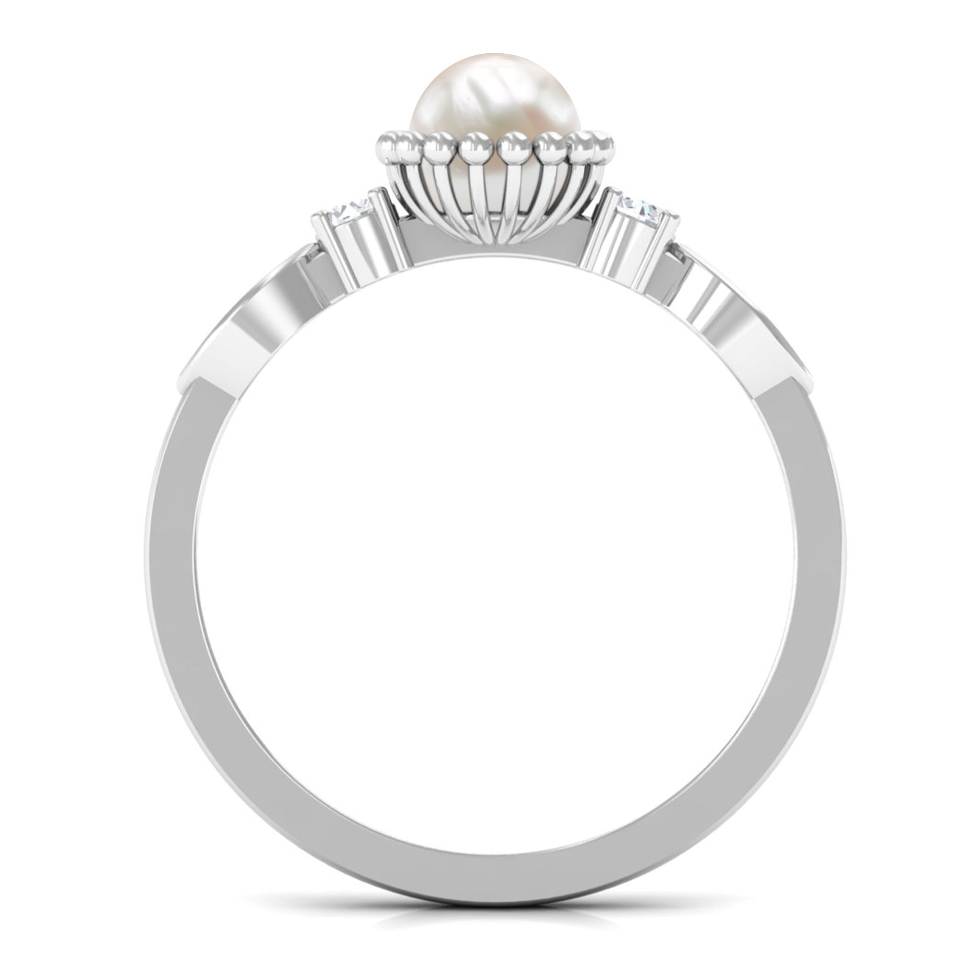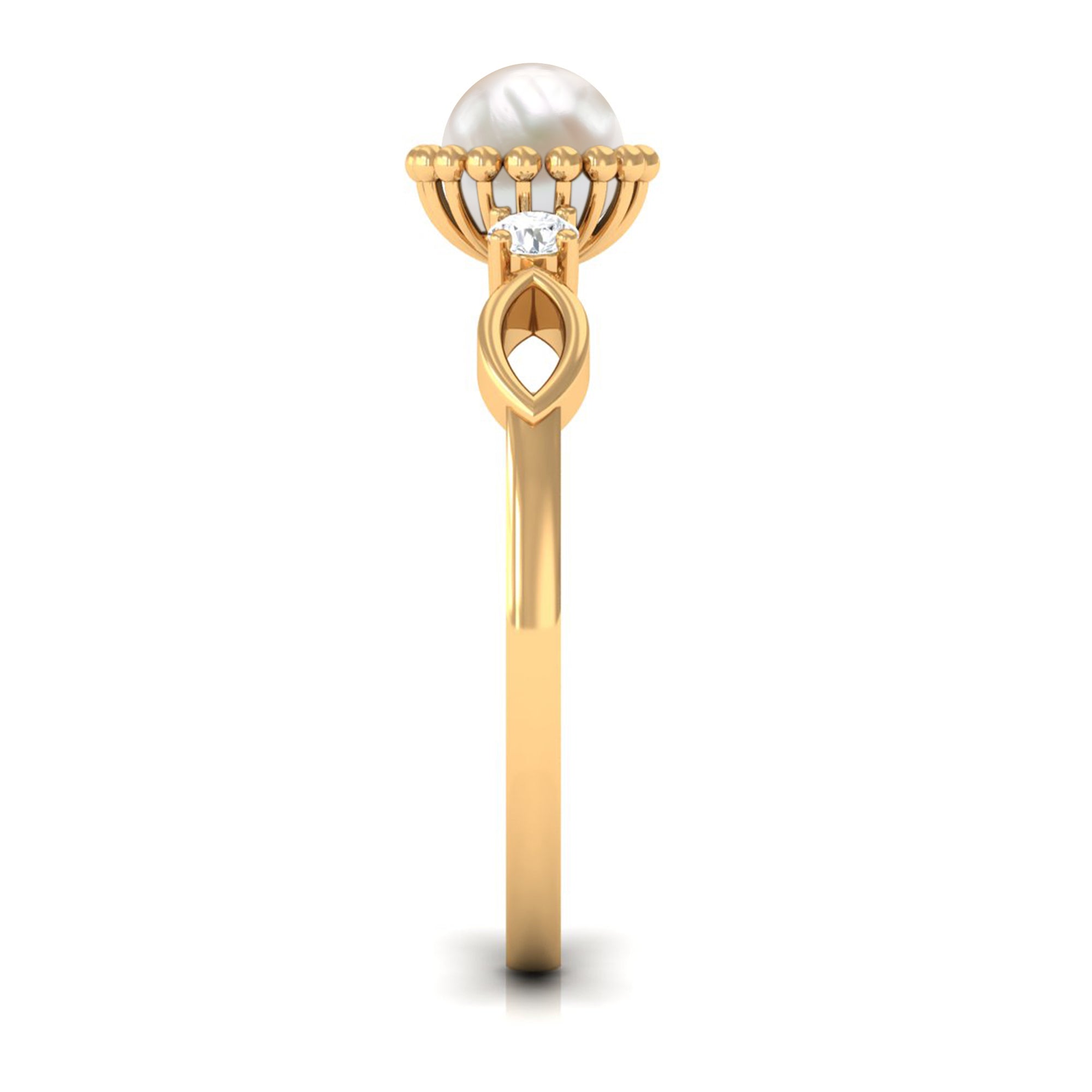 Round Freshwater Pearl Solitaire Ring with Diamond