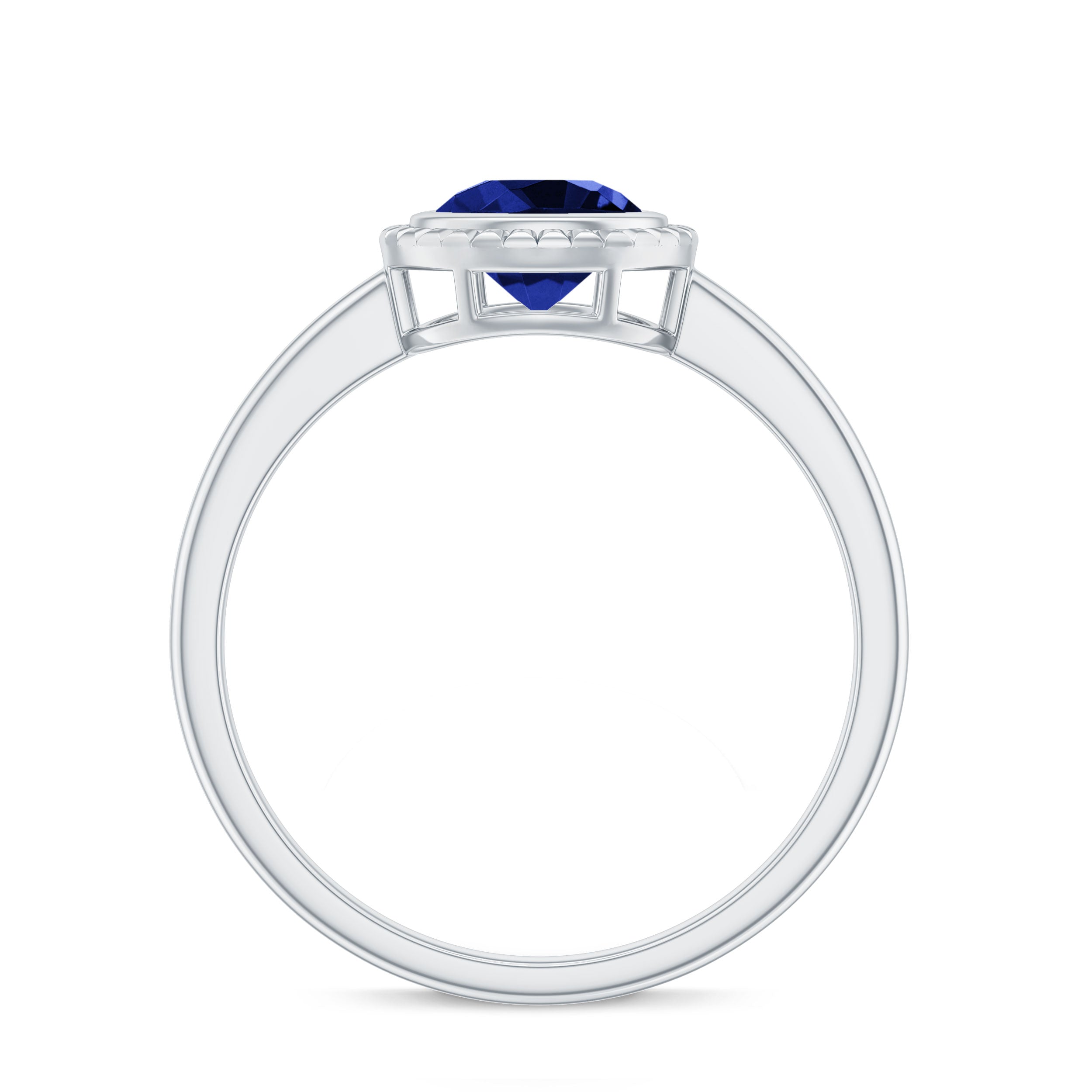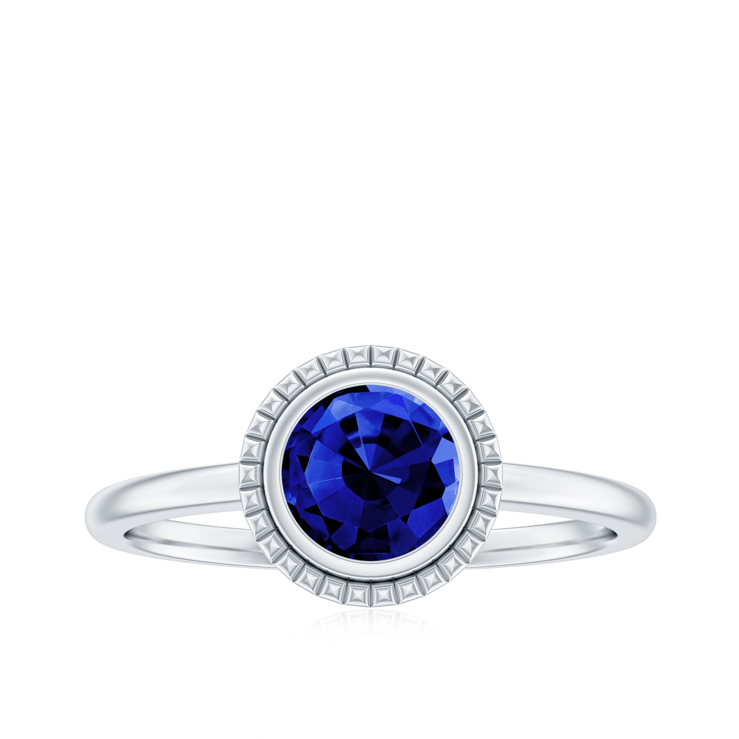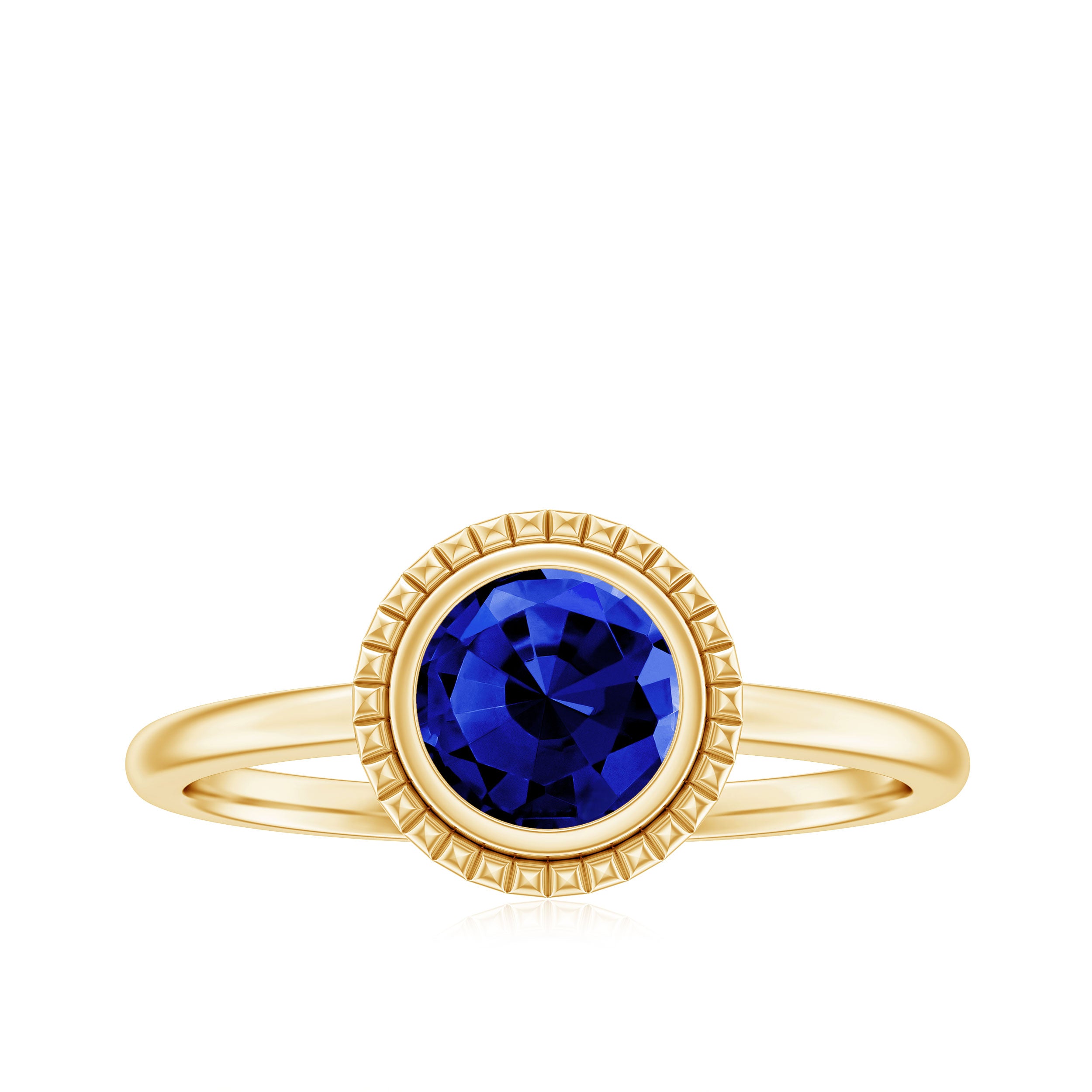 Round Lab-Created Blue Sapphire Solitaire Gold Ring in Bezel Setting