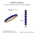 Presenting to you, a token of love as classic as your love story - our exquisite Created Blue Sapphire Eternity Ring! It features a continuous row of Round Shape Created Blue Sapphire gemstones elegantly showcased in a secure Trellis Setting. Whether paired with everyday outfits or formal attire, this Full Eternity Ring complements any look with grace and style. Each gemstone in this Certified Created Sapphire Ring boasts premium color and clarity grades, ensuring its enduring beauty, just like the everlasting love it represents.