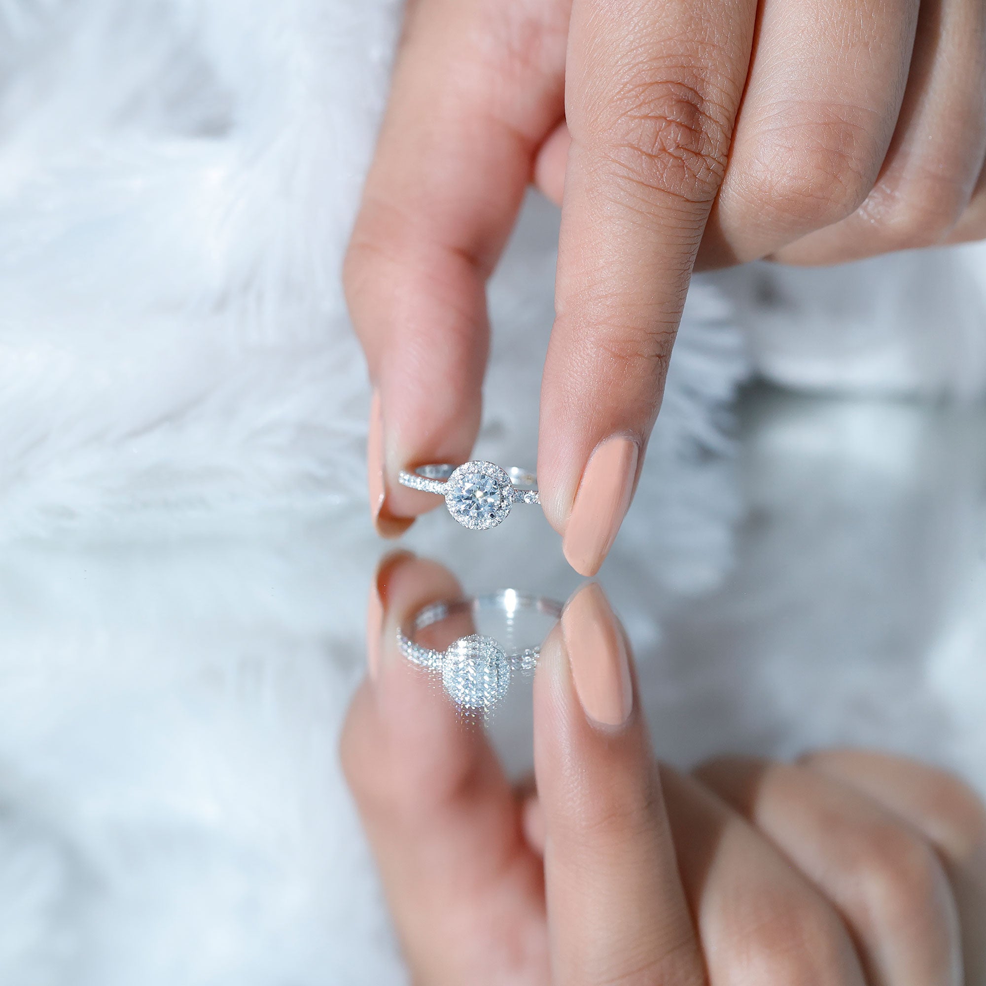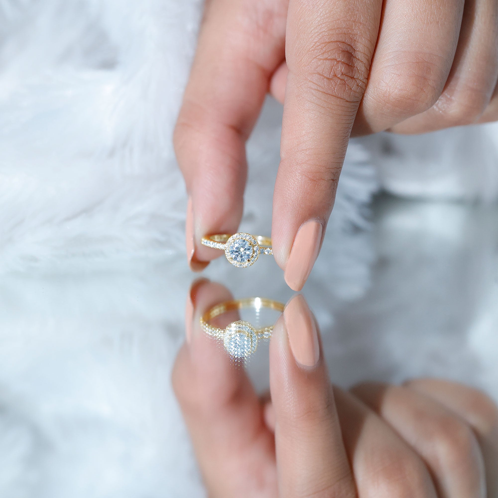 Capturing the essence of a heartfelt promise, this Promise Engagement Ring is a radiant symbol of commitment. This exquisite ring features a 5 MM Round Shape Lab Grown Diamond as a centerpiece, encircled by a shimmering Halo. Whether it marks the beginning of a lifelong journey or a significant milestone, this Simulated Diamond Engagement Ring is a cherished token of the love and dedication that bind two hearts together.