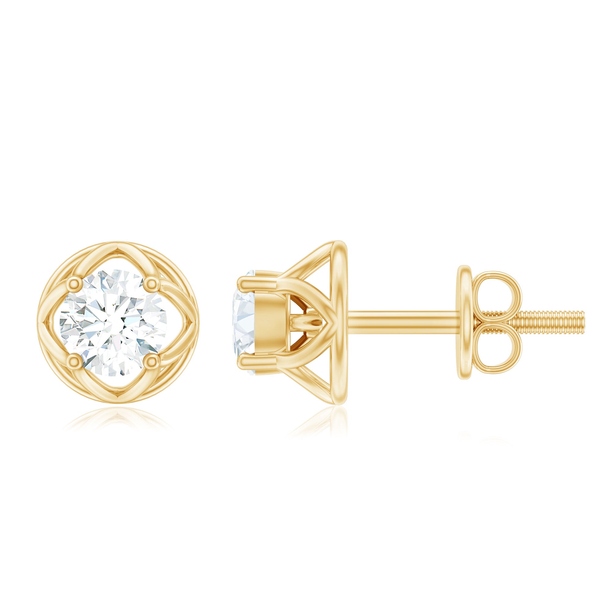 A delicate masterpiece of natures elegance, these Floral Stud Earrings feature a Round Shape Lab Grown Diamond set in Prong Setting. These Stud Earrings capture the timeless beauty of flowers, perfect for those seeking a touch of nature-inspired charm. Whether worn casually or on special occasions, these earrings add a captivating flourish to your style.