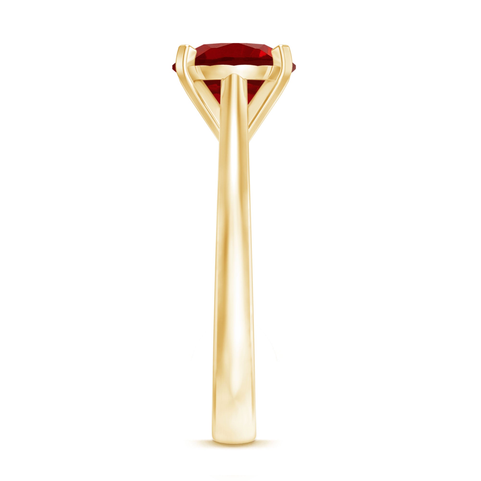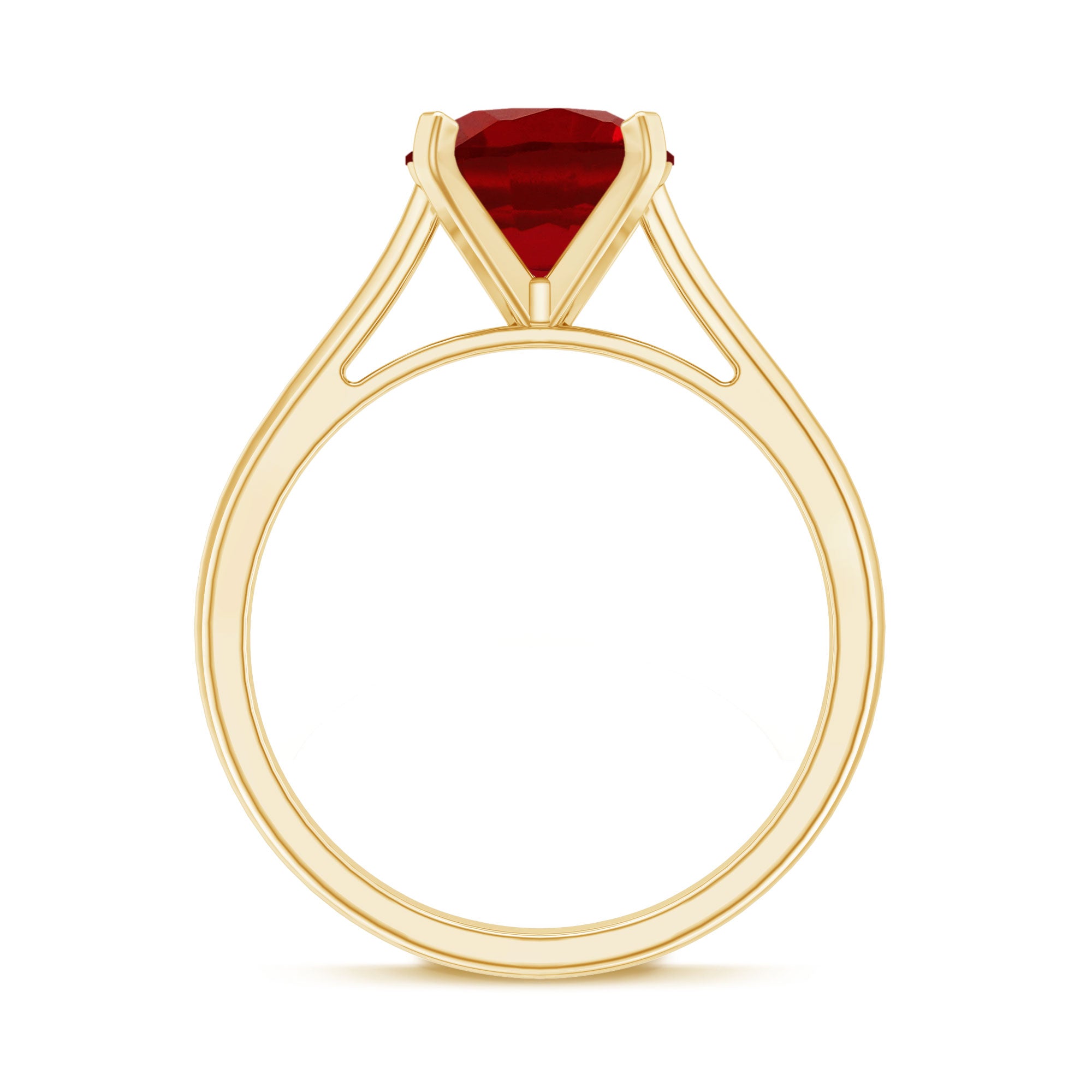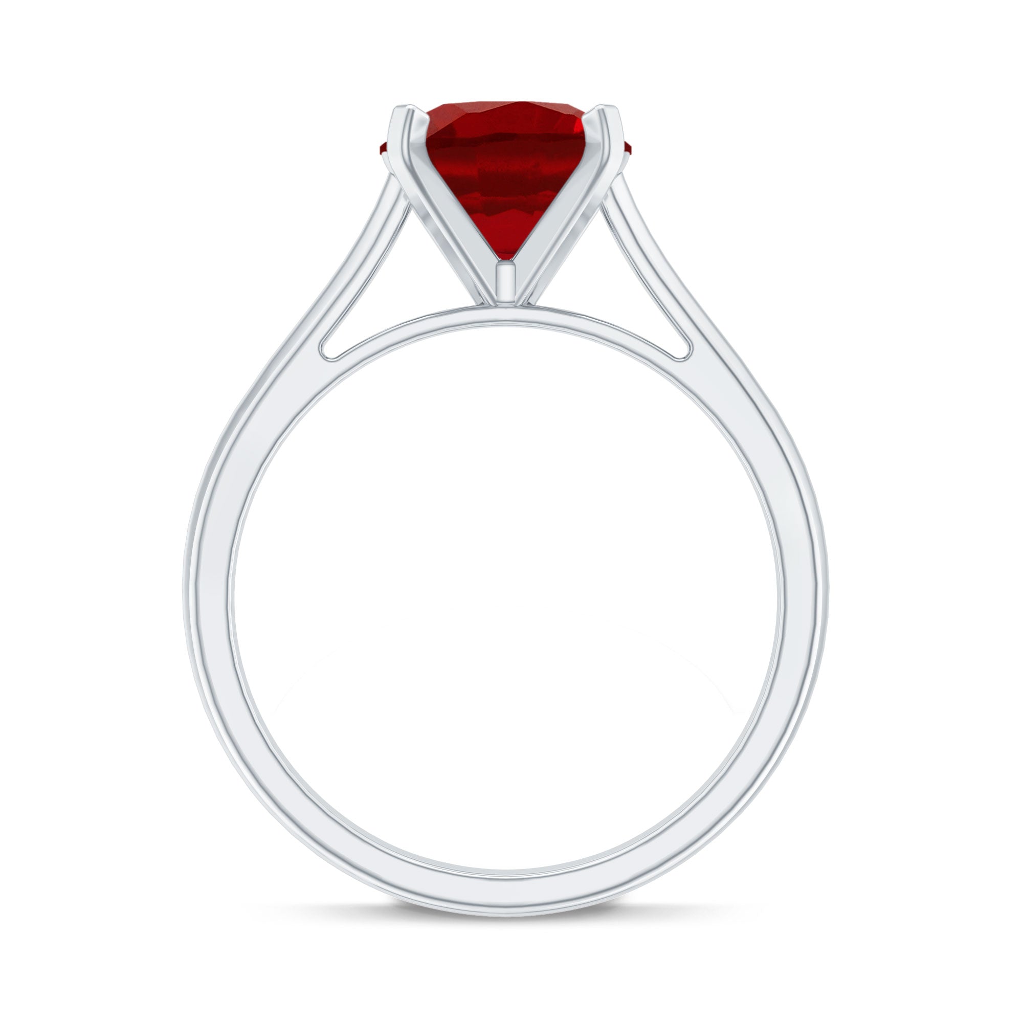 Discover the beauty of the extraordinary with this stunning Solitaire Ring. Adorned with a Round Lab Grown Ruby Gemstone, it graces the Cathedral-style shank with elegance. This Created Ruby ring, ideal for womens work wear.