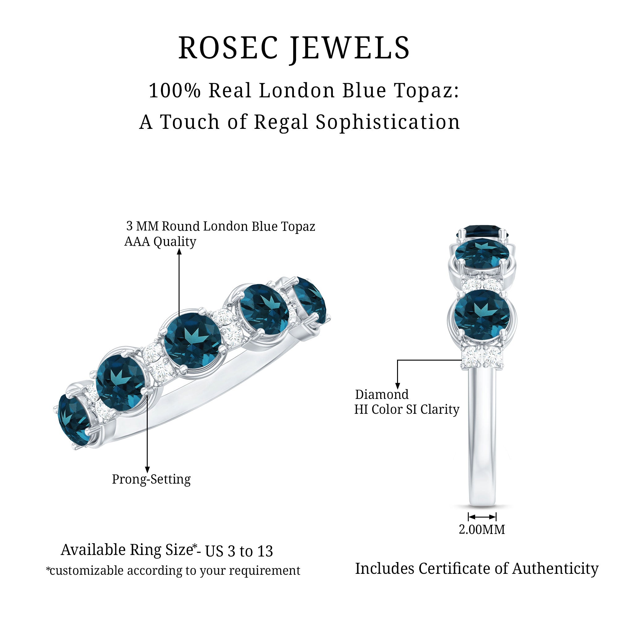 When love manifests, it frequently takes the shape of hearts, and this London Blue Topaz Ring beautifully encapsulates that sentiment. Meticulously crafted with round shape London Blue Topaz stones and diamond-embellished in alternate design, this ring narrates a tale of romance, connection, and enduring elegance. The alternating arrangement of deep blue topaz and shimmering diamonds produces a striking contrast, imparting the Blue Topaz Wedding Band with a bold yet refined appearance. Each gemstone is securely set in prongs, enabling light to reflect from every angle. The band serve a purpose beyond mere aesthetics; they represent a love that remains steadfast, making this an ideal gift for Valentine’s Day, anniversaries, or any significant occasion with your beloved. Whether worn alone or layered with other cherished pieces, this Half Eternity Ring enhances any ensemble. Crafted with precision and care, the Wedding Anniversary Band is accompanied by a certificate of authenticity, ensuring the quality of the blue topaz and diamonds. It arrives in a signature jewelry box, designed to contain not only the ring but also the emotions and memories it embodies.