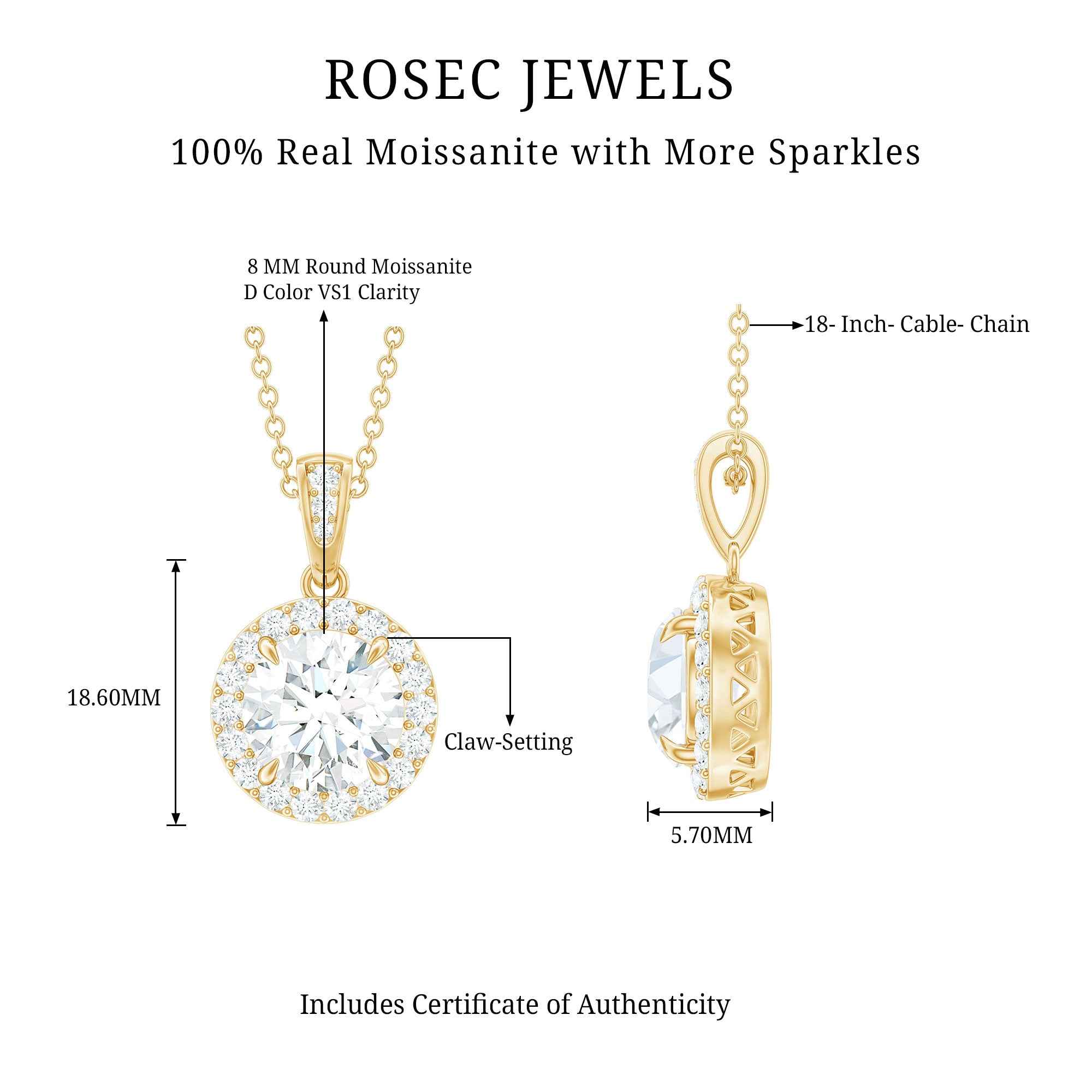 Enhance your style with the exquisite Halo Pendant Necklace featuring a brilliant Round Cut Moissanite delicately held in a Claw Setting, embraced by a shimmering Halo of Round Cut dainty Moissanite stones. The bail is also adorned with round moissanite stones, adding an extra touch of elegance. Whether you choose to wear it with casual or dressy attire, this Moissanite Pendant promises to make you stand out from the crowd with its undeniable allure.