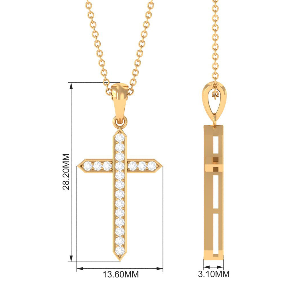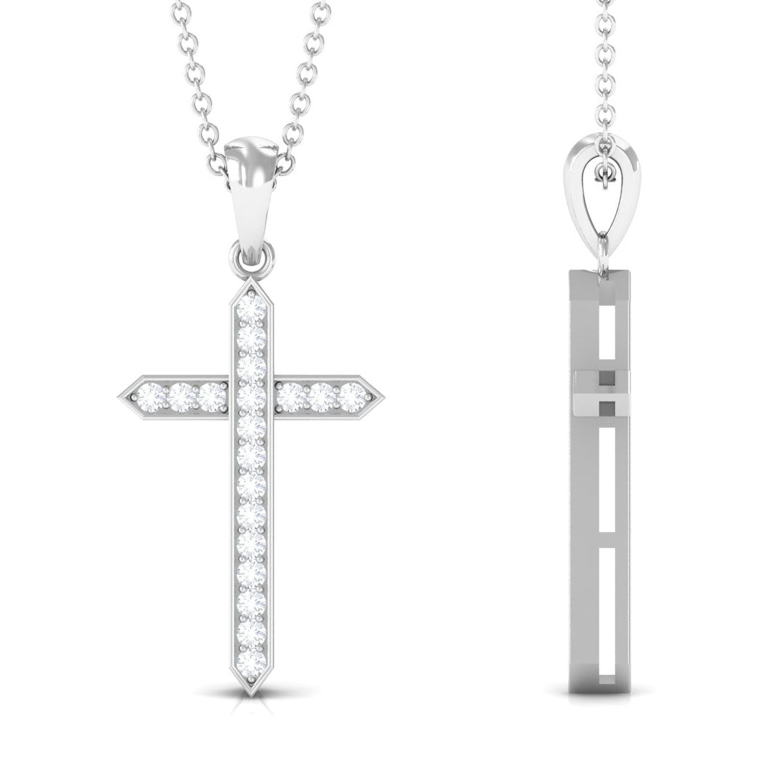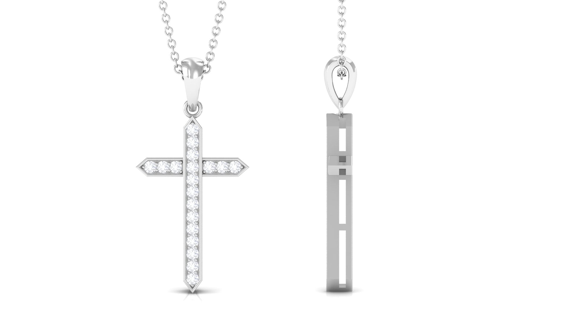 Elevate your faith and style with this stunning Certified Moissanite Cross Pendant Necklace. The cross pendant features a row of sparkling moissanite gemstones making a cross sign. This stunning pendant necklace comes in a pinpoint setting. This necklace is perfect for everyday wear or for special occasions. It is also a thoughtful gift for loved ones of all ages.