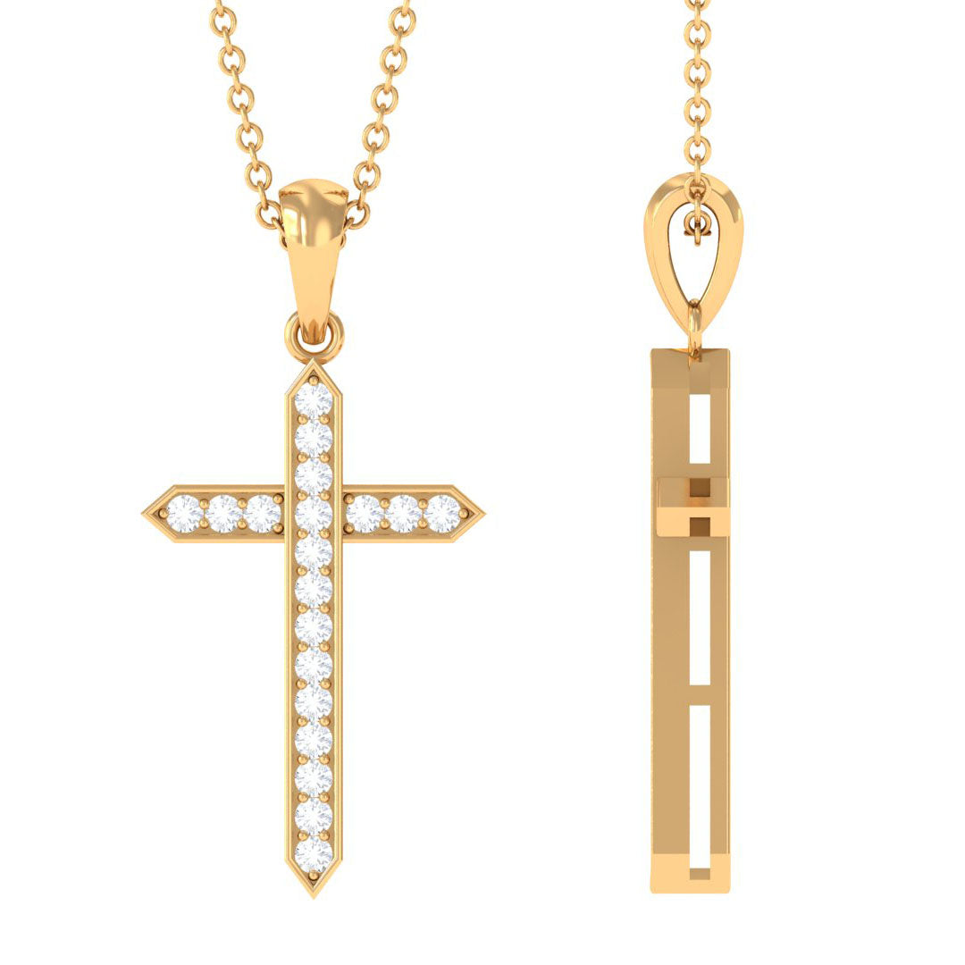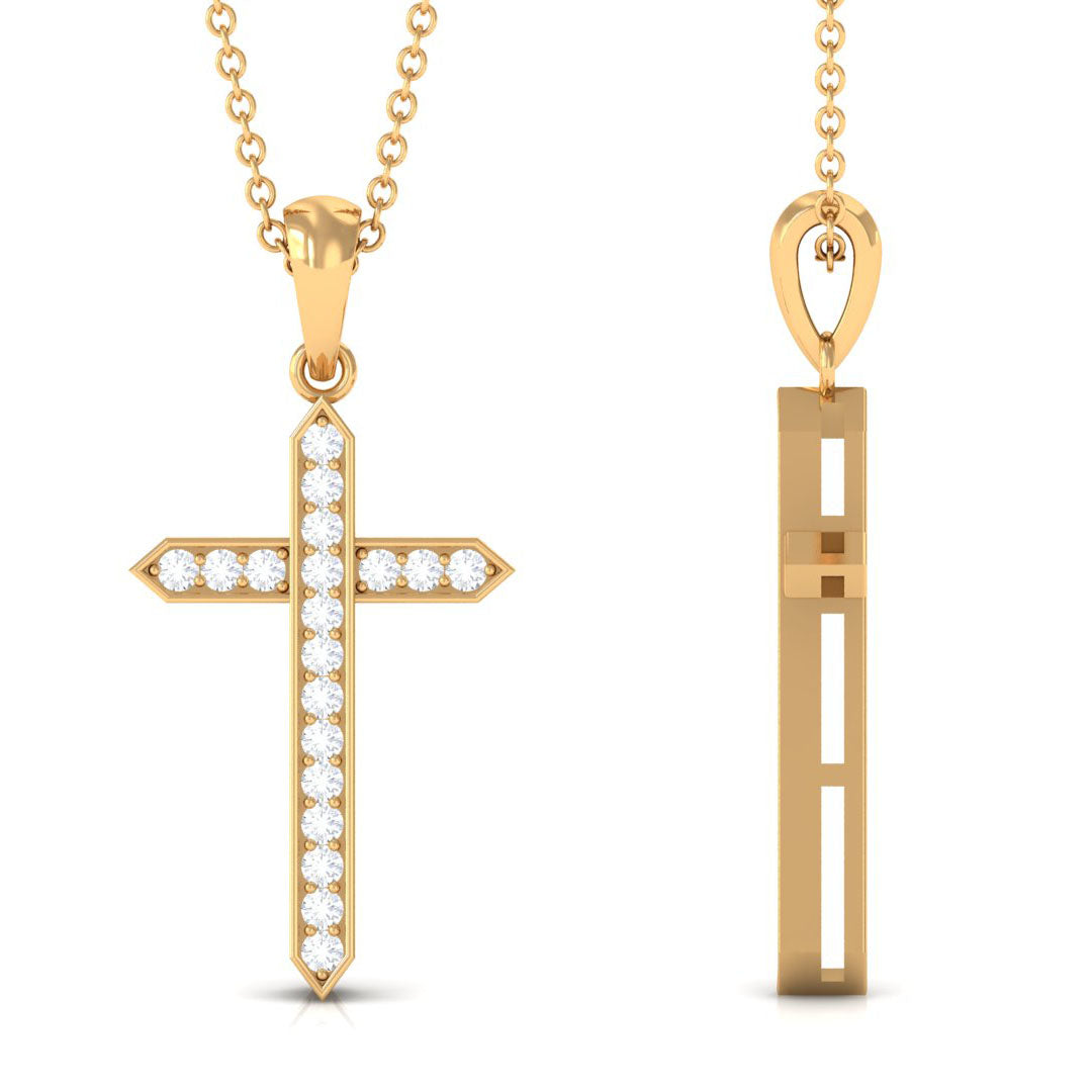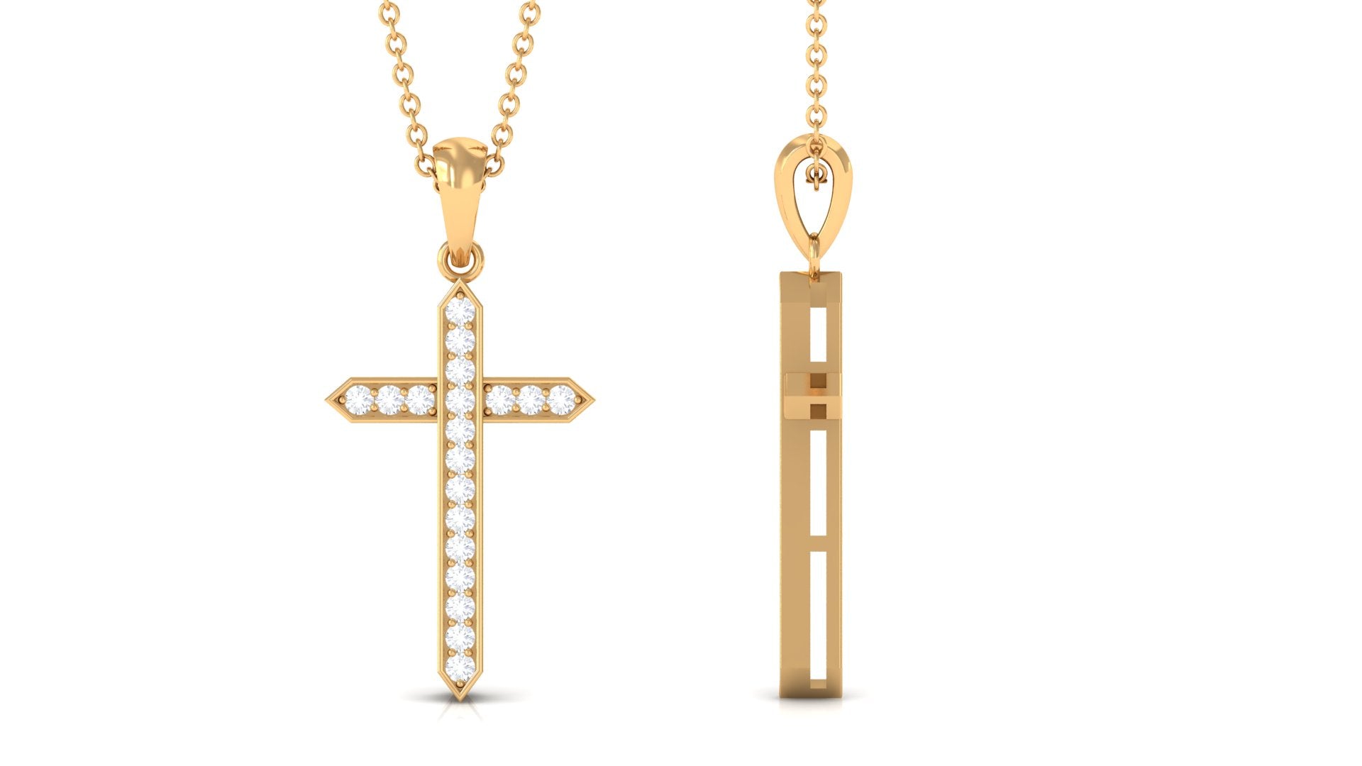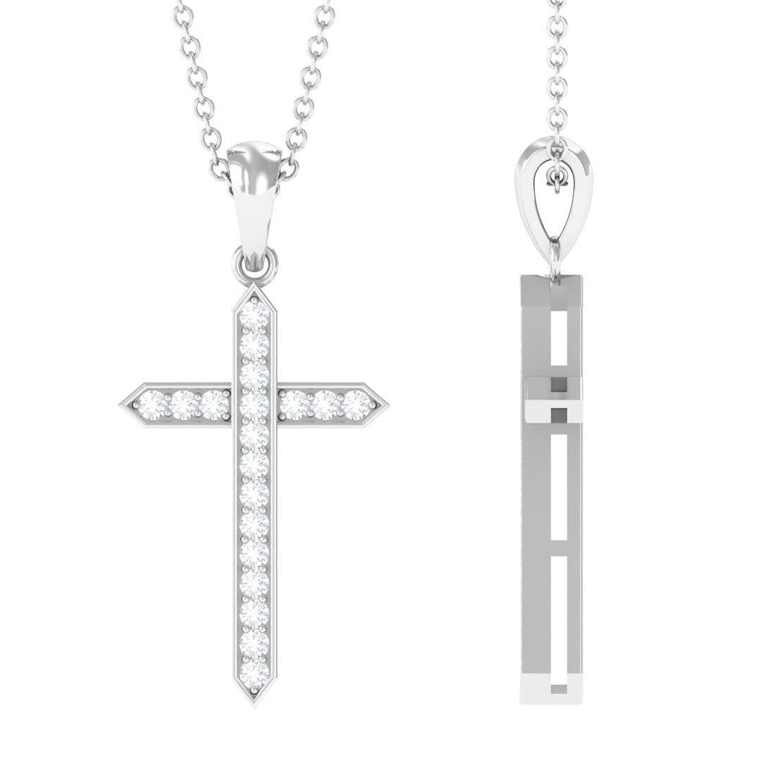 Elevate your faith and style with this stunning Certified Moissanite Cross Pendant Necklace. The cross pendant features a row of sparkling moissanite gemstones making a cross sign. This stunning pendant necklace comes in a pinpoint setting. This necklace is perfect for everyday wear or for special occasions. It is also a thoughtful gift for loved ones of all ages.