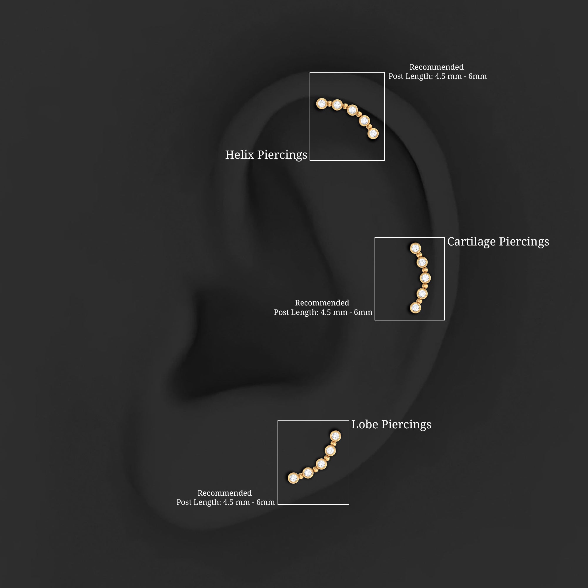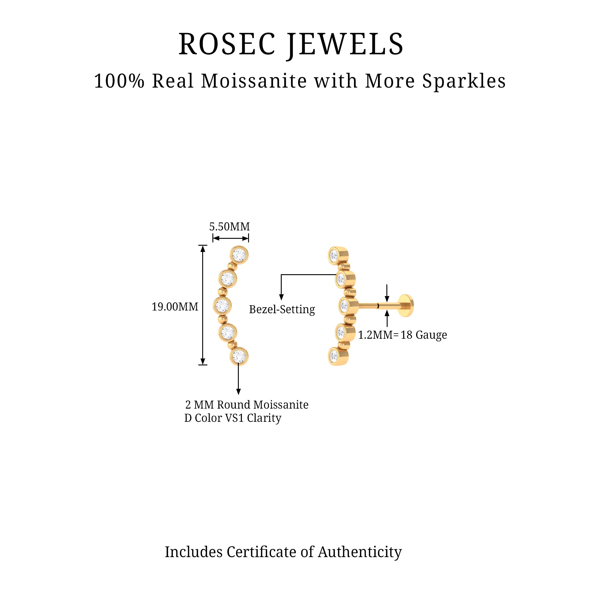 Make a fashion statement with this trendy Moissanite Crawler Earring, blending minimalism and style. Featuring round cut moissanites that dazzle in a secure bezel setting, accented by gold beads for an elegant touch. This cartilage earring exudes sophistication, perfect for adding a chic and classy touch to any occasion. Mesmerize those around you with its charm and allure.