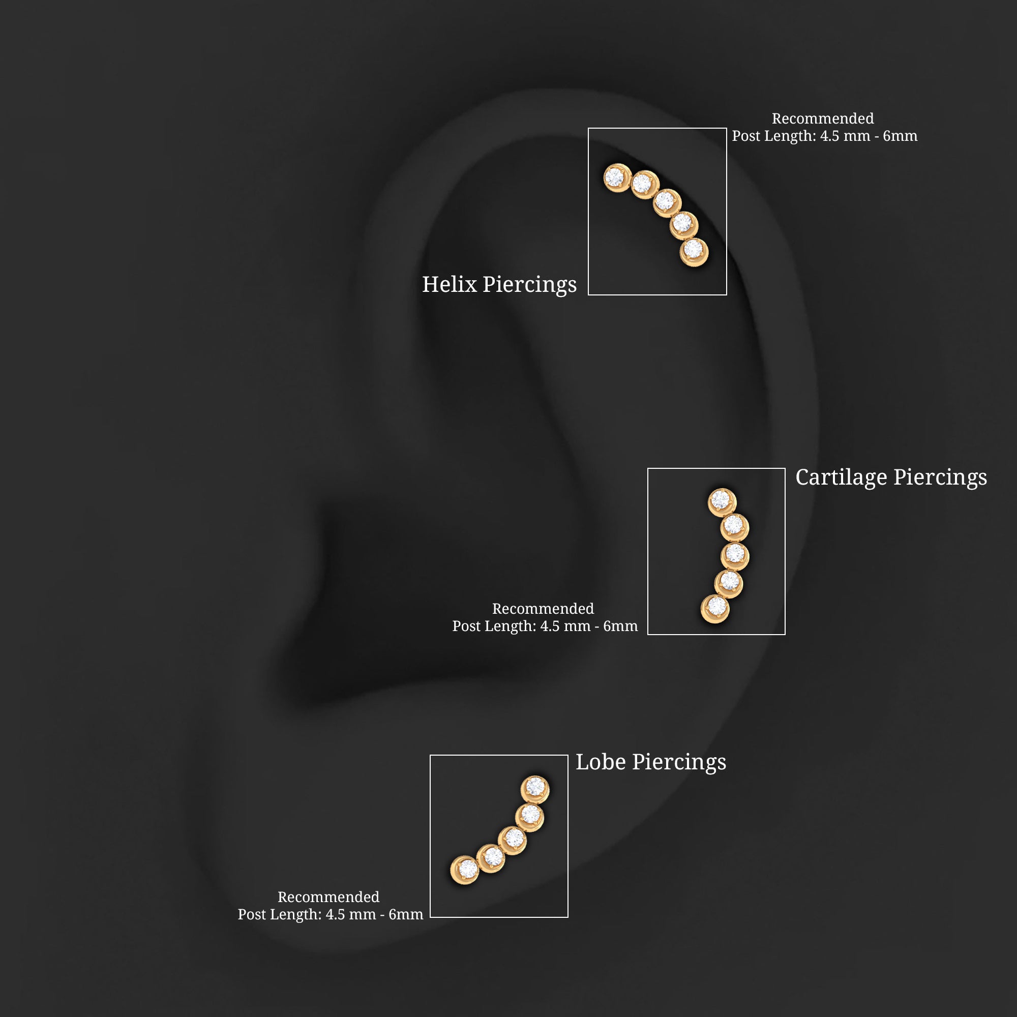 Round Moissanite Gold Crawler Earring for Helix Piercing