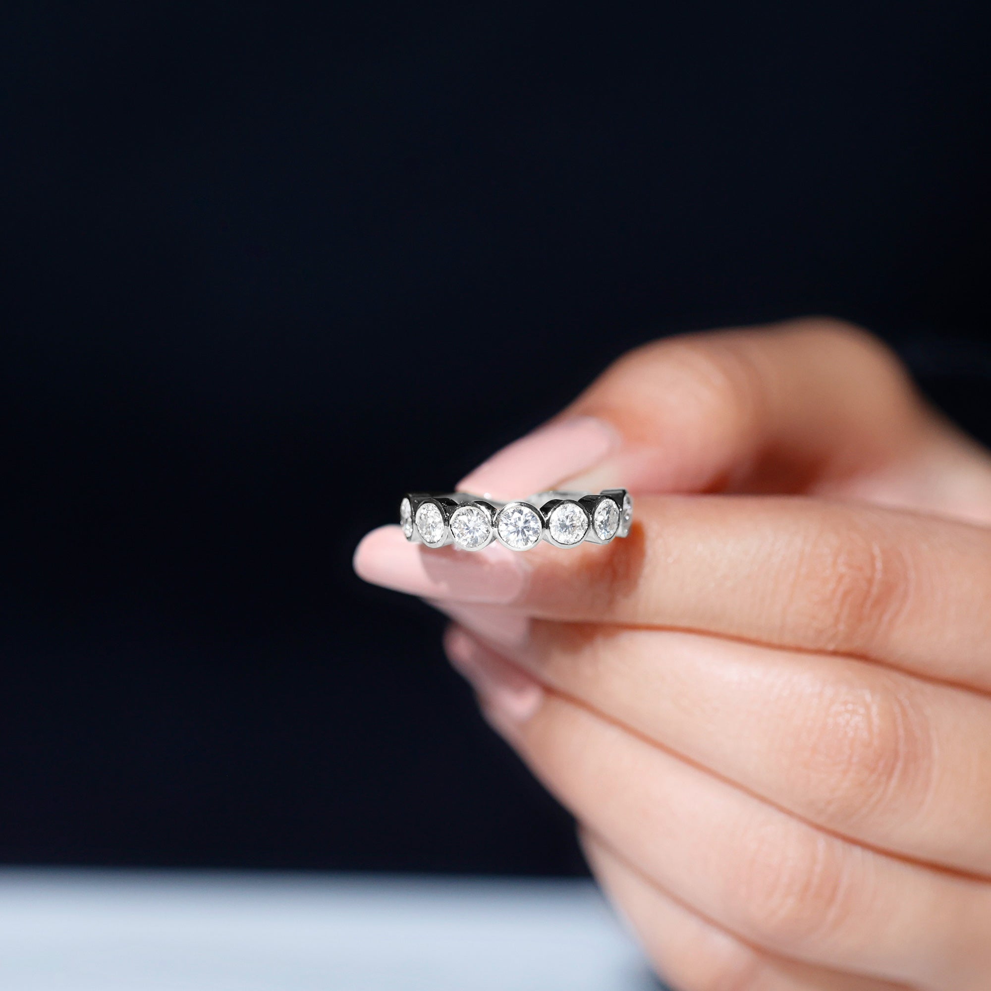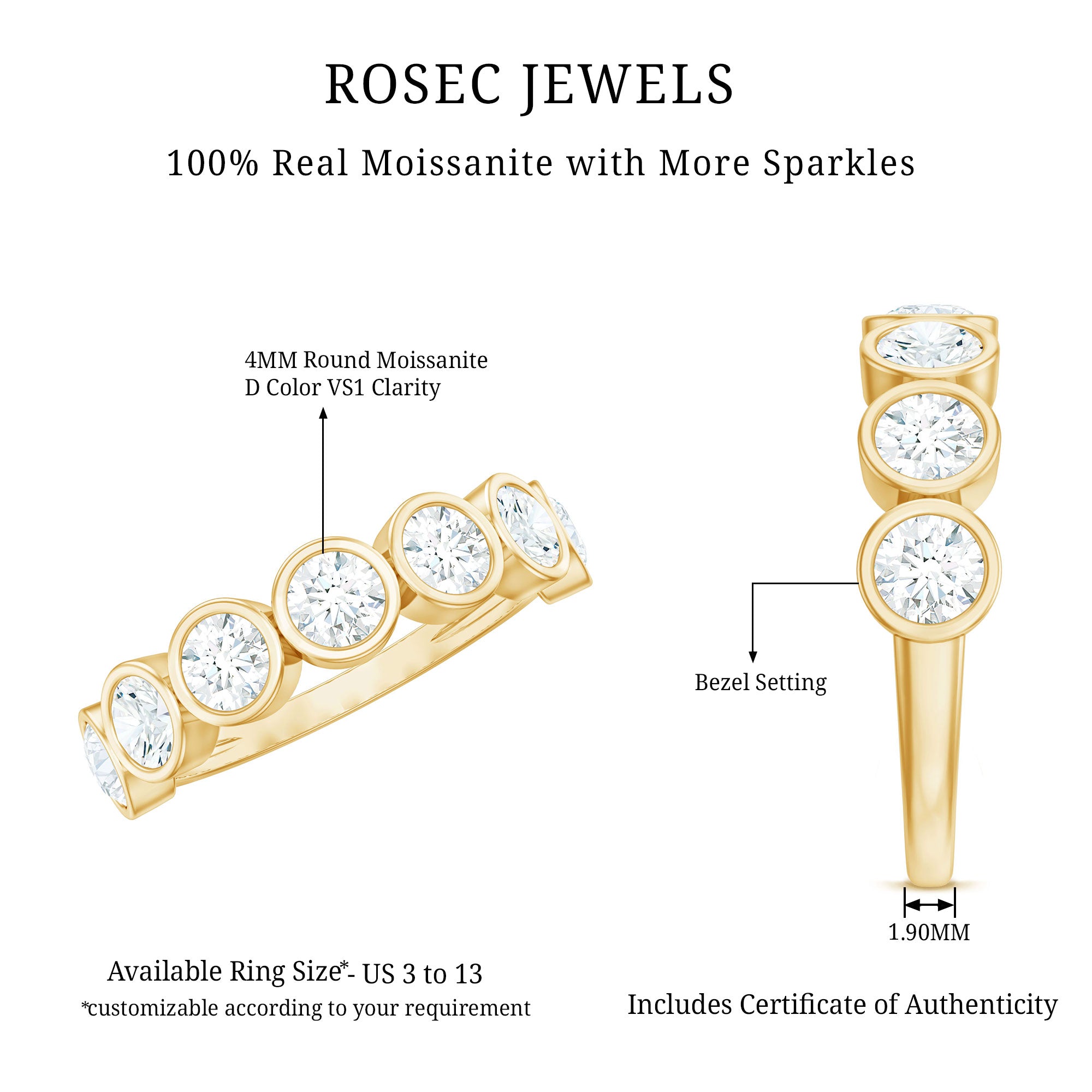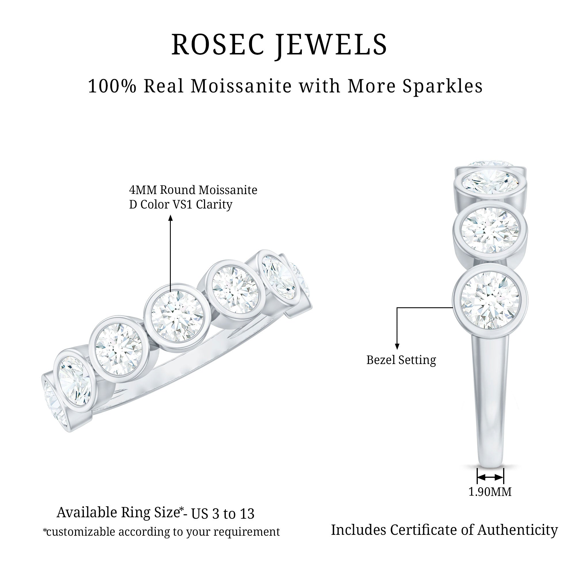 Round Moissanite Half Eternity Ring in Bezel Setting