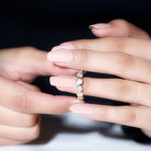 This Half Eternity Ring features a row of seven dazzling Round Moissanite stones, each securely nestled in sleek Bezel Setting. These sparkling gems gracefully line half of the band, offering a contemporary and stylish design thats both eye-catching and versatile. Whether worn alone or paired with another ring, this Moissanite Half Eternity Ring adds a touch of elegance and sophistication to your jewelry collection, making it a perfect choice for any occasion.