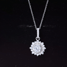 Embrace the celestial allure of our halo pendant, where round moissanite stones of varied sizes come together in a captivating twist. The central round moissanite is beautifully accentuated by intricate beaded metal detailing, while an outer moissanite halo adds maximum sparkle. The pendant is elegantly linked to a bale adorned with round moissanite stones.