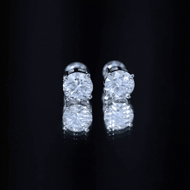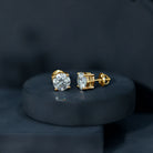 A Beautiful and Unique Solitaire Moissanite Stud earrings is embellished with Round Shape Moissanite. The gemstone is studded as a Single Stone in a 4 Claw Prong Setting. Screw Back Finding feature makes this pair of Stud earrings more Stunning.