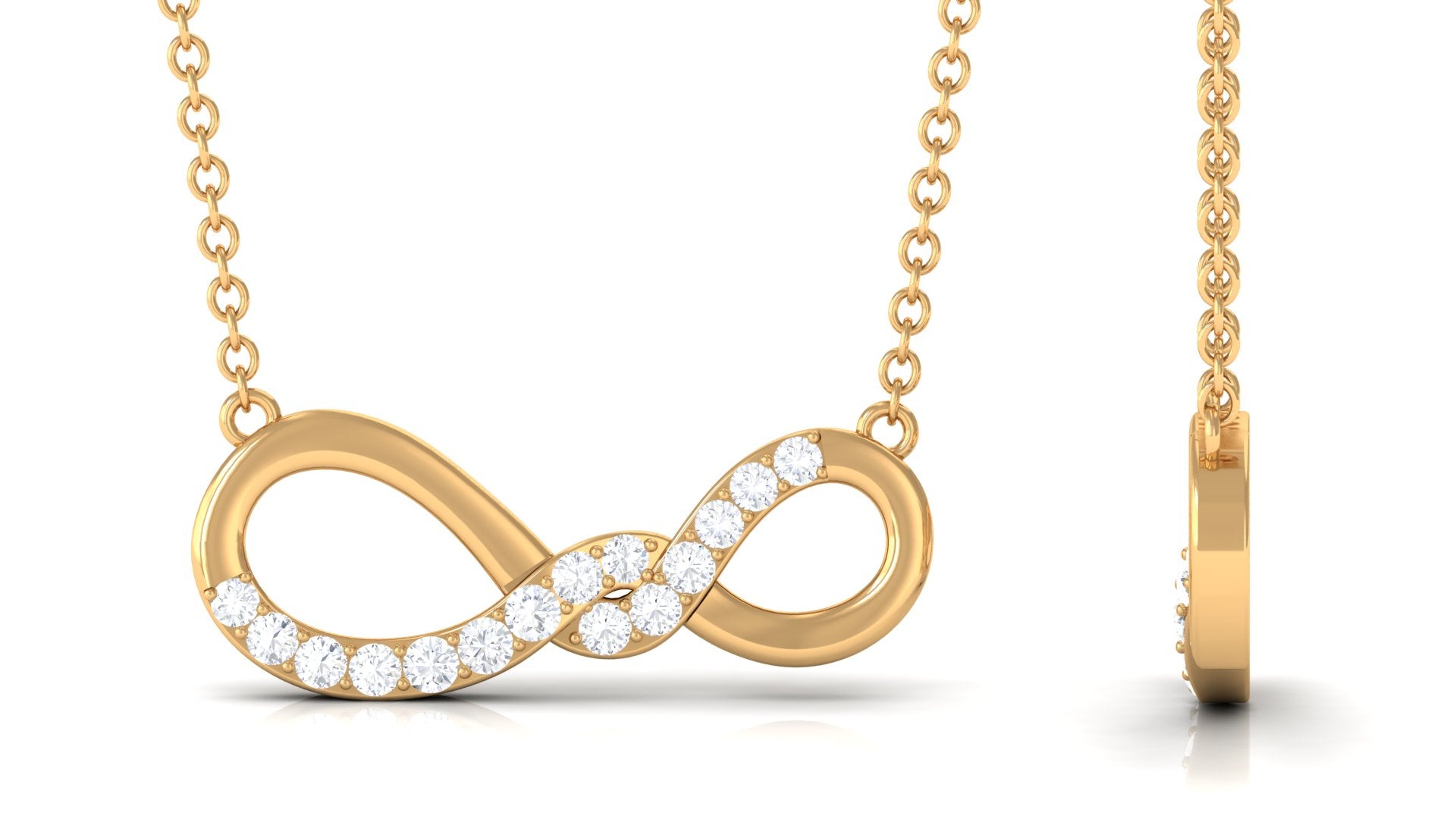 Unleash your inner goddess with this moissanite twisted necklace. This stunning necklace features dazzling round moissanite gemstones set in a twisted pave setting, creating a mesmerizing display of light and sparkle. The twisted design adds a touch of edgy sophistication, while the pave setting ensures that the moissanite gemstone shines brightly. Whether youre dressing up for a night out or simply want to add a touch of luxury to your everyday look, this is the perfect accessory.