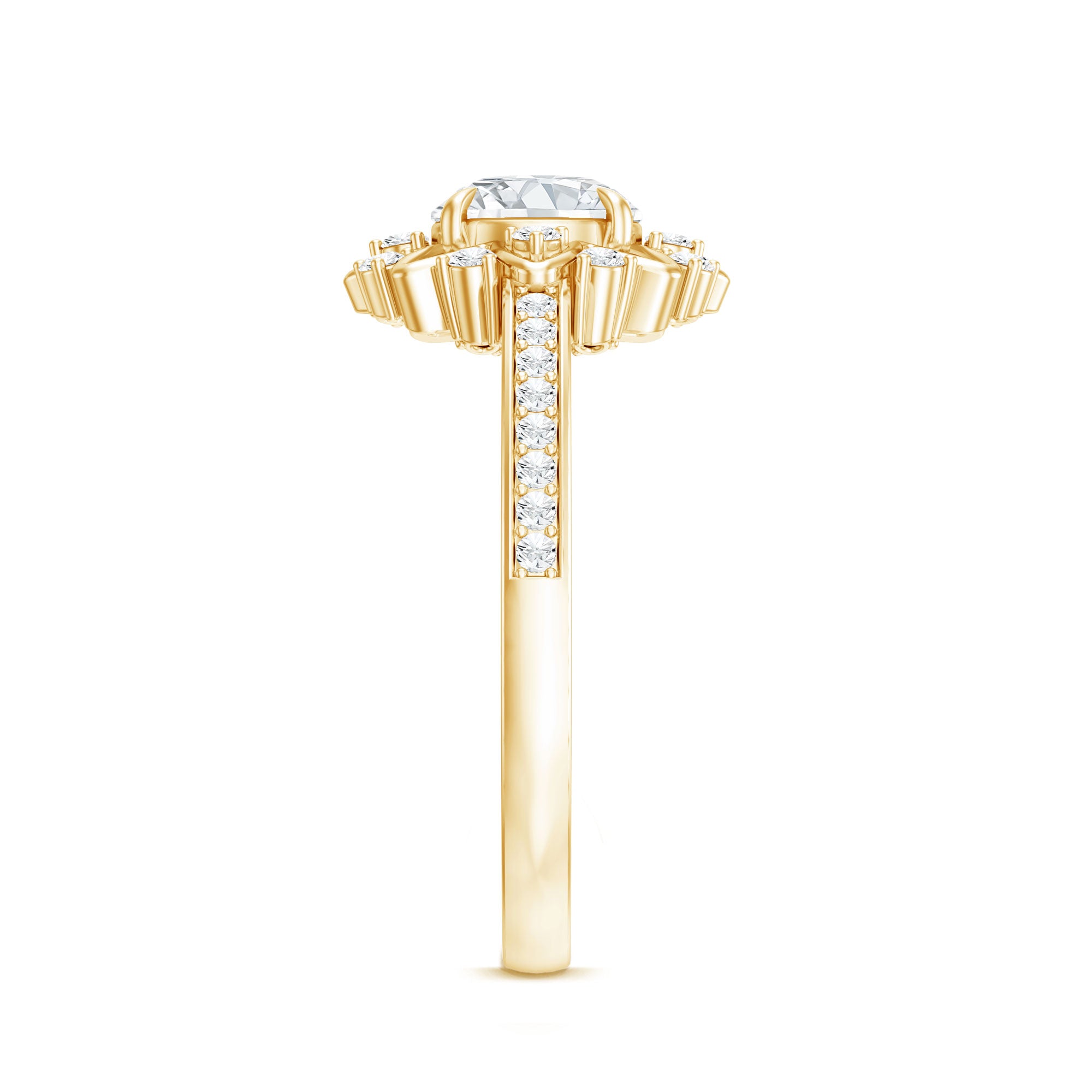 Inspired by the natural beauty of a blooming flower, this Moissanite Engagement Ring is designed to make love blossom with every glance. At the center sits a brilliant 6 MM round cut D-VS1 quality moissanite, held securely in claw setting. Surrounding the center stone is a stunning flower halo, made of smaller round moissanites, carefully arranged to mimic delicate petals. The artistic design adds shine and a romantic touch, making the Flower Engagement Ring feel truly one of a kind. Adding even more sparkle, moissanite side stones line the band, enhancing the overall brilliance. The slim band keeps the focus on the intricate flower design, while offering comfort and beauty from every angle. Perfect for engagements, proposals, or meaningful moments, the Moissanite Flower Ring symbolizes new beginnings, love, and growth. It is ideal for anyone who appreciates feminine style with a touch of nature-inspired charm. Made with care and D-VS1 quality moissanites, it offers a timeless look that is both ethical and stunning. Each piece arrives in a luxury jewelry box, ready to surprise and delight on any special occasion.