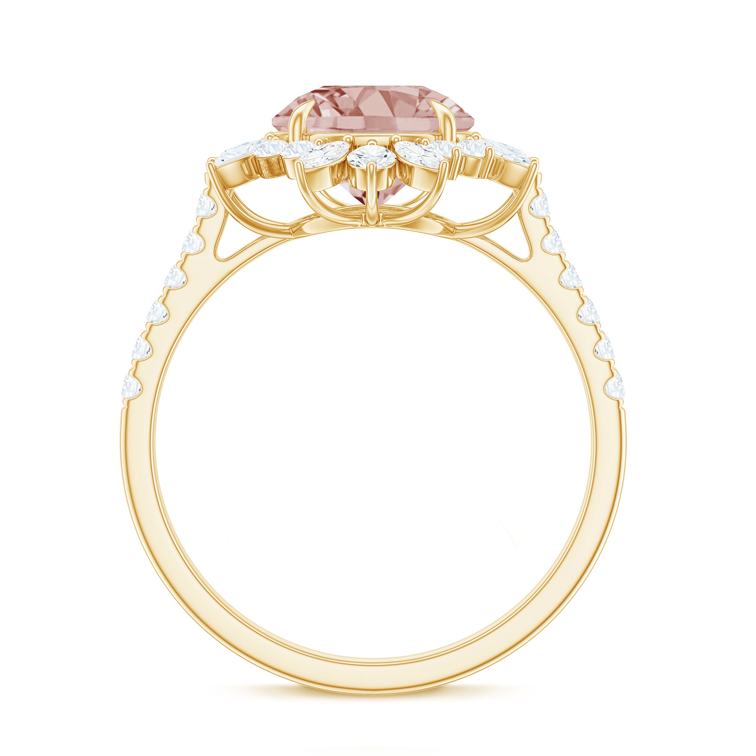 Round Morganite Statement Engagement Ring with Moissanite Floral Halo