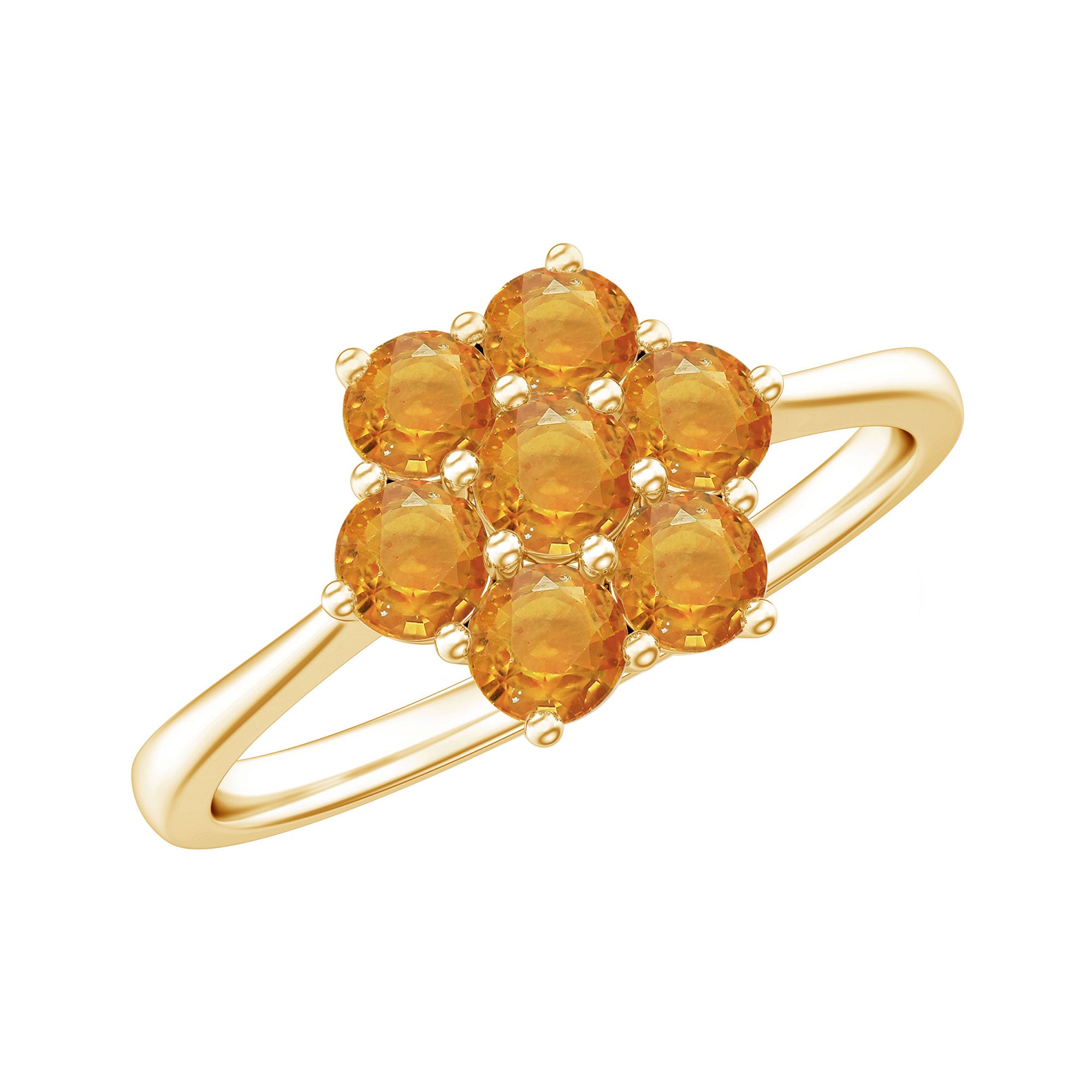 Round Orange Sapphire Flower Cluster Engagement Ring