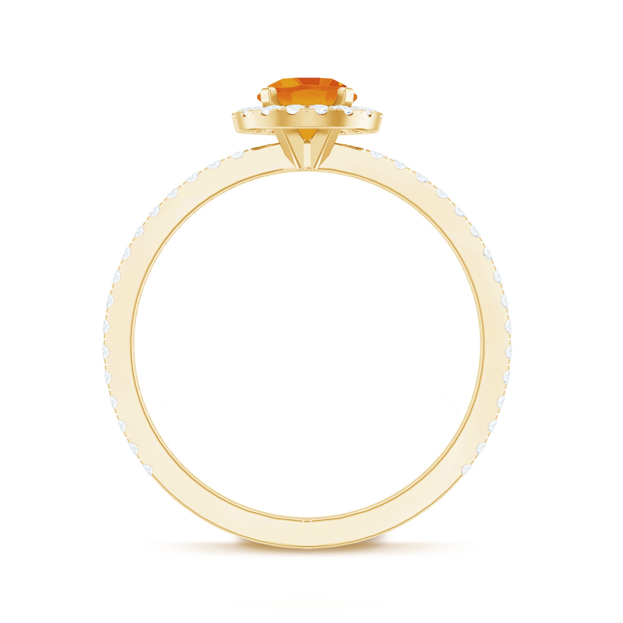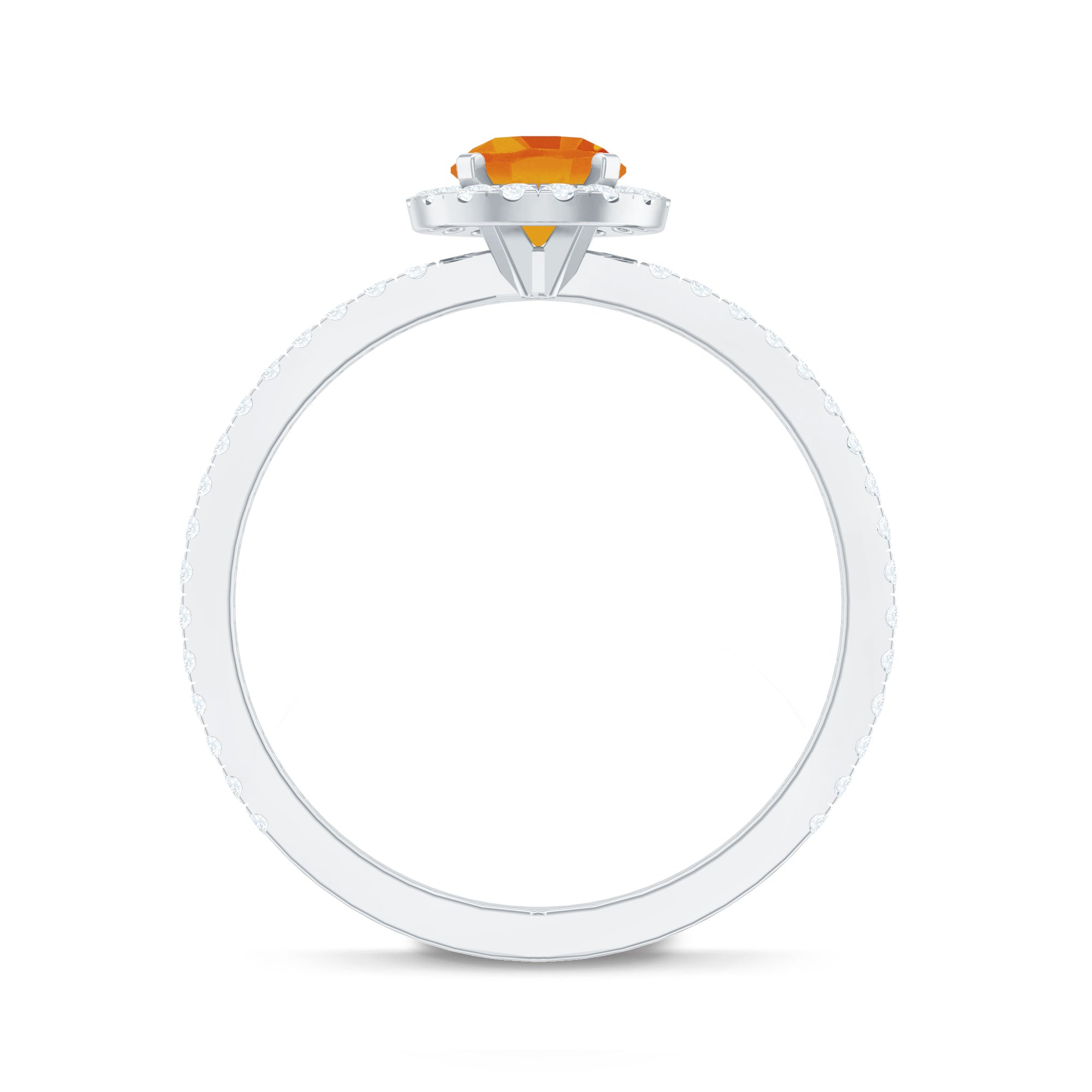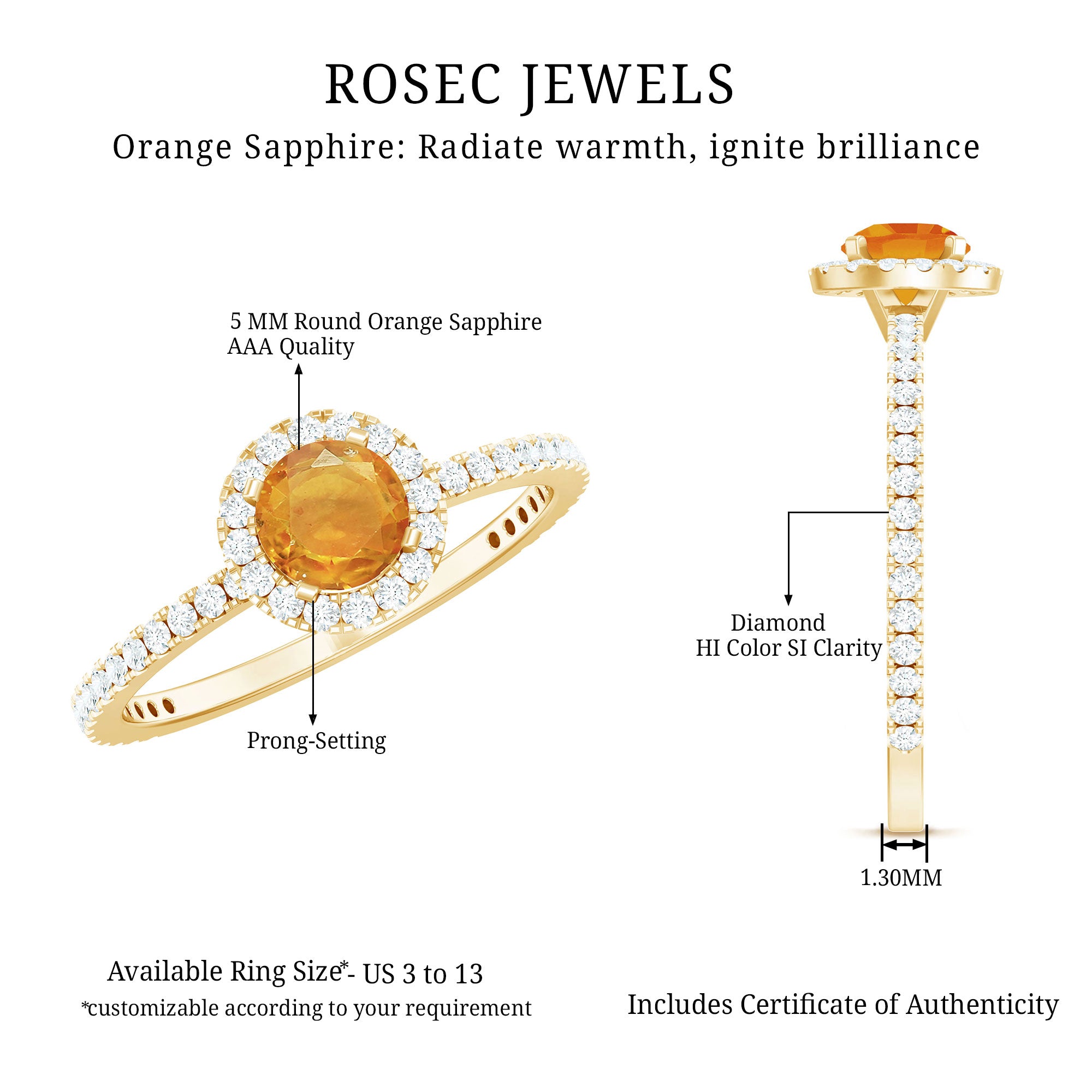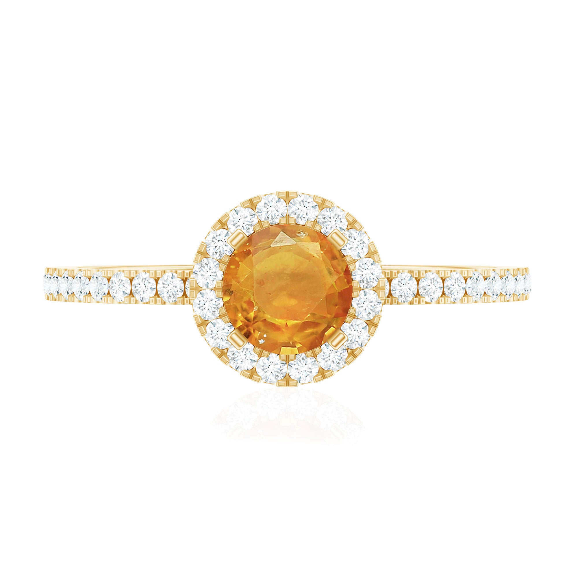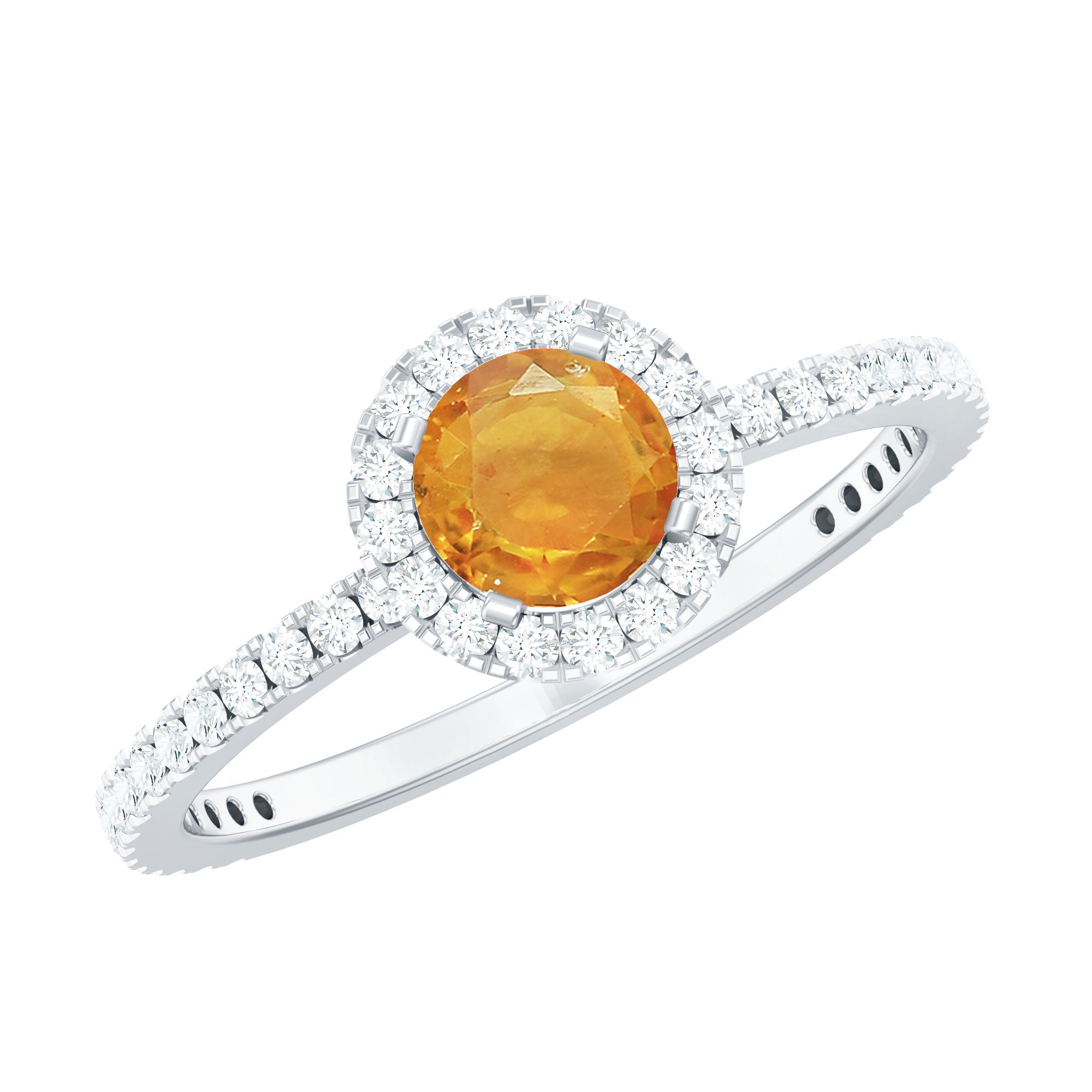 Round Orange Sapphire Halo Engagement Ring with Diamond